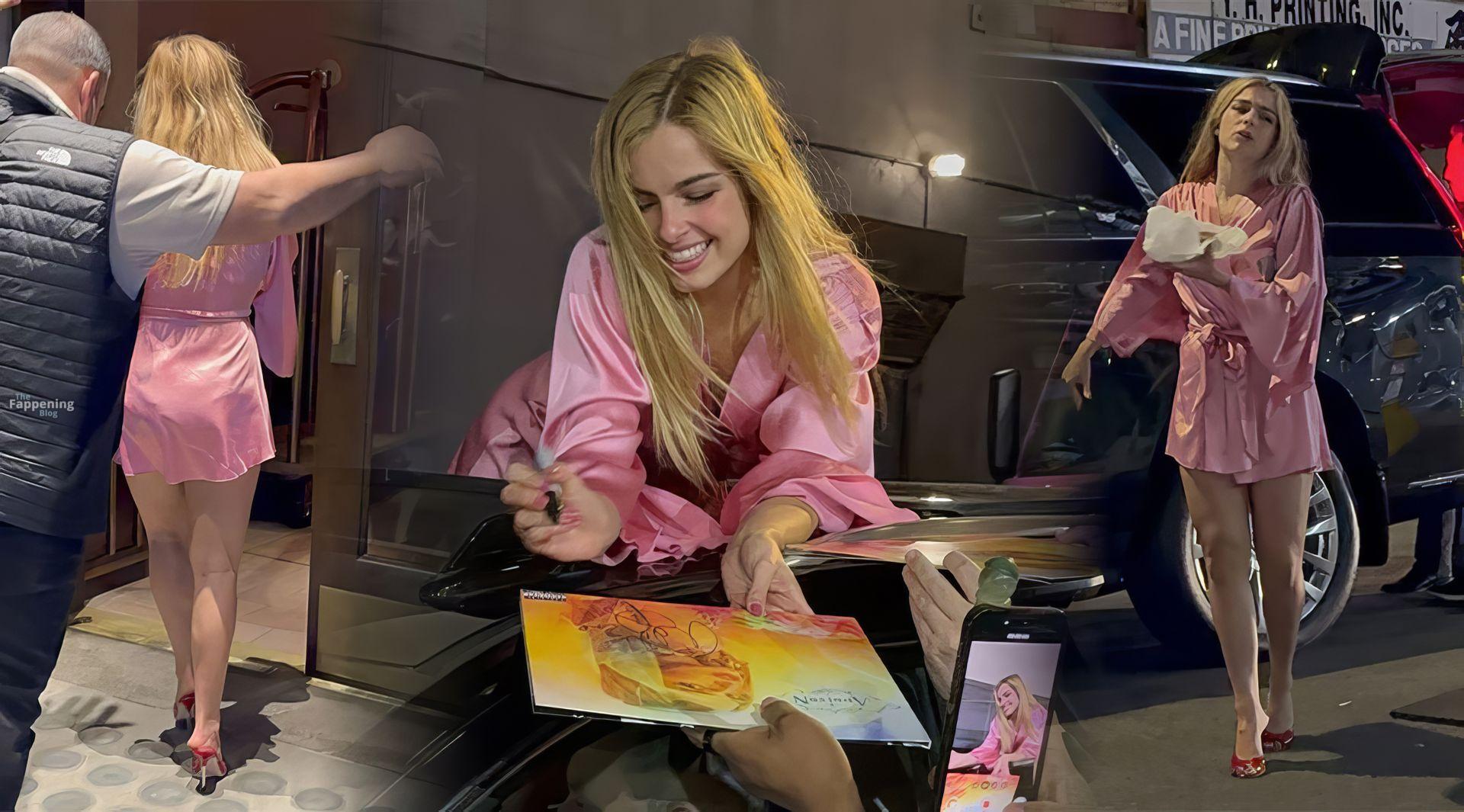 Addison Rae beeindruckte Fans in NYC in einem seidigen pinken Satin-Minikleid. Sie gab Autogramme und zeigte ihre straffen Beine.