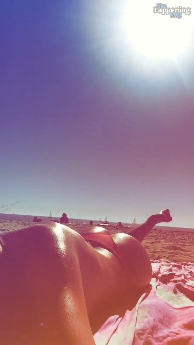Alexandra Stan genießt einen Tag am Strand. Alexandra Stan ist eine rumänische Sängerin, die für Lieder wie Lollipop (Param Pam Pam), Mr. Saxobeat, Get Back (A.S.A.P.), Crazy, Coco Banana und bekannt ist