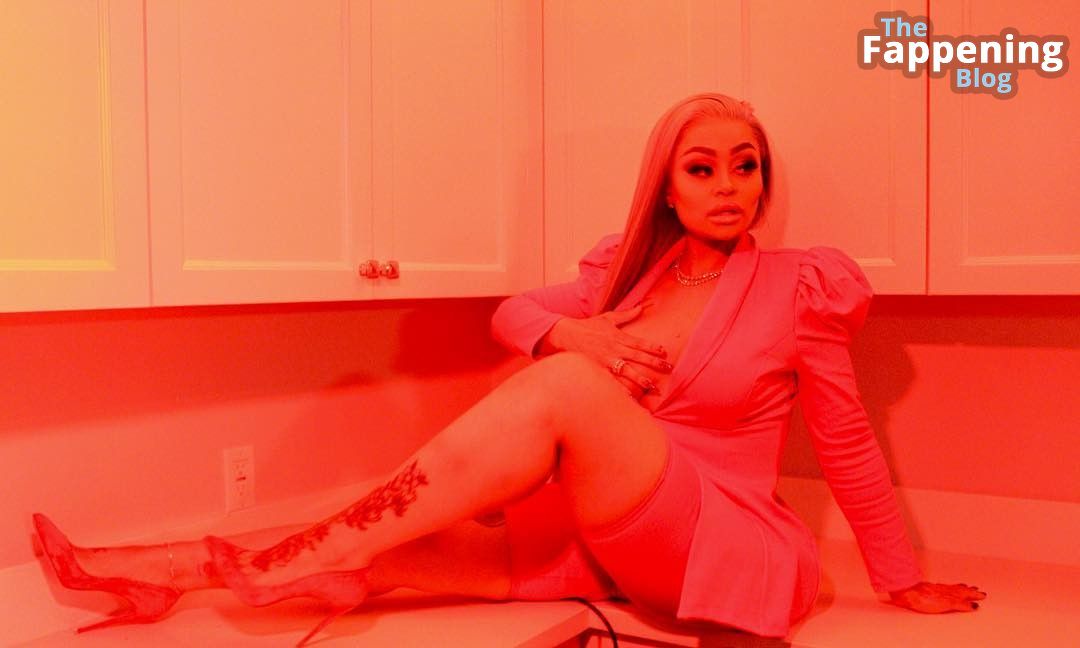 Blac Chyna posiert in einem verführerischen Outfit von Fashionnova. Chyna posiert in einem sexy Outfit und bedeckt ihre nackte Brust mit der Hand.