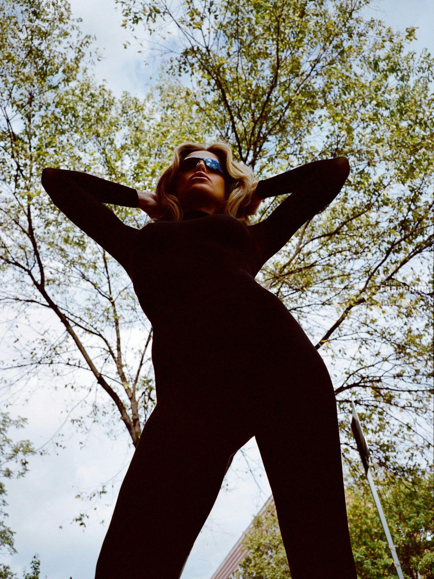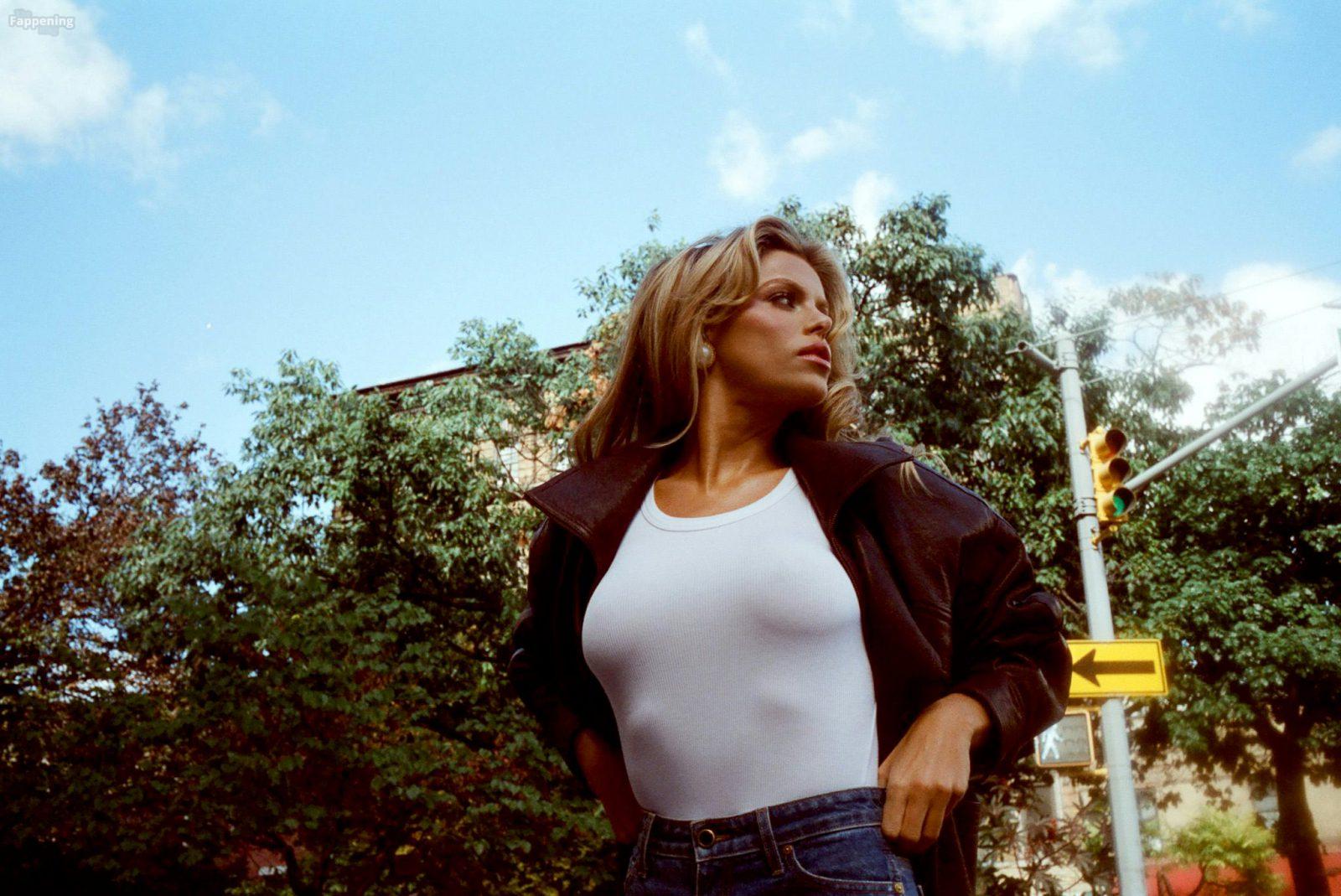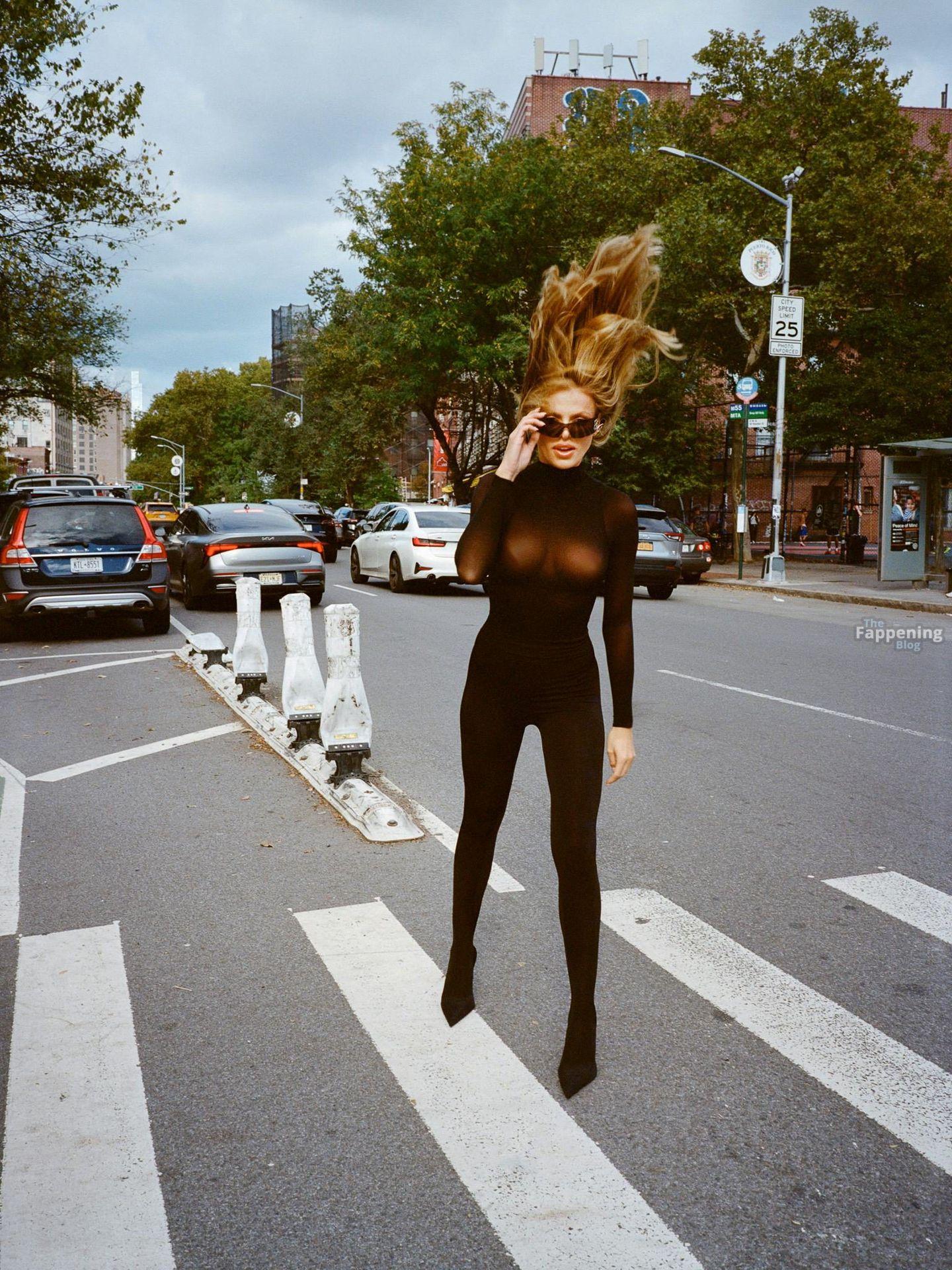 Brooks Nader erschien für das Shooting der Bustle Magazin-Ausgabe November 2025 in NYC und trug einen hautengen schwarzen Mesh-Body.