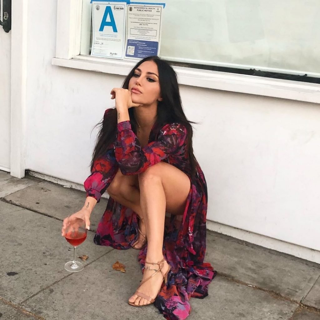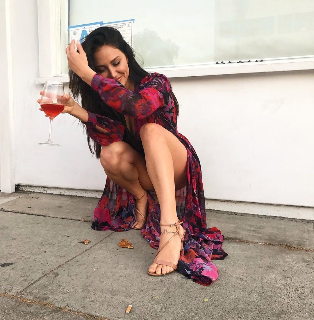 Schauspielerin/Sängerin/Tänzerin Cassandra ‘Cassie’ Scerbo wurde mit Wein fotografiert, wobei sie ihre sexy Beine und Unterwäsche zeigte – Instagram, 30.07.2019.