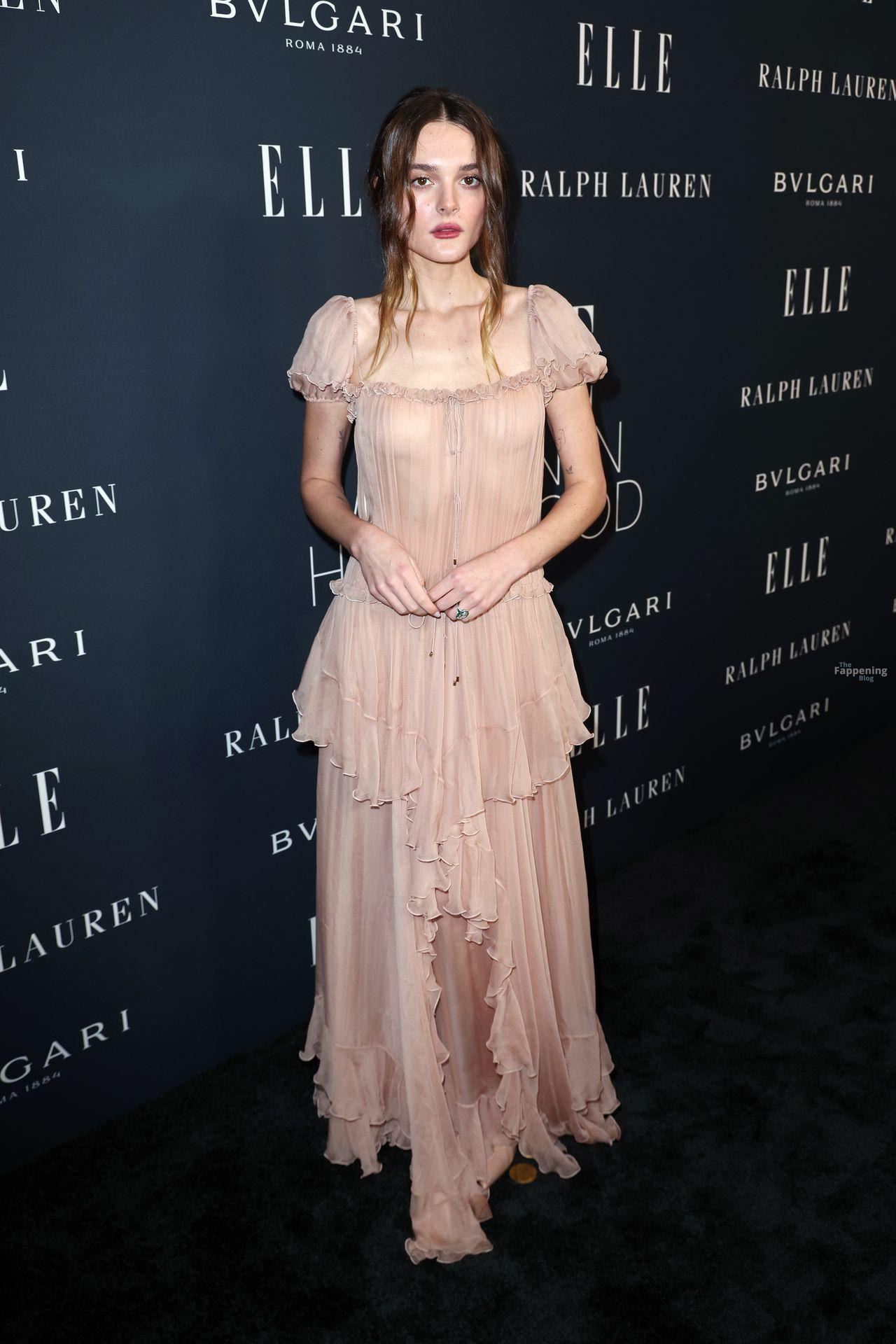 Sängerin Charlotte Lawrence wurde in einem durchsichtigen, hautfarbenen Kleid bei ELLEs Women in Hollywood Feier 2025, präsentiert von Ralph Lauren und Bvlgari in Los Angeles, Kalifornien, abgelichtet.