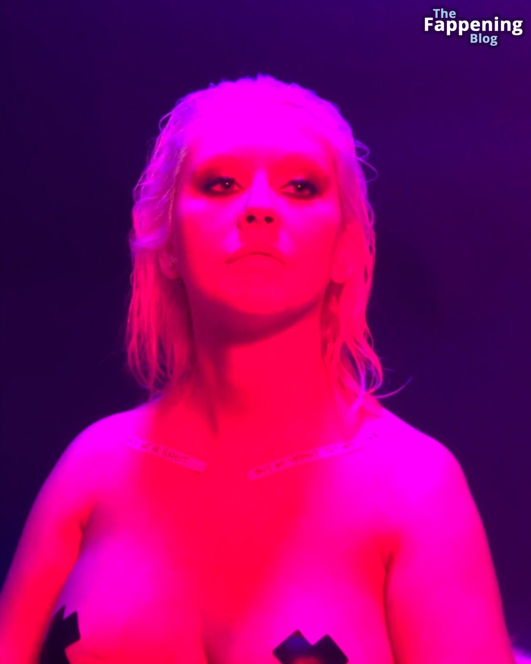 Super beliebte Sängerin Christina Aguilera zeigte ihre Brüste mit Aufklebern auf ihren Brustwarzen.
