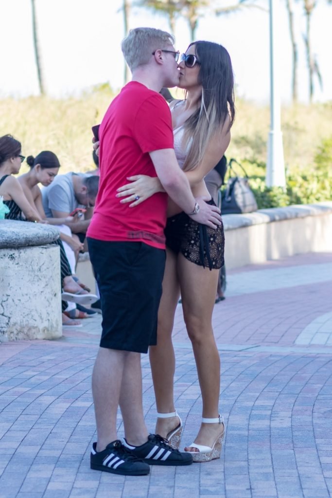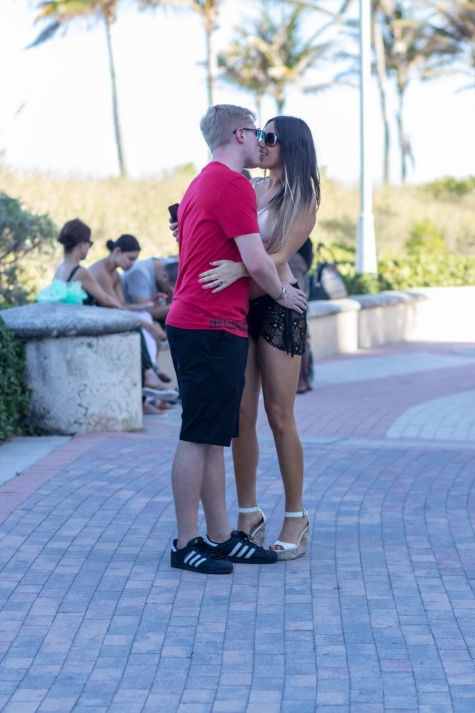 Italienisches Model und Reality-TV-Star Claudia Romani, 46, wurde in South Beach mit ihrem Freund Chris Vehovec gesehen, wie sie ihre Kurven zeigte. Sie waren auf der Promenade und gingen zum Strand, während sie Fotos machten und ihre Zuneigung zeigten, 06.05.2018.