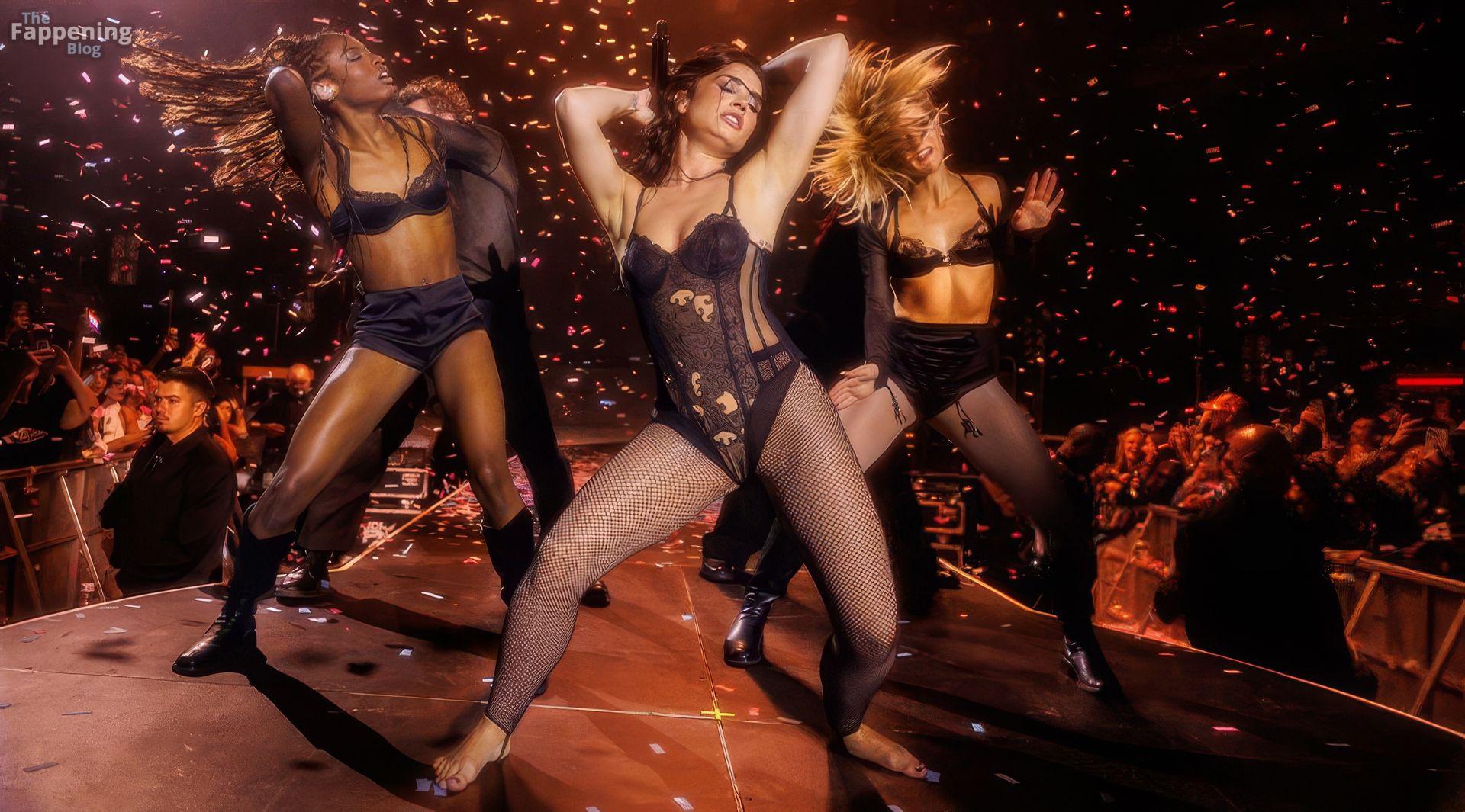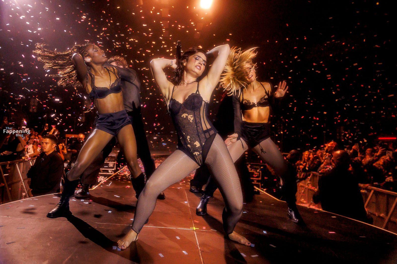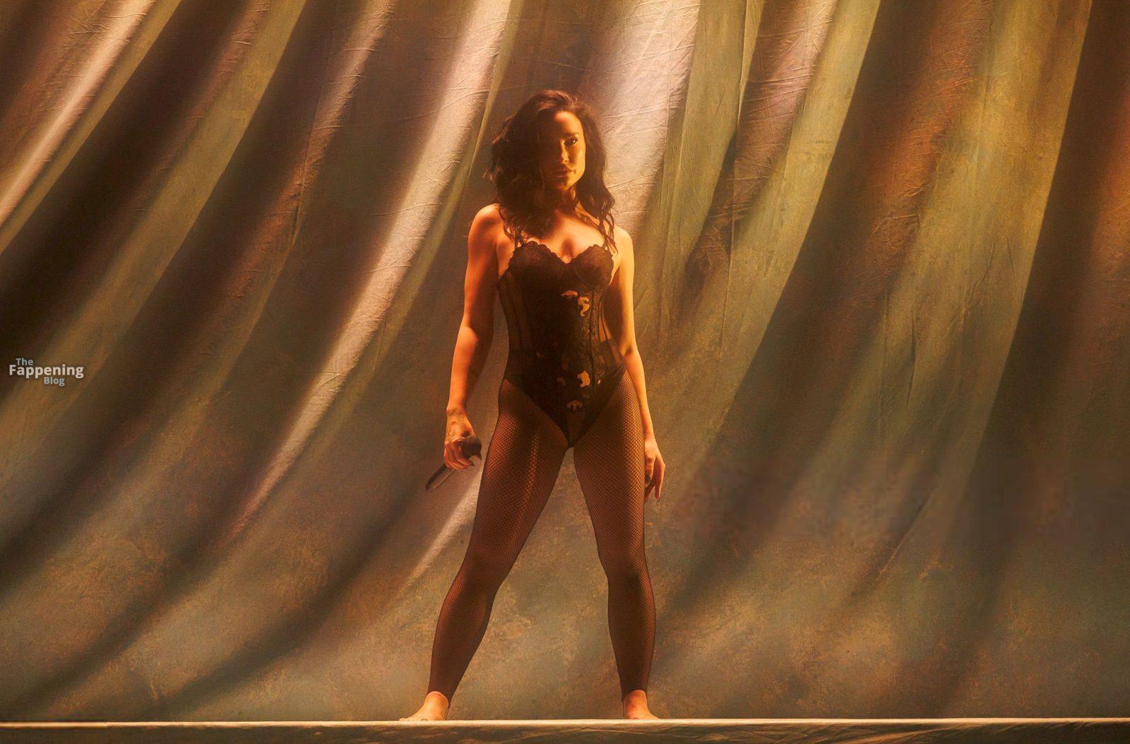 Schau dir Demi Lovatos Auftritt im Hollywood Palladium an. Sie betrat die Bühne in einem durchsichtigen Body und Netzstrümpfen.