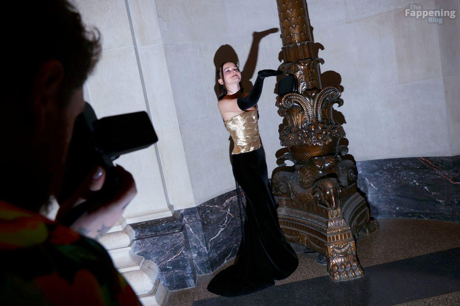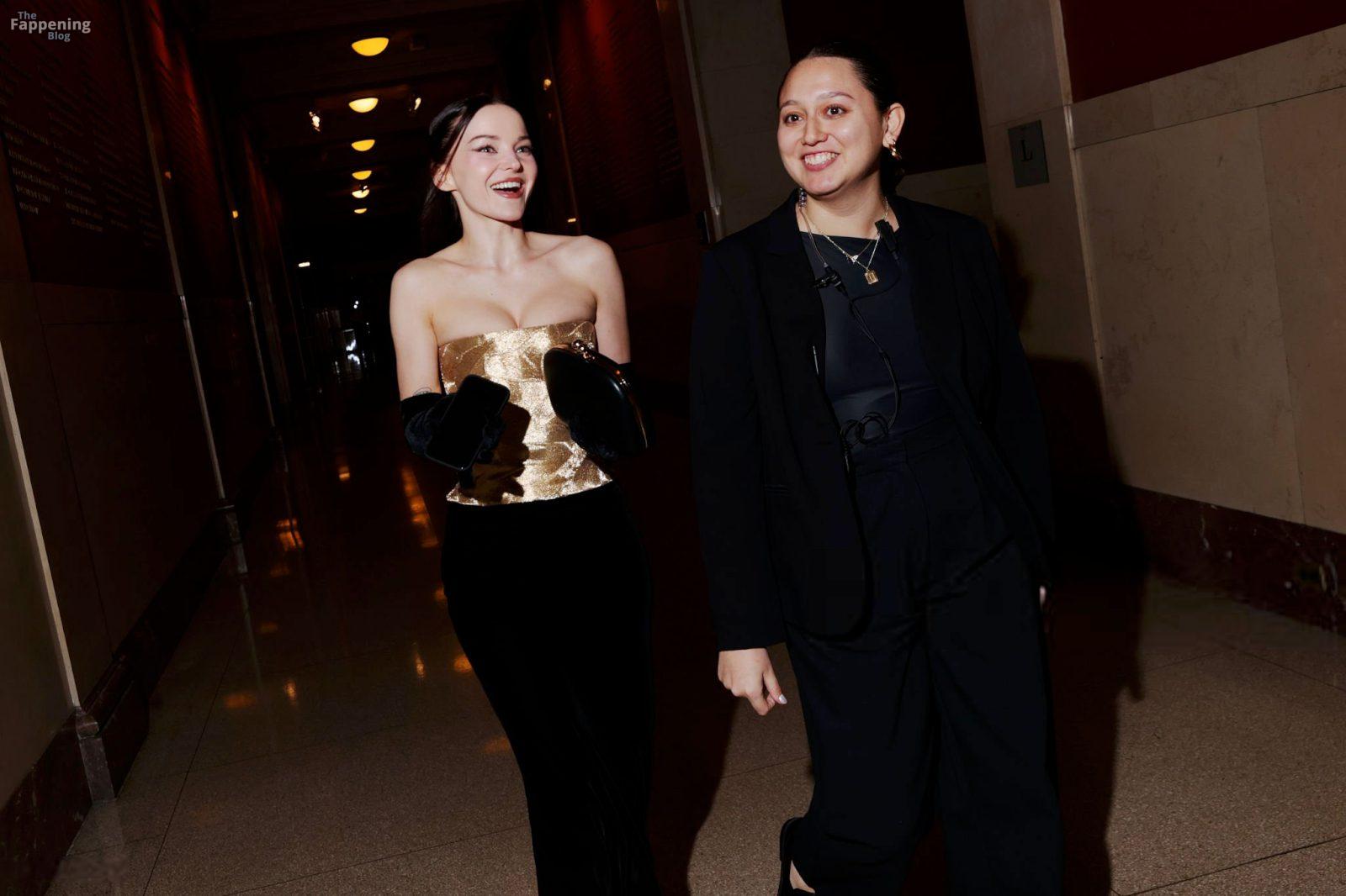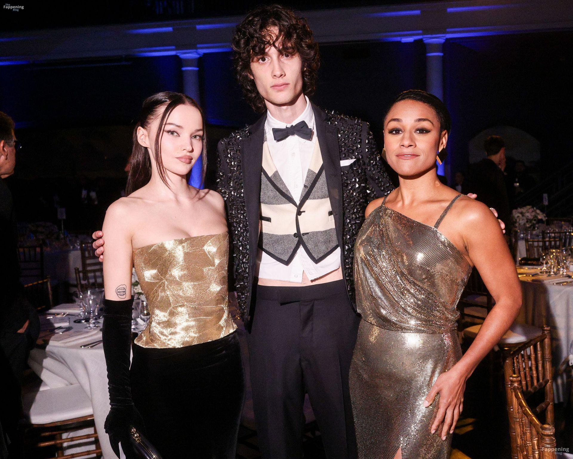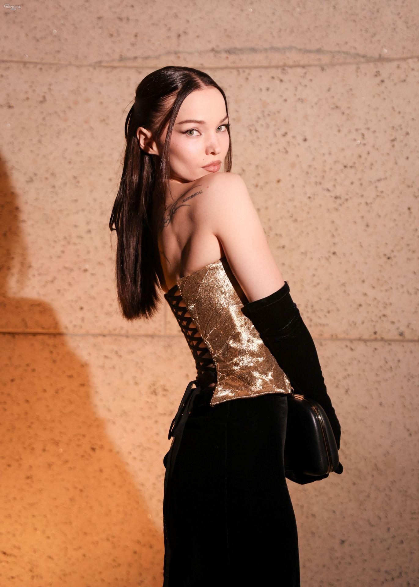 Dove Cameron erschien bei den CFDA Fashion Awards 2025 in New York City und trug ein trägerloses goldenes Marc Jacobs Kleid mit Korsett-Oberteil und schwarzen Handschuhen. Sie posierte auf dem roten Teppich im American Museum of Natural History.