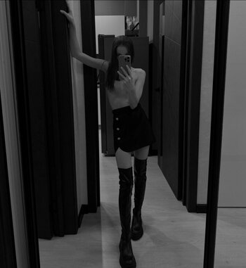 Eiza, die Jeansshorts, ein dunkles Tanktop und eine Strickjacke trägt, vervollständigte ihren langbeinigen Look mit kniehohen Schlangenlederstiefeln.