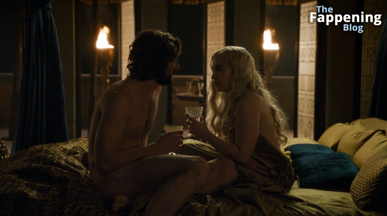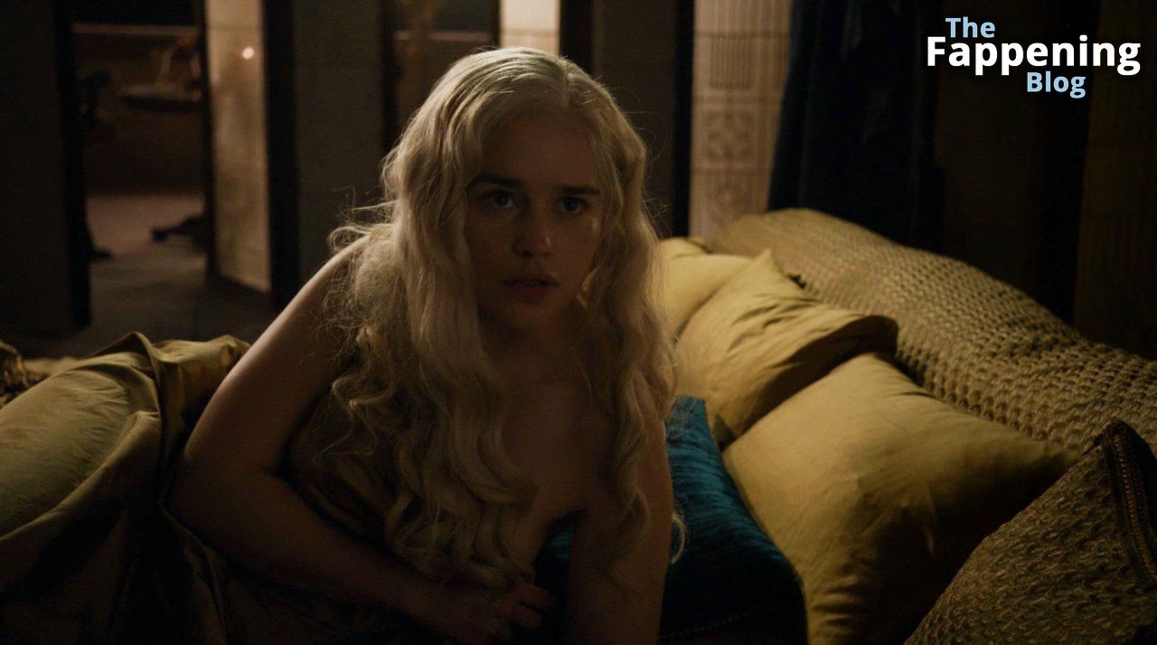 Schauen Sie sich die oben ohne Screenshots von Emilia Clarke aus “Game of Thrones” S5E01 an.