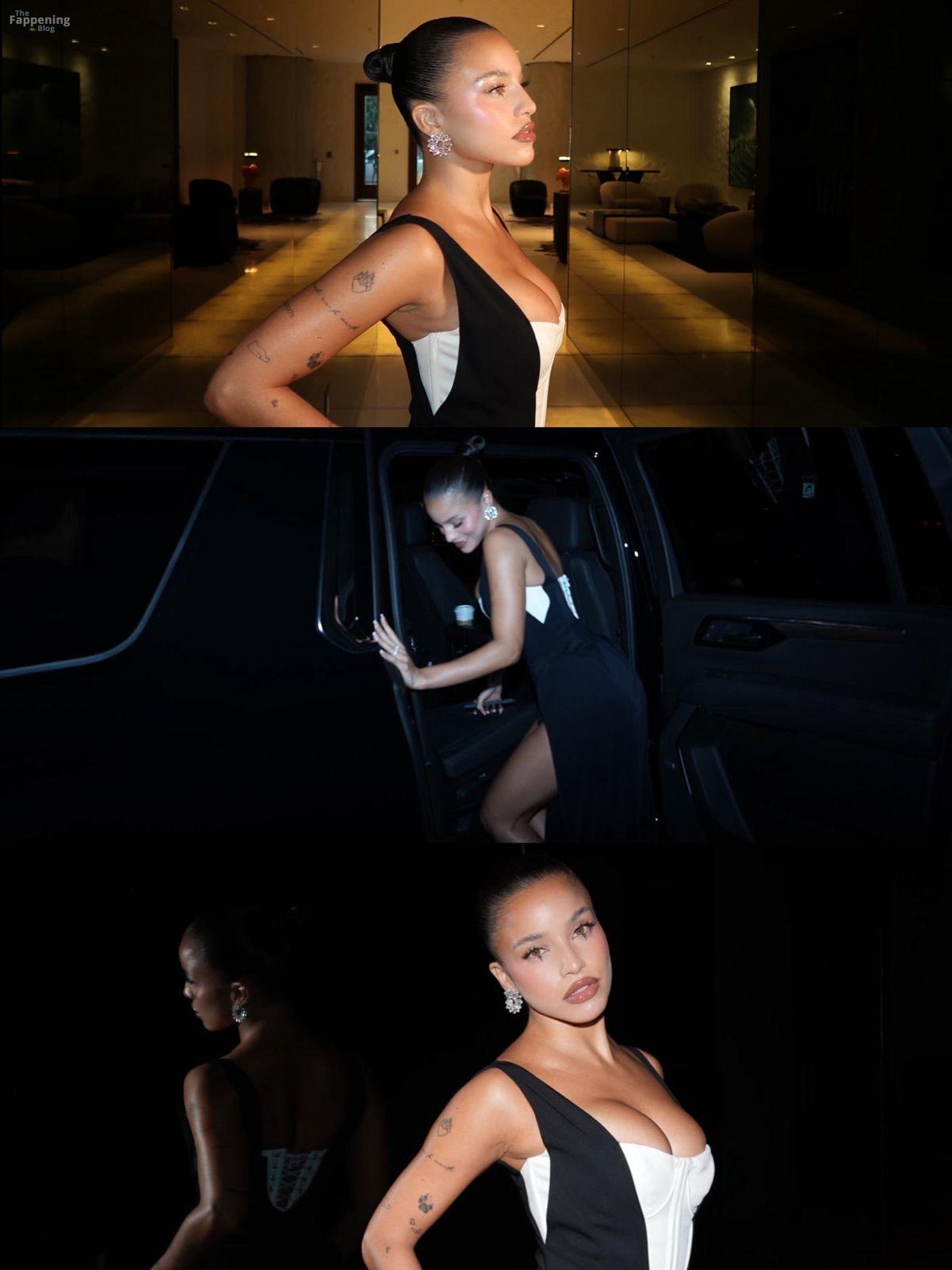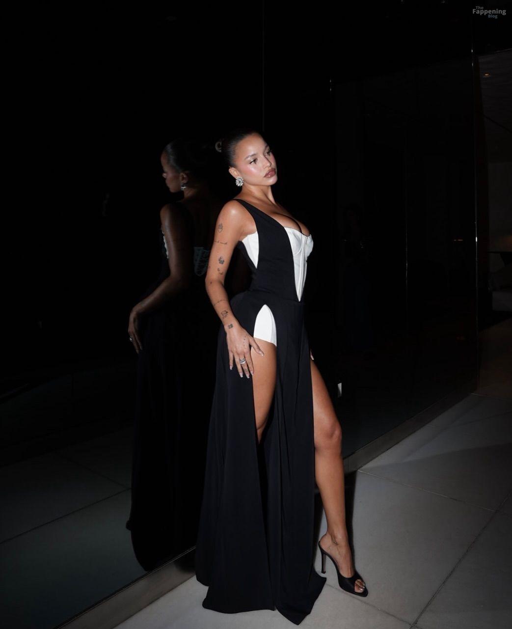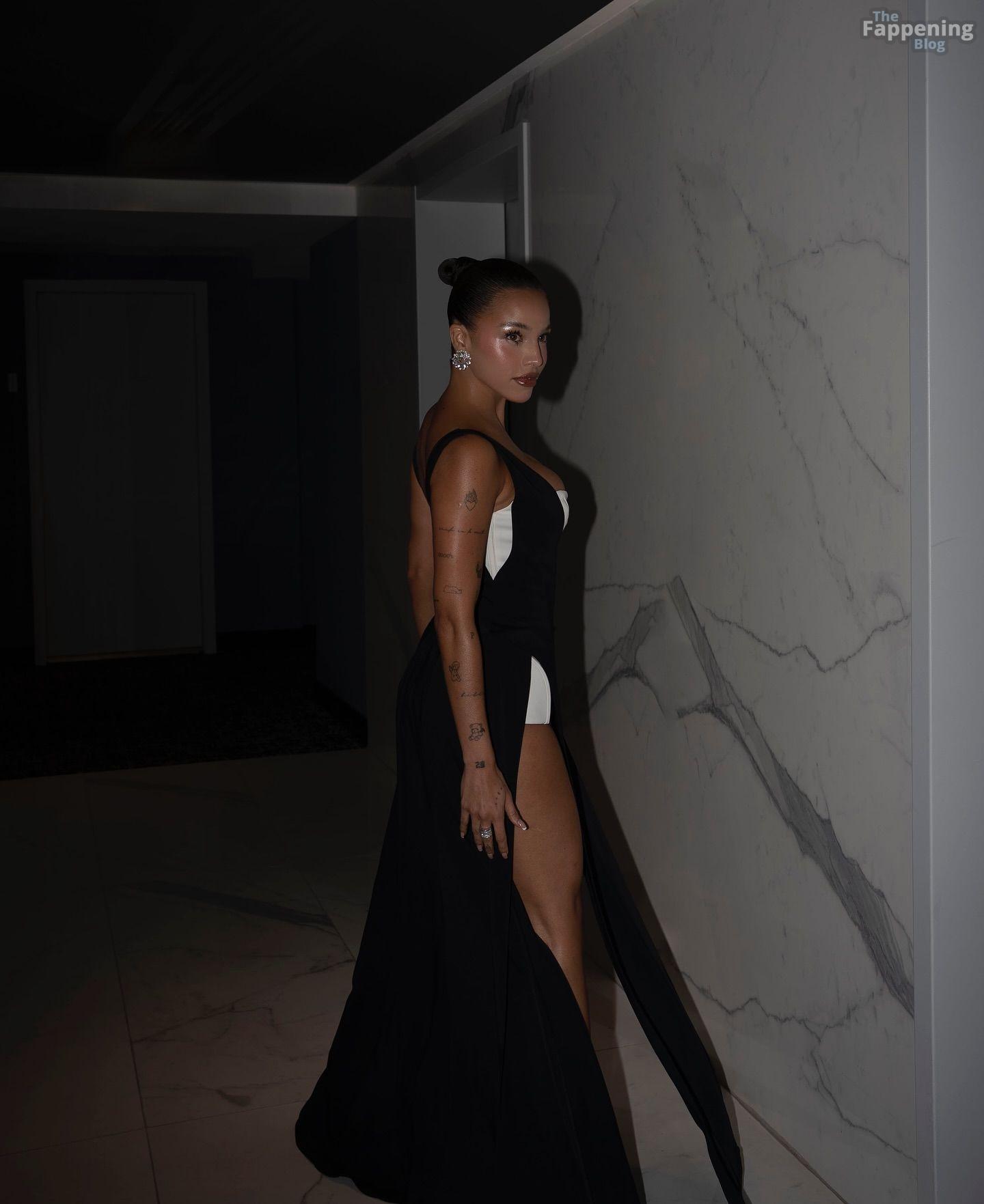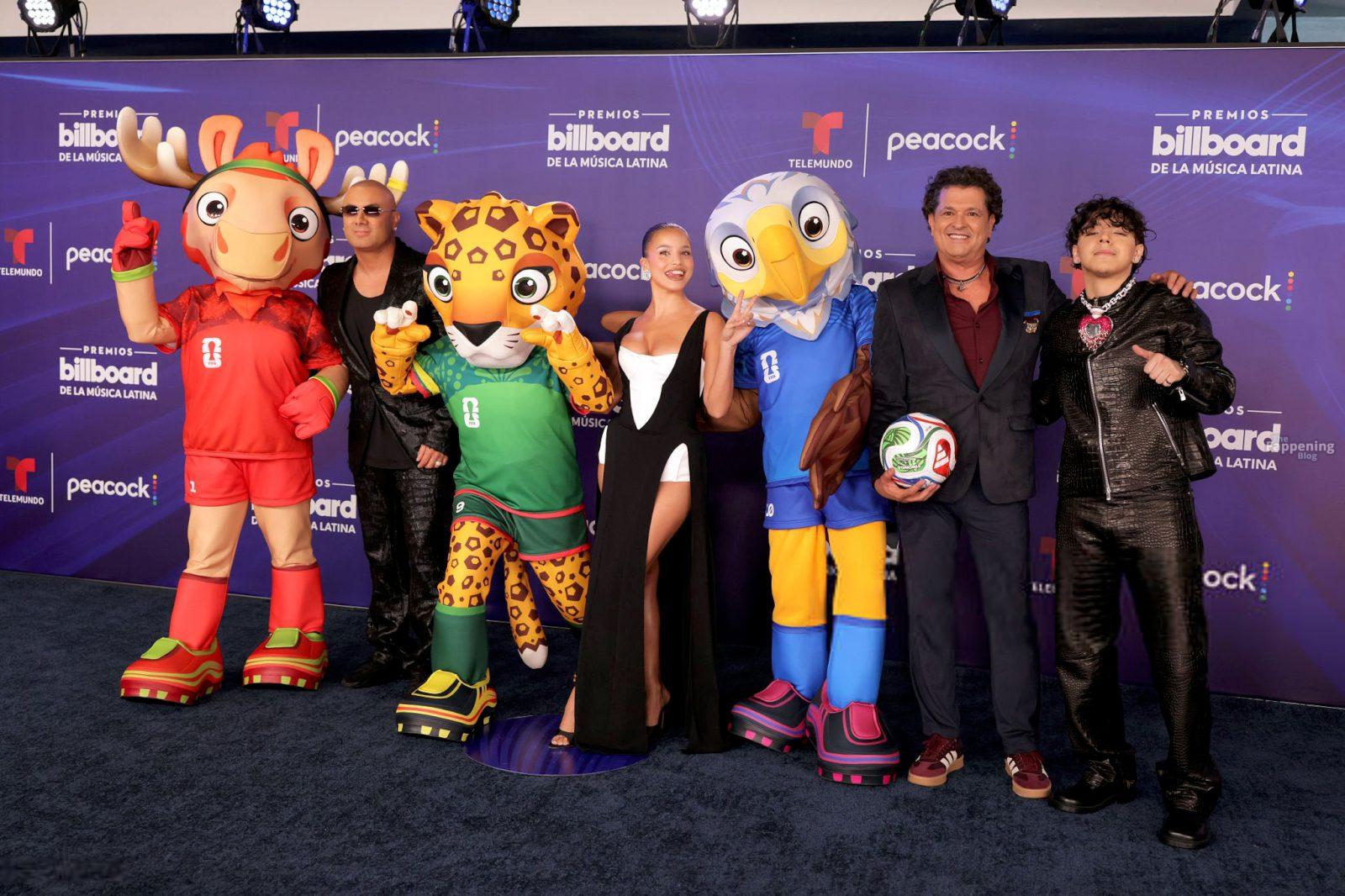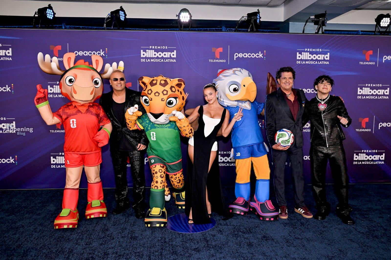 Emilia Mernes nahm an den Billboard Latin Music Awards 2025 in Miami teil und trug ein schwarz-weißes Kleid mit hohem Schlitz, das ihre großen Brüste und ihre straffen Beine zur Geltung brachte. Sie betrat den roten Teppich im James L. Knight Center.