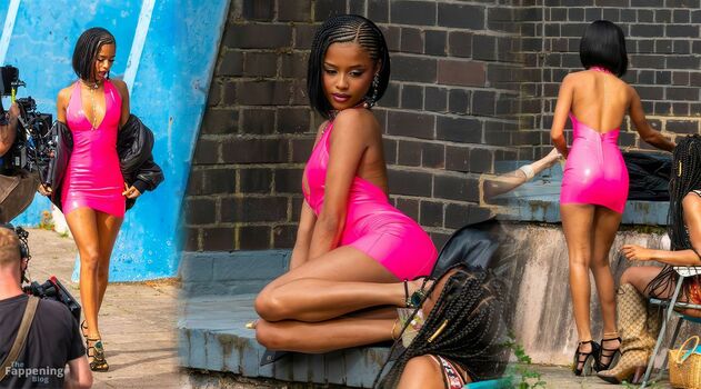 Was für eine Schlampe. Sie zeigt ihren Bauch. Es gab keinen Grund, ihr Shirt über die Brüste zu heben.