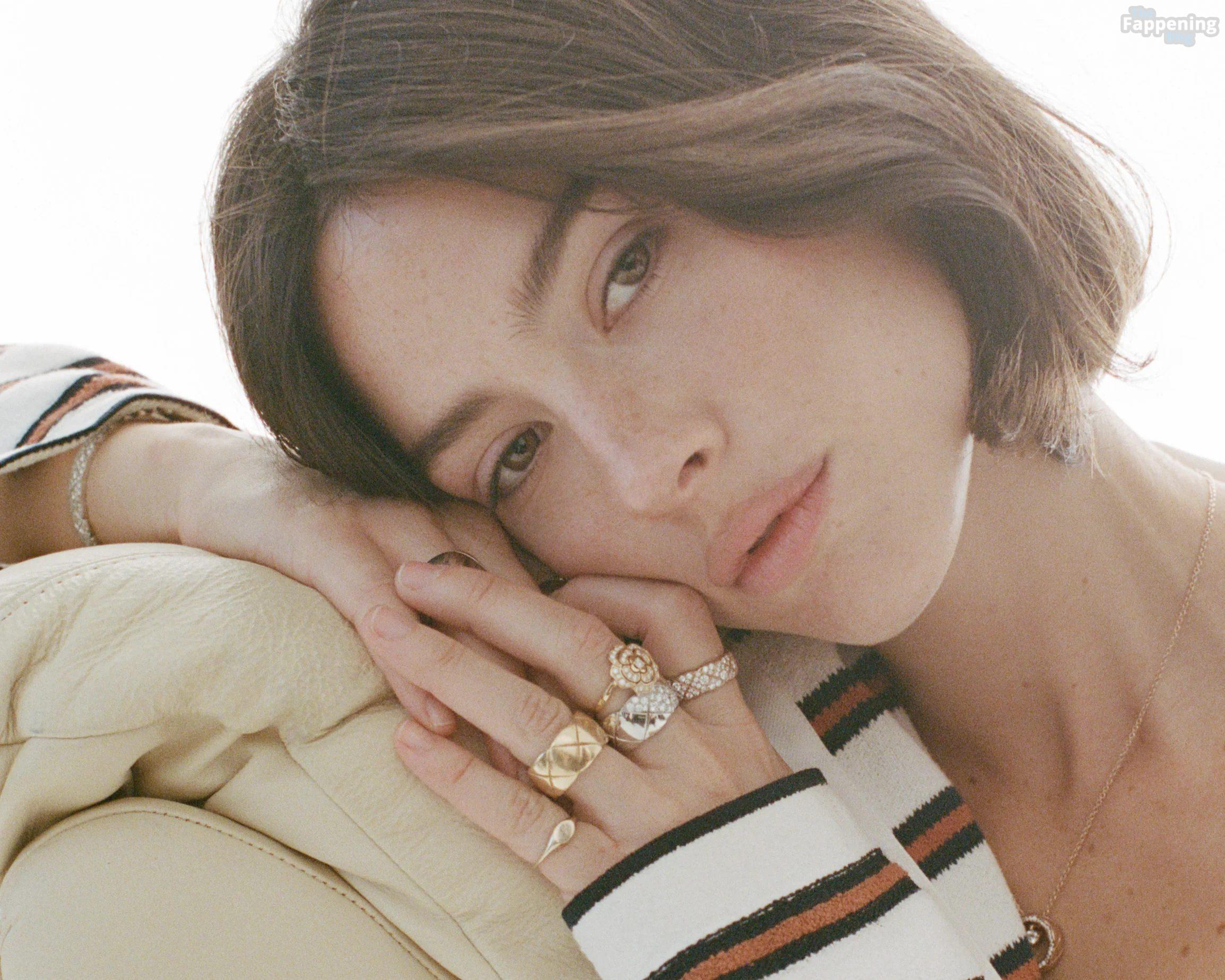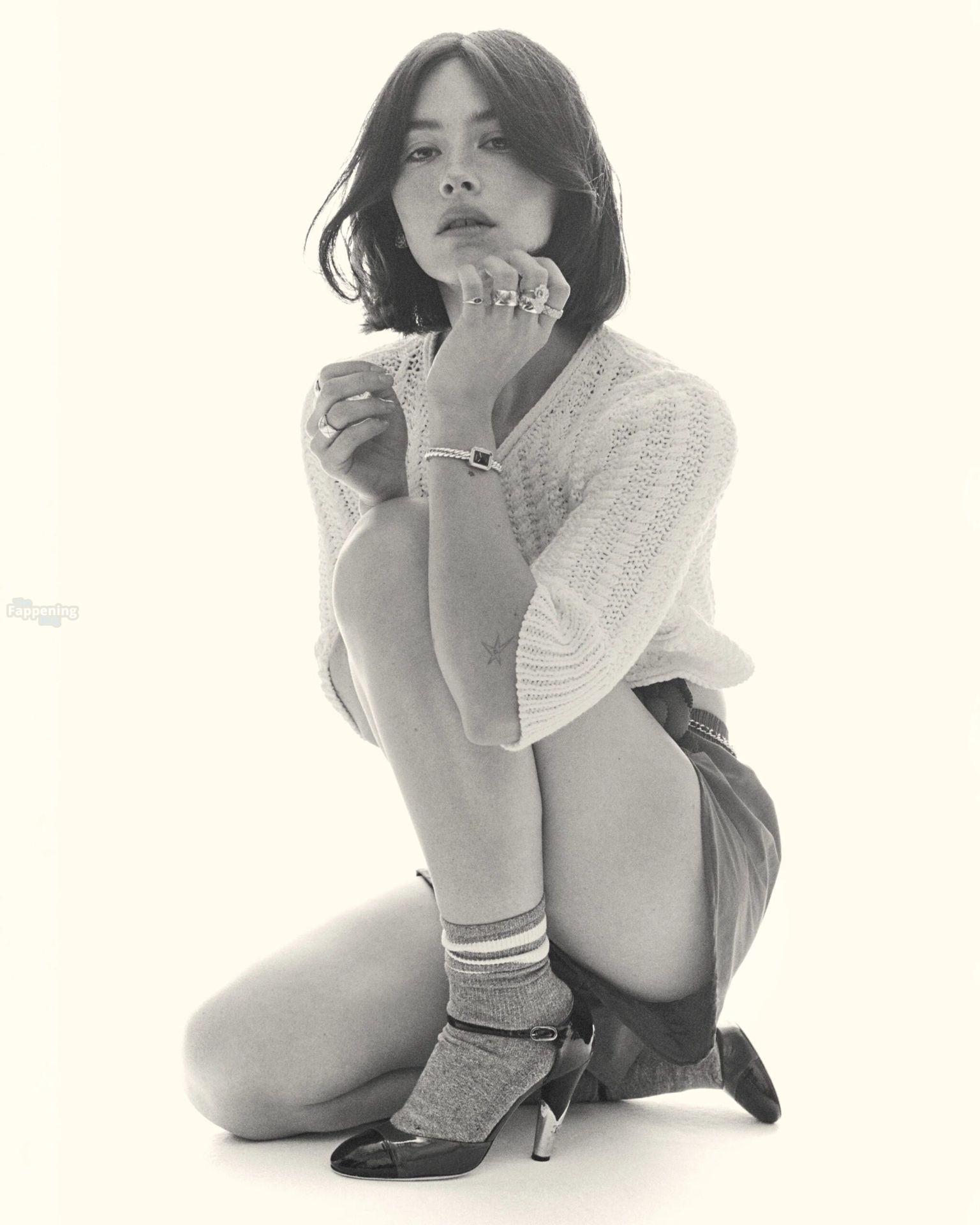 American singer and songwriter Gracie Abrams posiert in einem neuen Shooting für HommeGirls und zeigt ihre schlanke Figur und Beine.