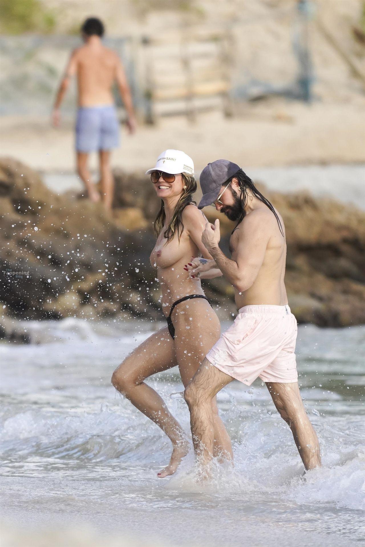 Heidi geht in den Boss-Modus, indem sie ihr Oberteil ablegt, um Bräunungsstreifen zu vermeiden, und zeigt ihre perfekten Brüste und ihren sexy Strandkörper nur in schicken braunen Bikinihöschen. Tom kann seine Hände nicht von ihr lassen – PDA-Overload mit Küssen, Lachen und all den liebevollen Berührungen unter der Sonne. Ihre Chemie ist unglaublich, pure Paarziele im Paradies.