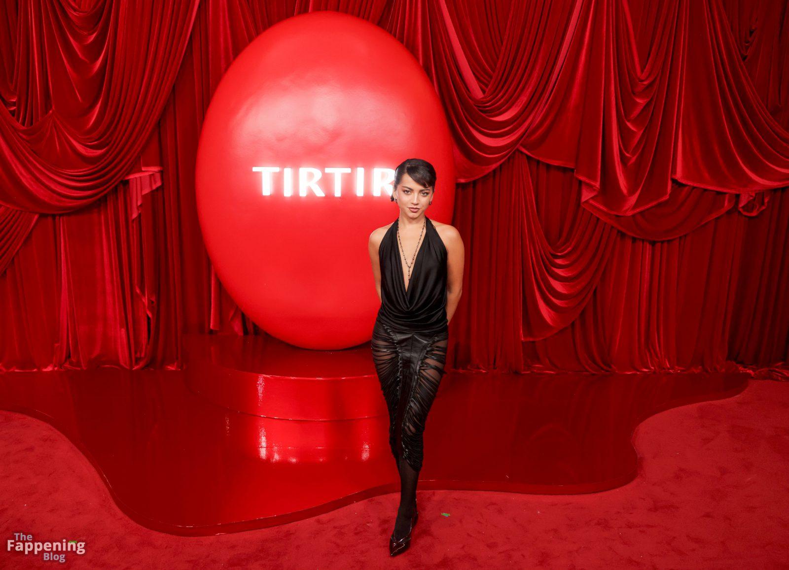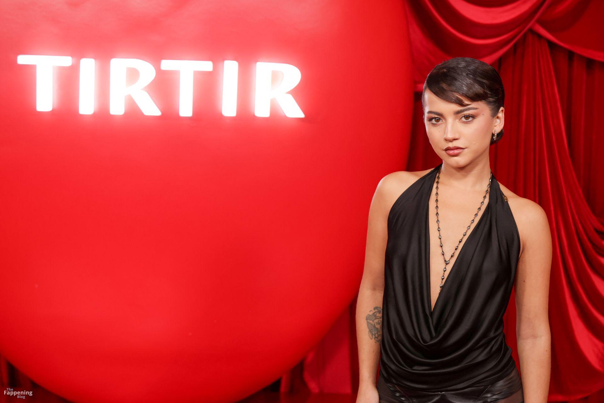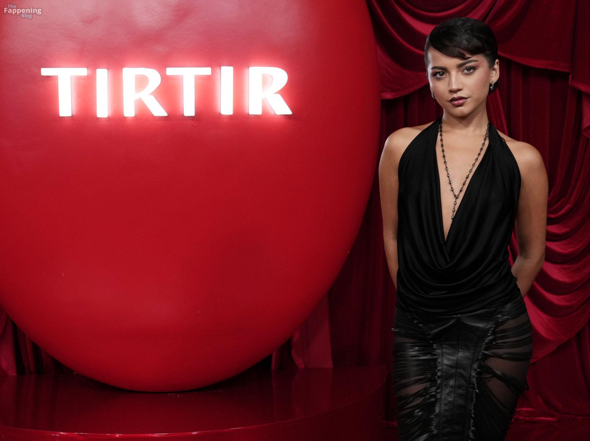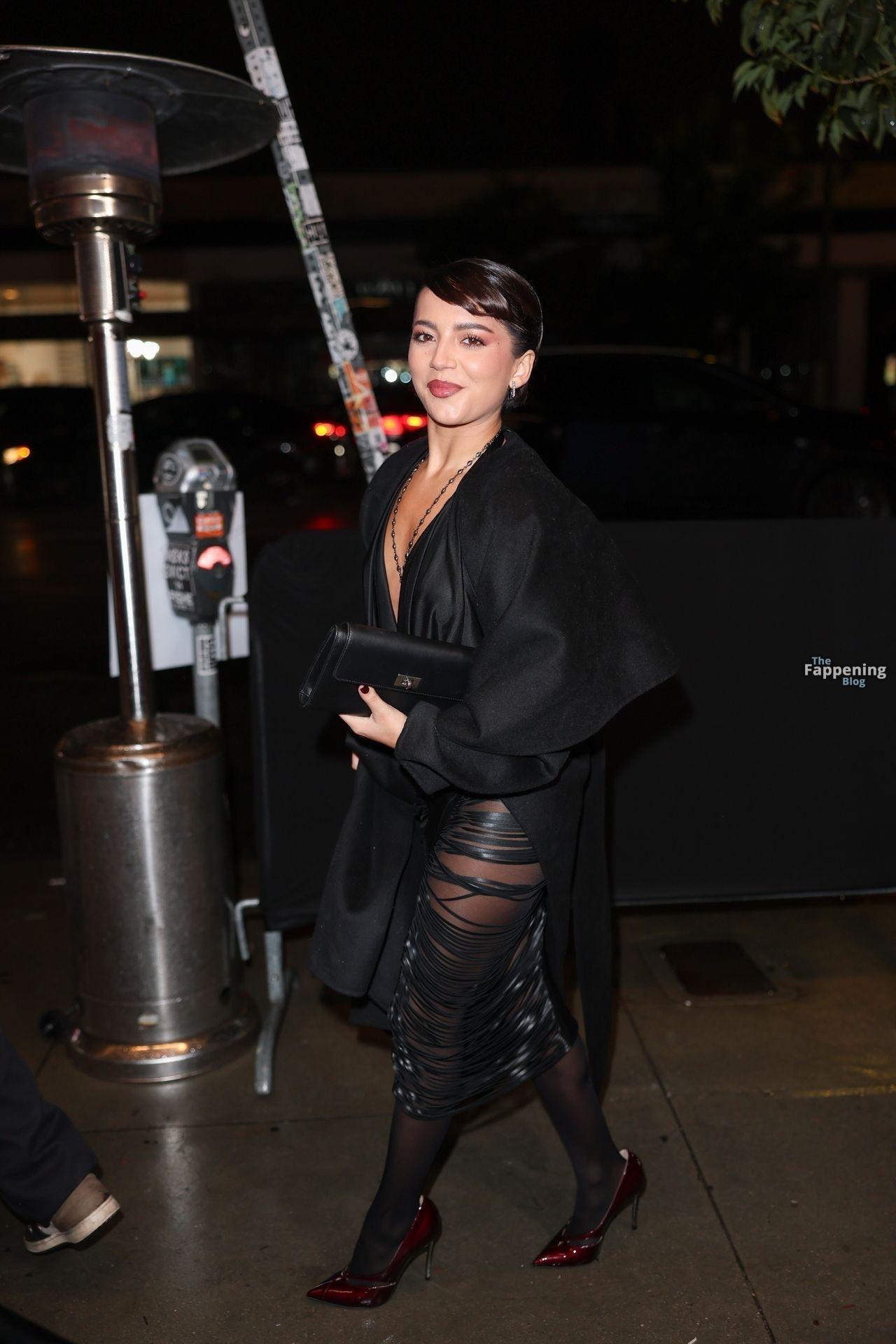 Schauspielerin und Sängerin Isabela Merced wird in einem durchsichtigen Kleid bei TirTirs Radiate in Red Pop-Up Event in der 8175 Melrose Ave in Los Angeles abgebildet, wobei sie ihren Hintern in diesem durchsichtigen Rock zeigt.