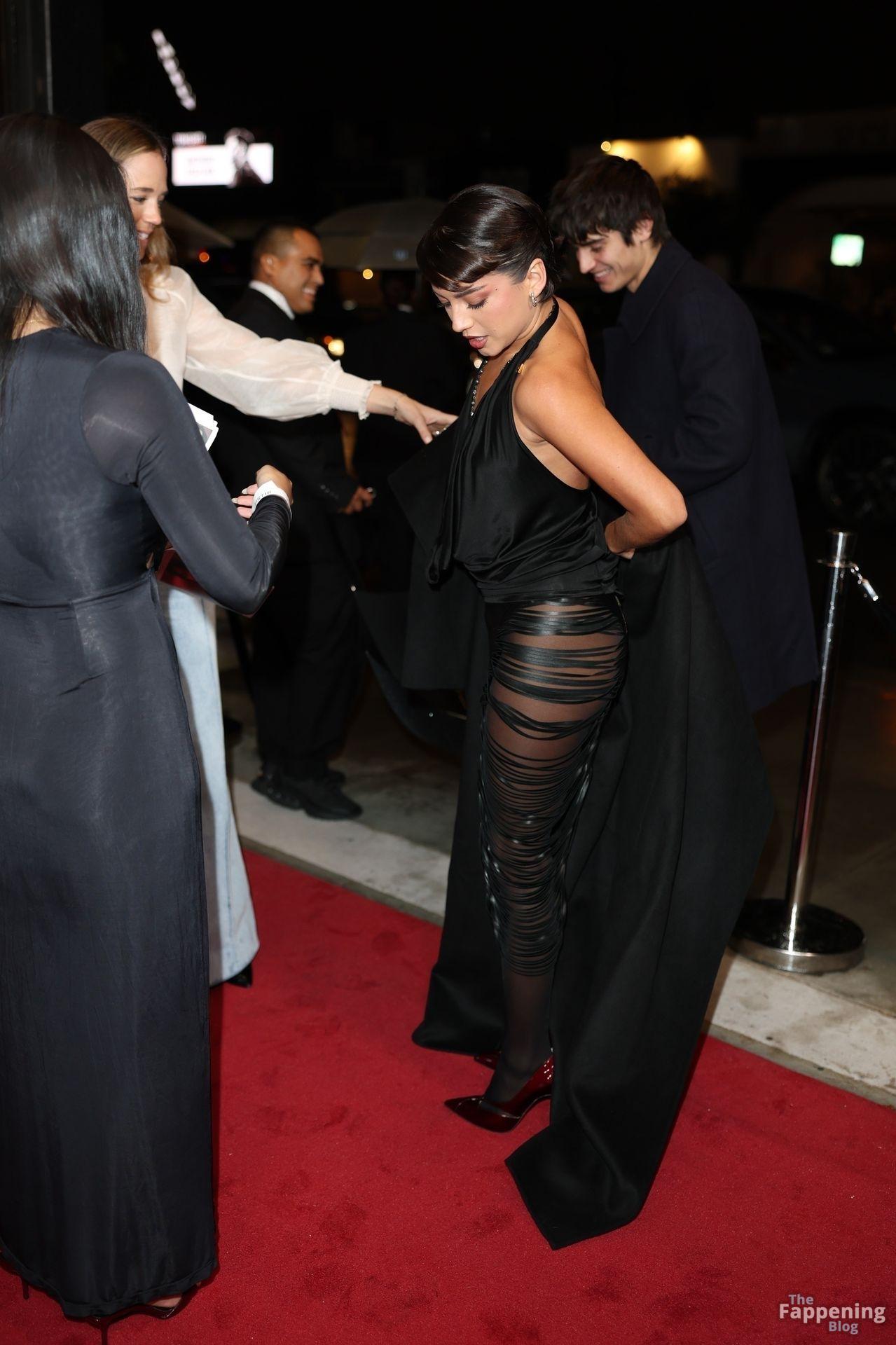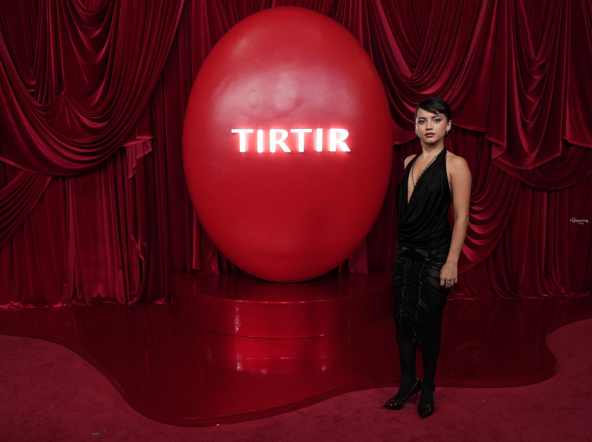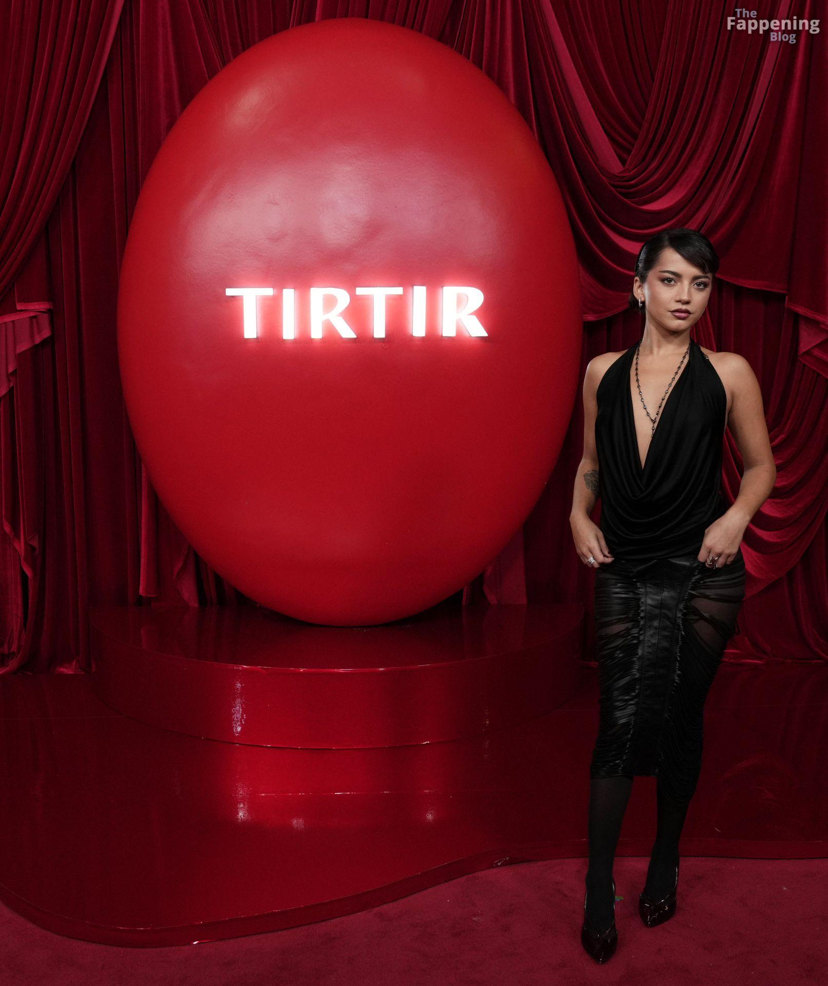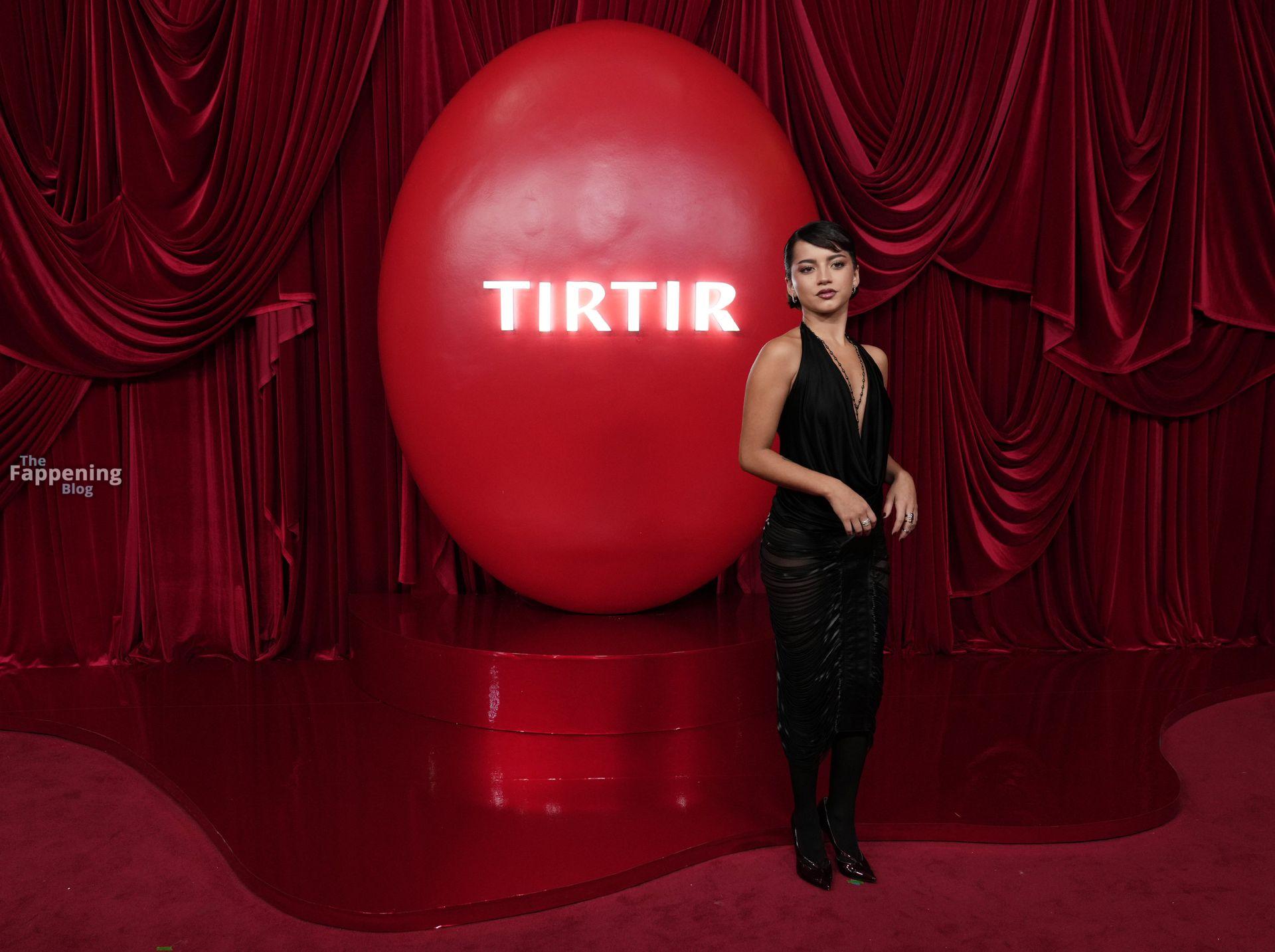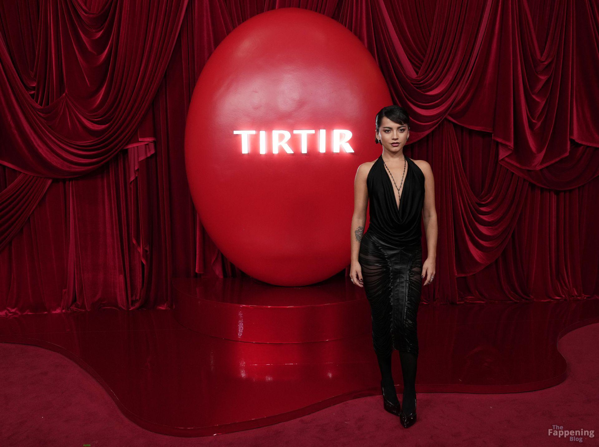 Schauspielerin und Sängerin Isabela Merced wird in einem durchsichtigen Kleid bei TirTirs Radiate in Red Pop-Up Event in der 8175 Melrose Ave in Los Angeles abgebildet, wobei sie ihren Hintern in diesem durchsichtigen Rock zeigt.