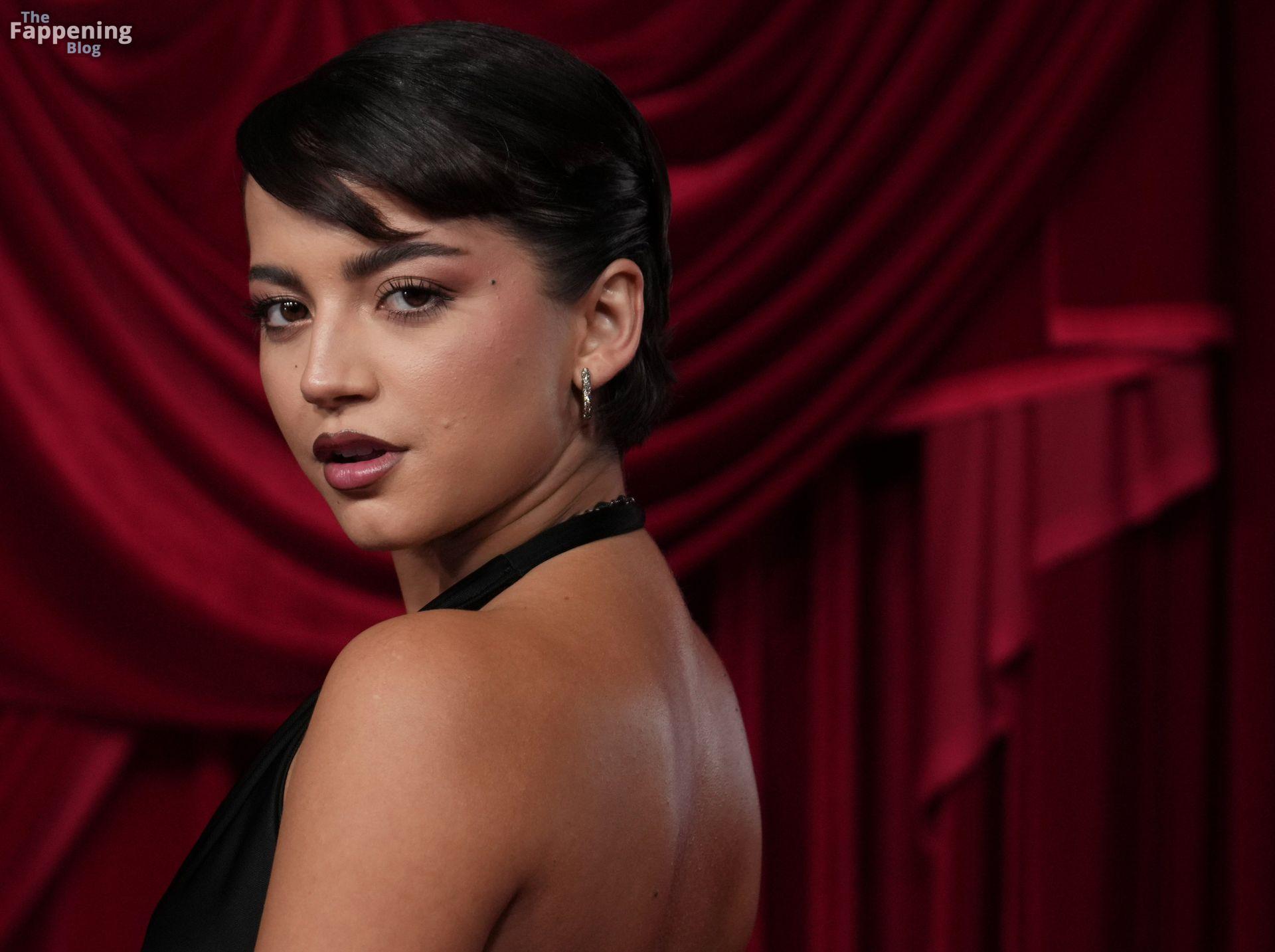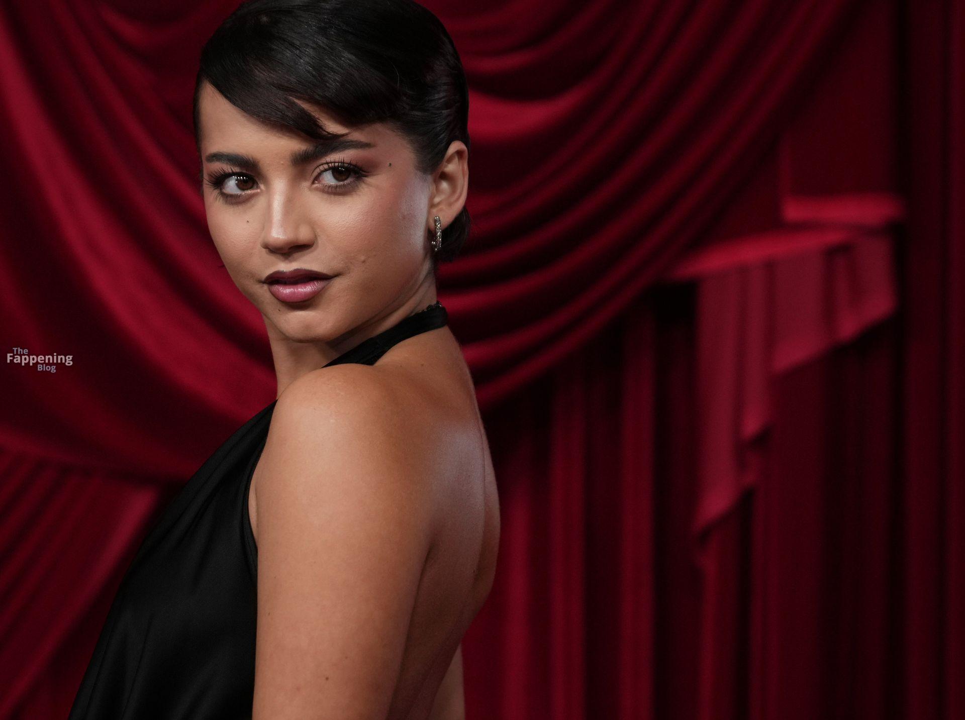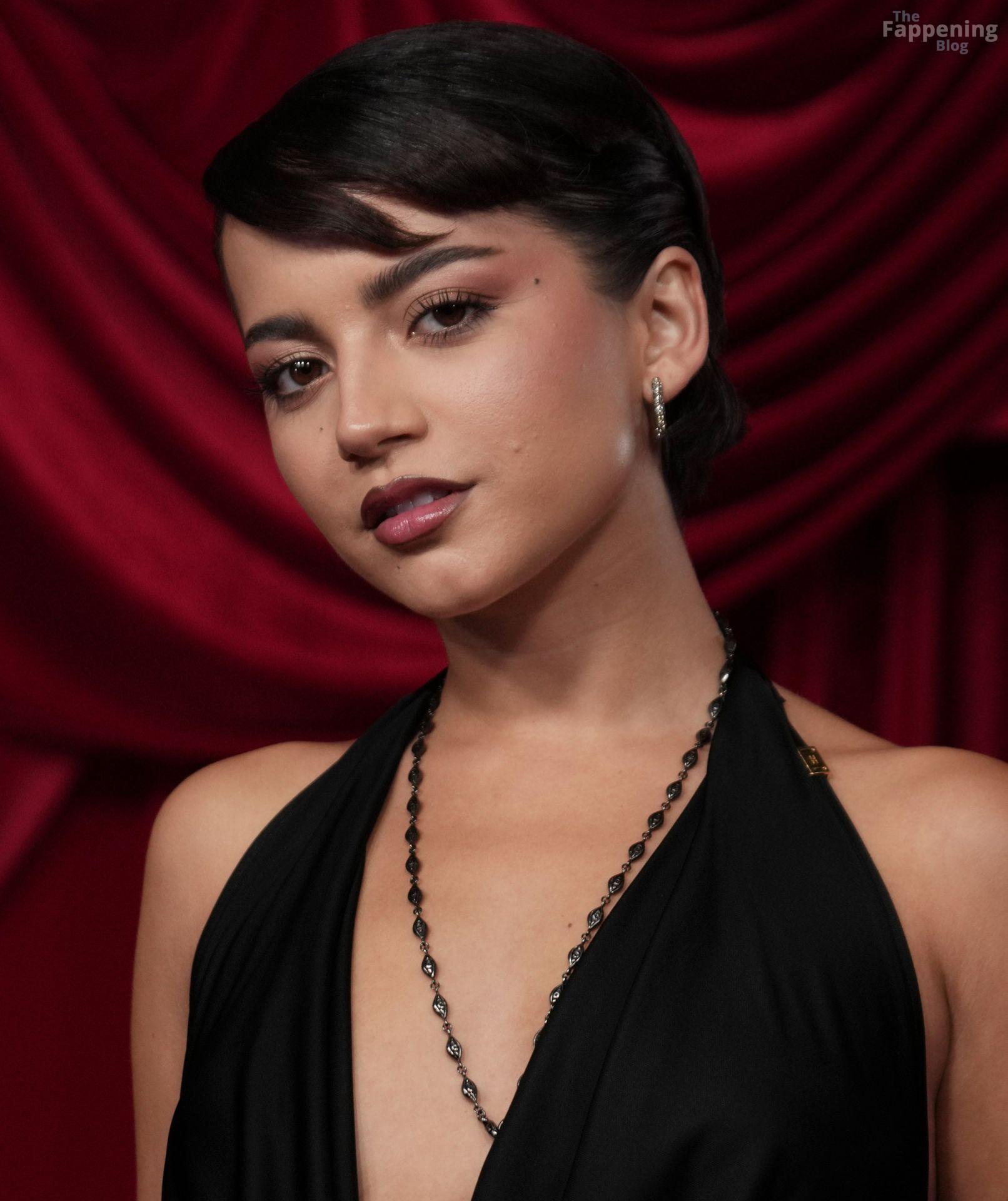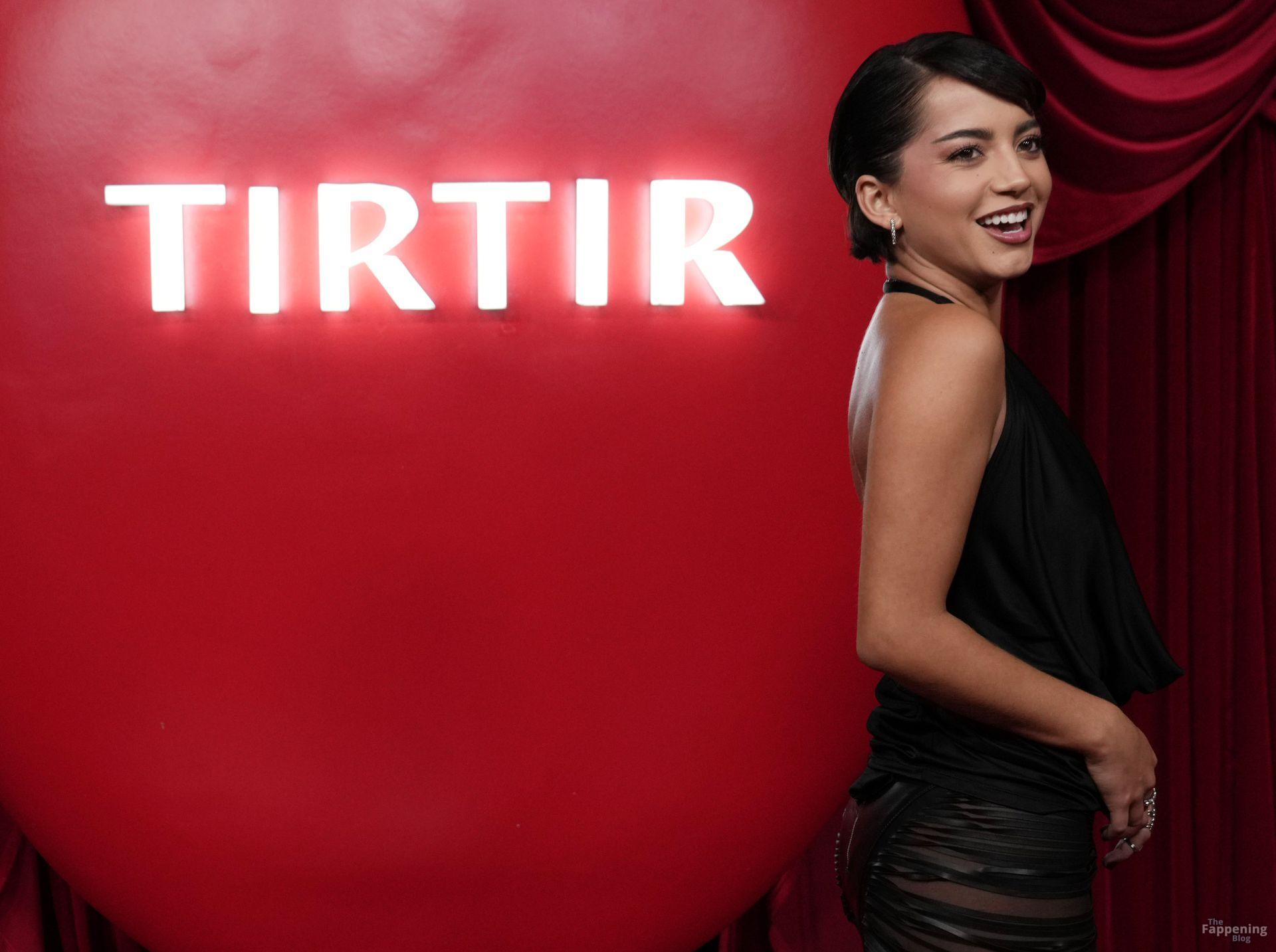 Schauspielerin und Sängerin Isabela Merced wird in einem durchsichtigen Kleid bei TirTirs Radiate in Red Pop-Up Event in der 8175 Melrose Ave in Los Angeles abgebildet, wobei sie ihren Hintern in diesem durchsichtigen Rock zeigt.