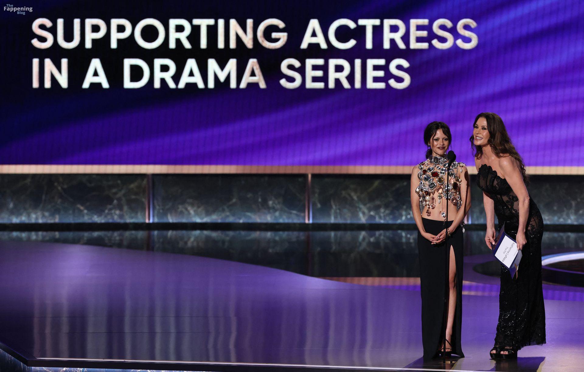 OMG, die US-Schauspielerin Jenna Ortega sieht absolut umwerfend aus in einem wirklich funkelnden Oberteil aus Juwelen und Perlen, kombiniert mit einem schwarzen Rock mit Schlitz. Sie hat die 77. Primetime Emmy Awards im Peacock Theatre in LA total gerockt.