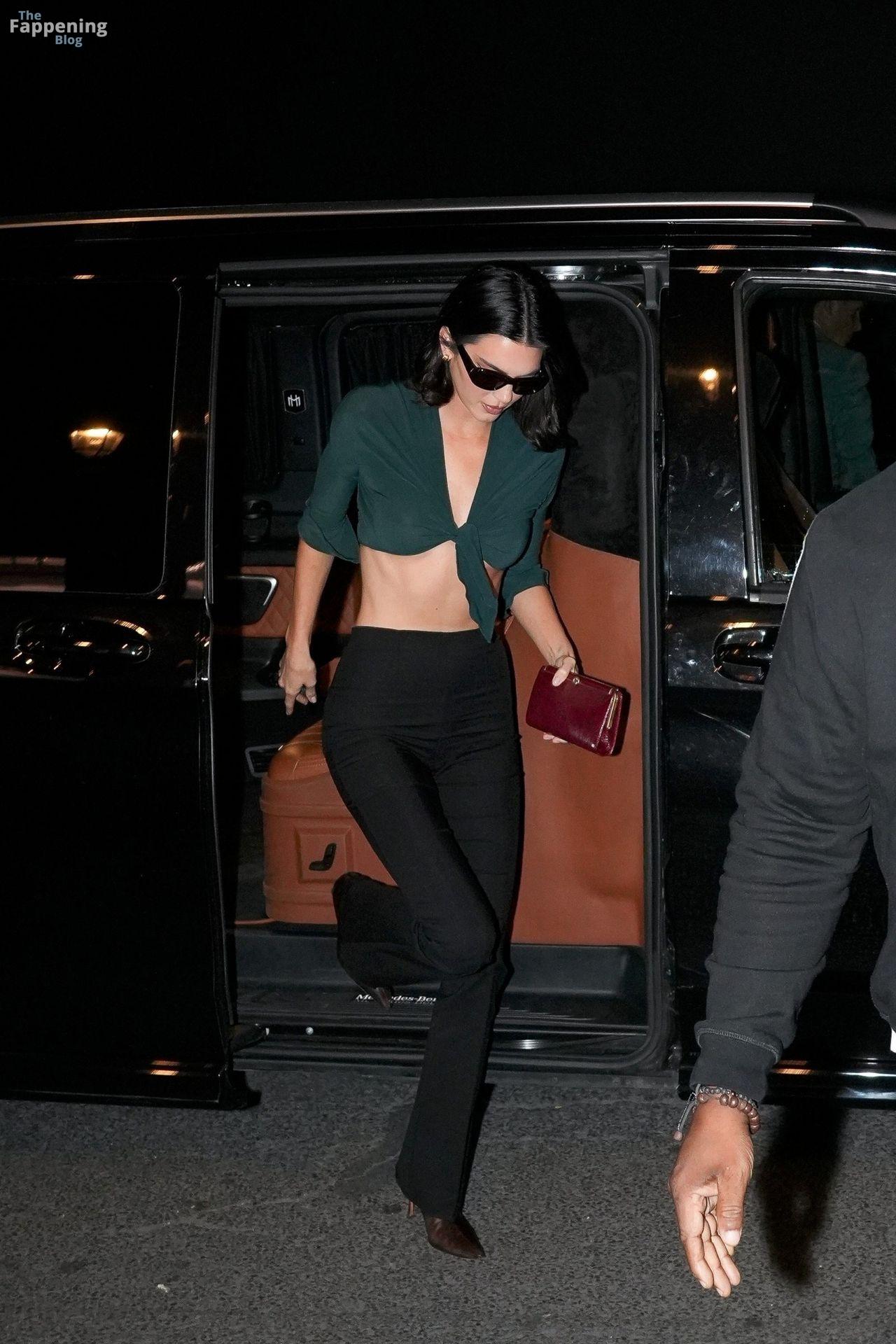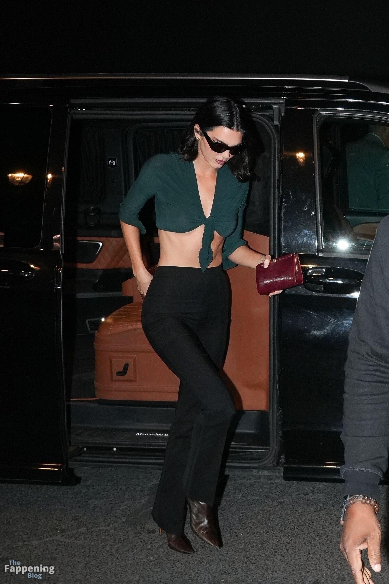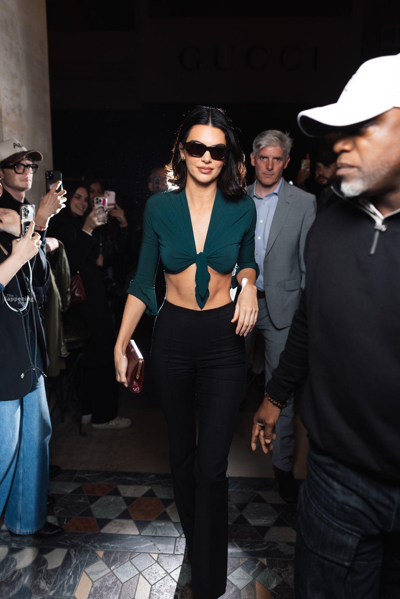 Kendall Jenner zeigte ihre Bauchmuskeln und neckte ihre Brustwarzen in einem winzigen Crop-Top und hautengen Hosen. Sie wurde gesehen, wie sie nach einer Nacht während der Paris Fashion Week zurück zum Costes Hotel in Paris ging.