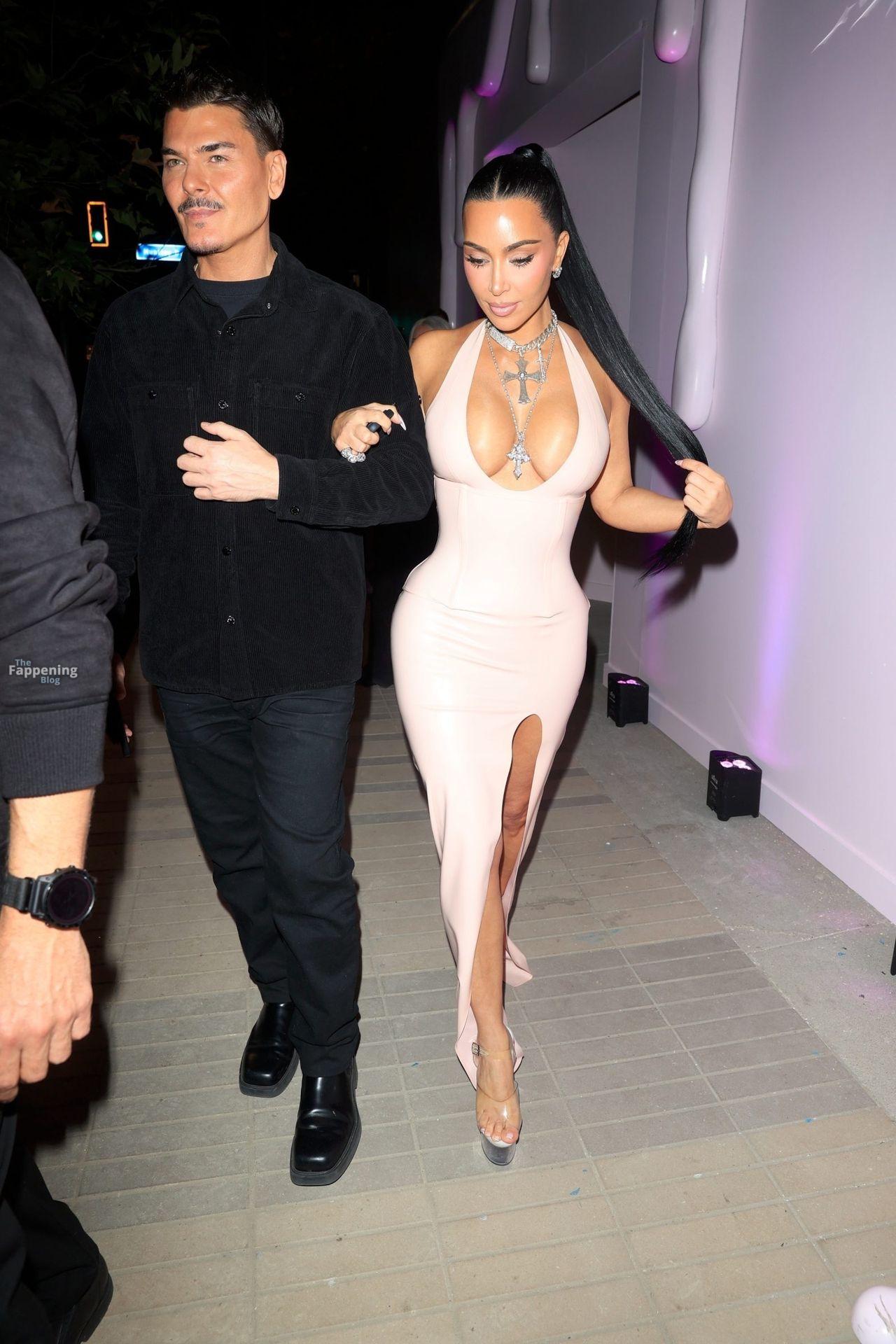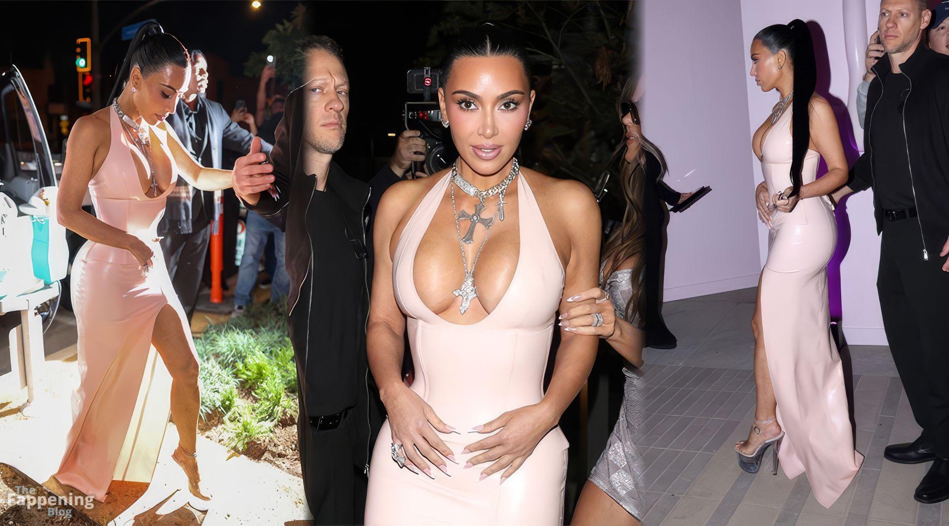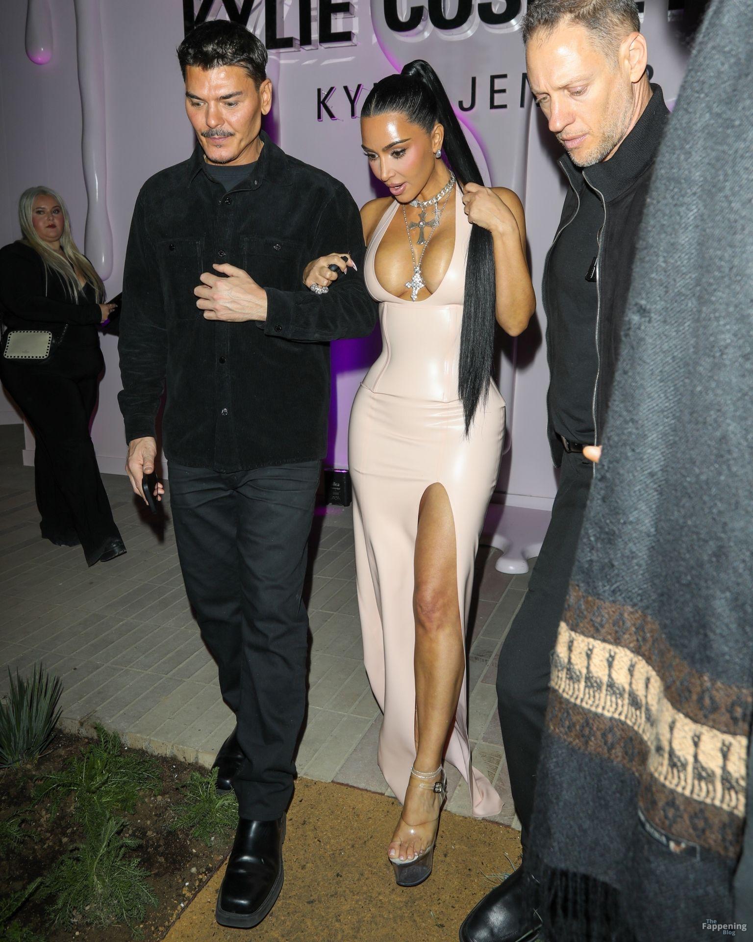 Kim Kardashian erschien bei Kylies Pop Up Kylie Cosmetics Event in West Hollywood und trug ein Latexkleid, aus dem ihre Brüste und ihr Hintern förmlich herauszubrechen schienen.