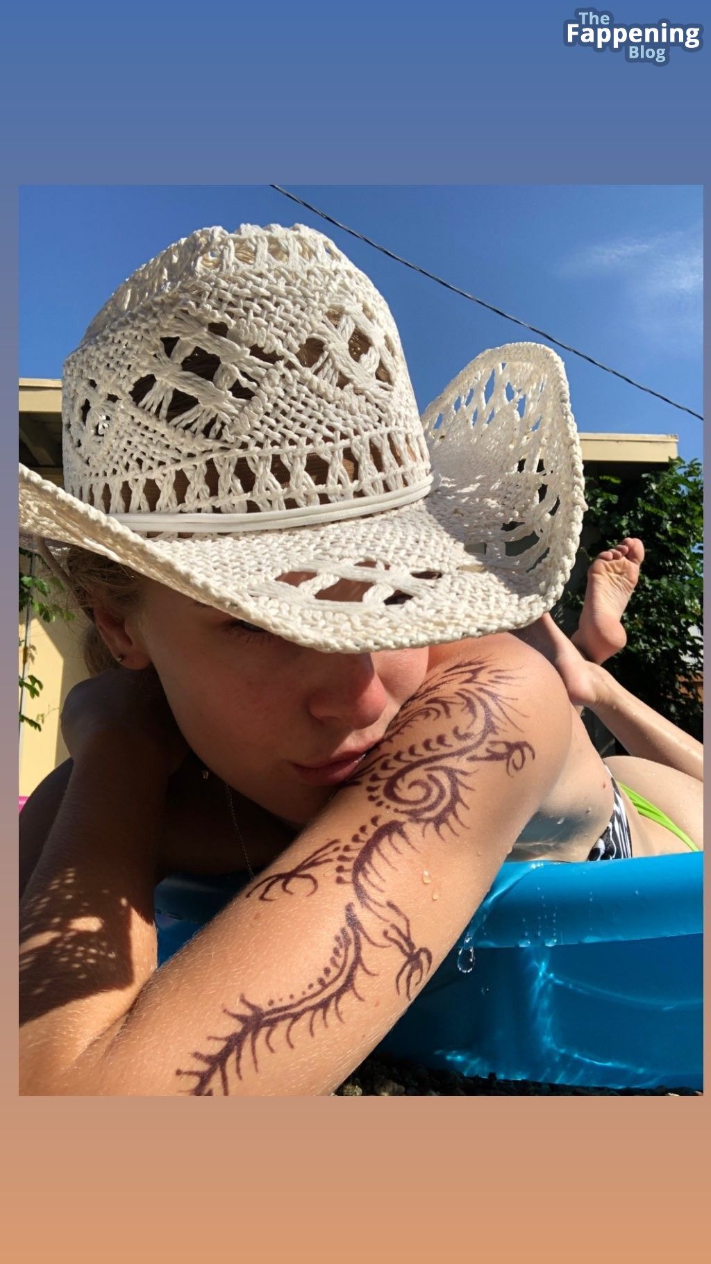 Internationales blondes Model KJ Skorge verbringt den Tag der Arbeit in einem sexy Bikini.