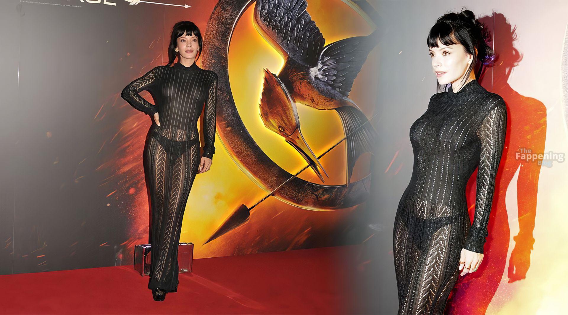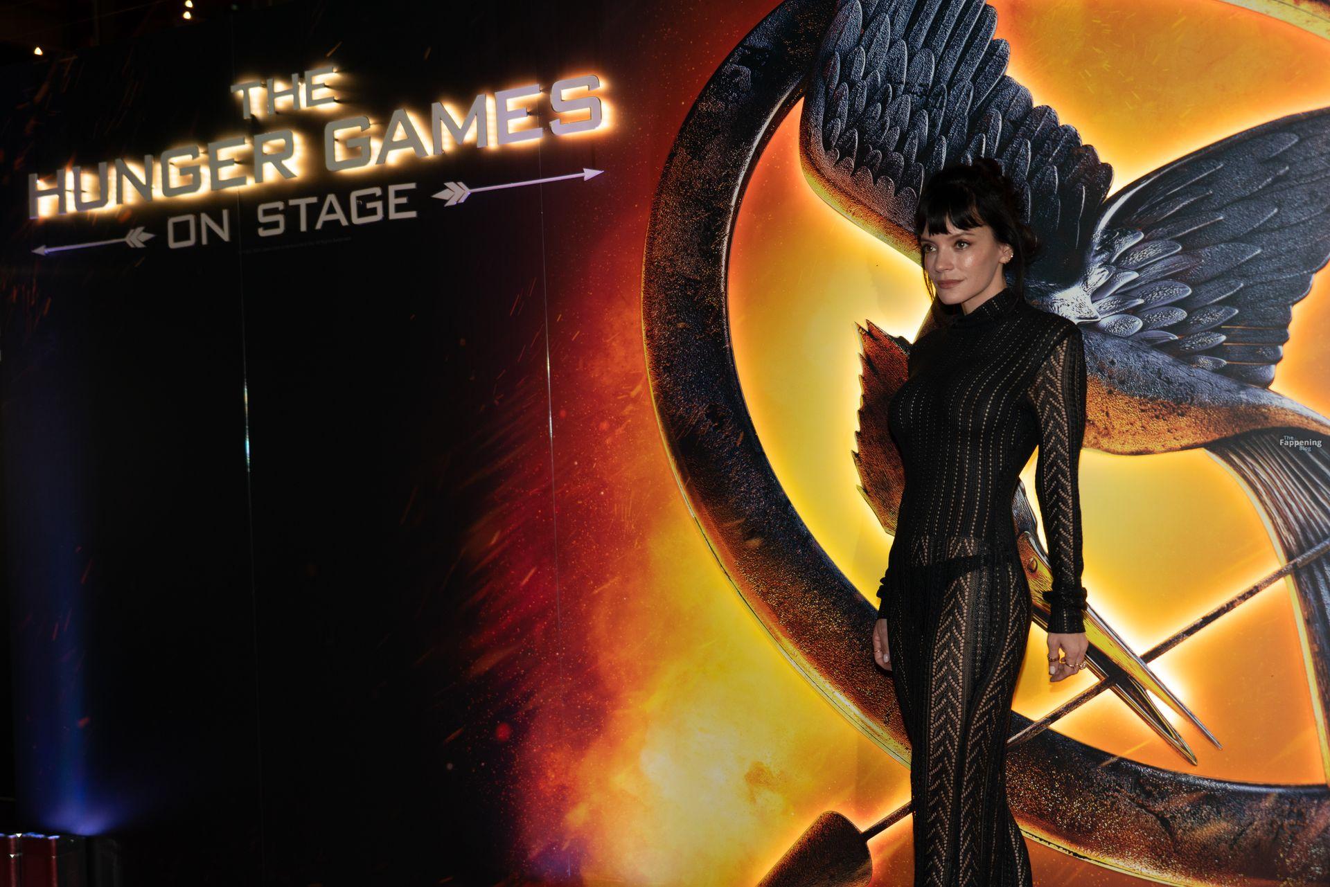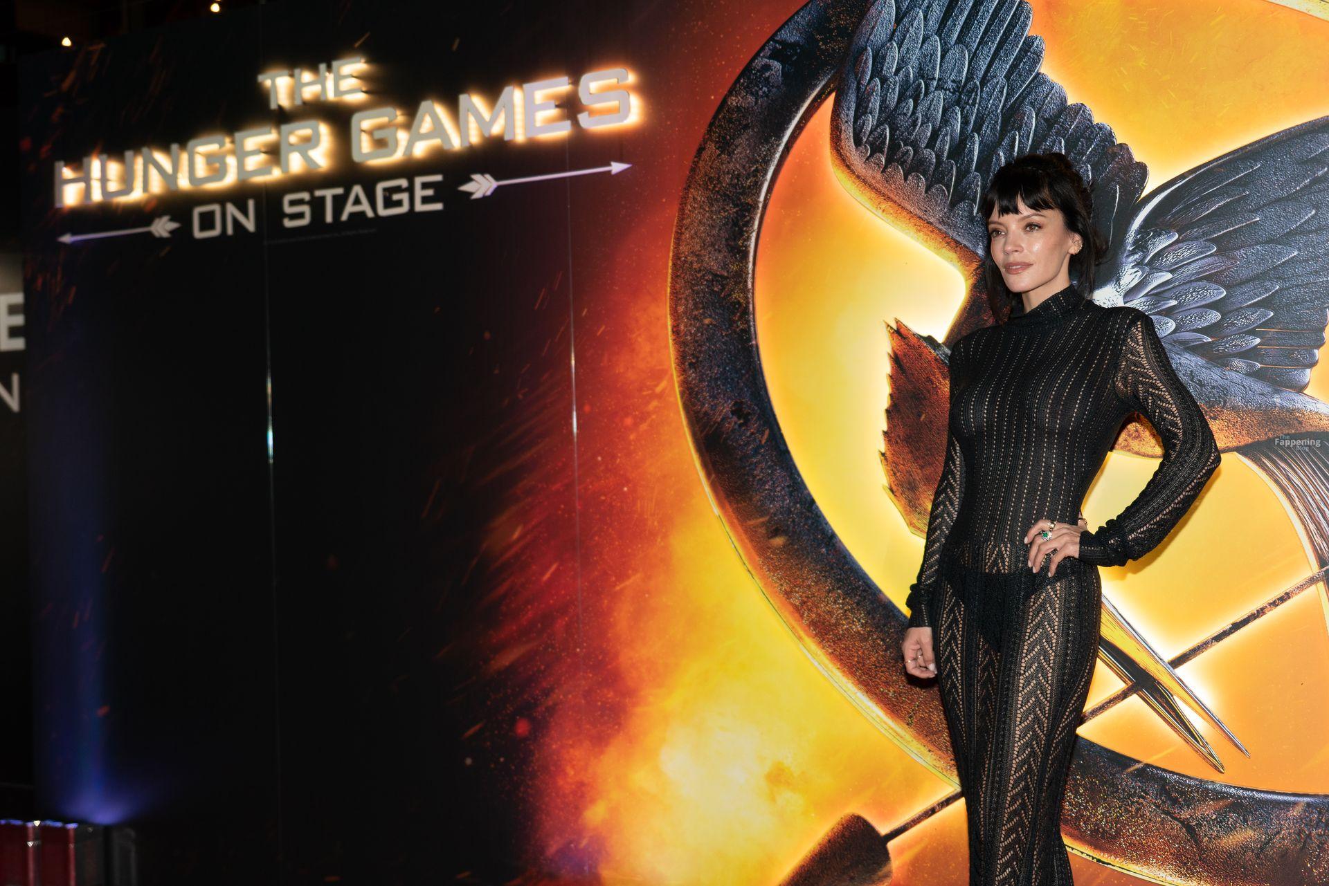 Lily Allen blitzt mit ihren Nippeln und einem String in einem durchsichtigen Kleid bei der Premiere von “The Hunger Games: On Stage” im Troubadour Canary Wharf Theatre in London.