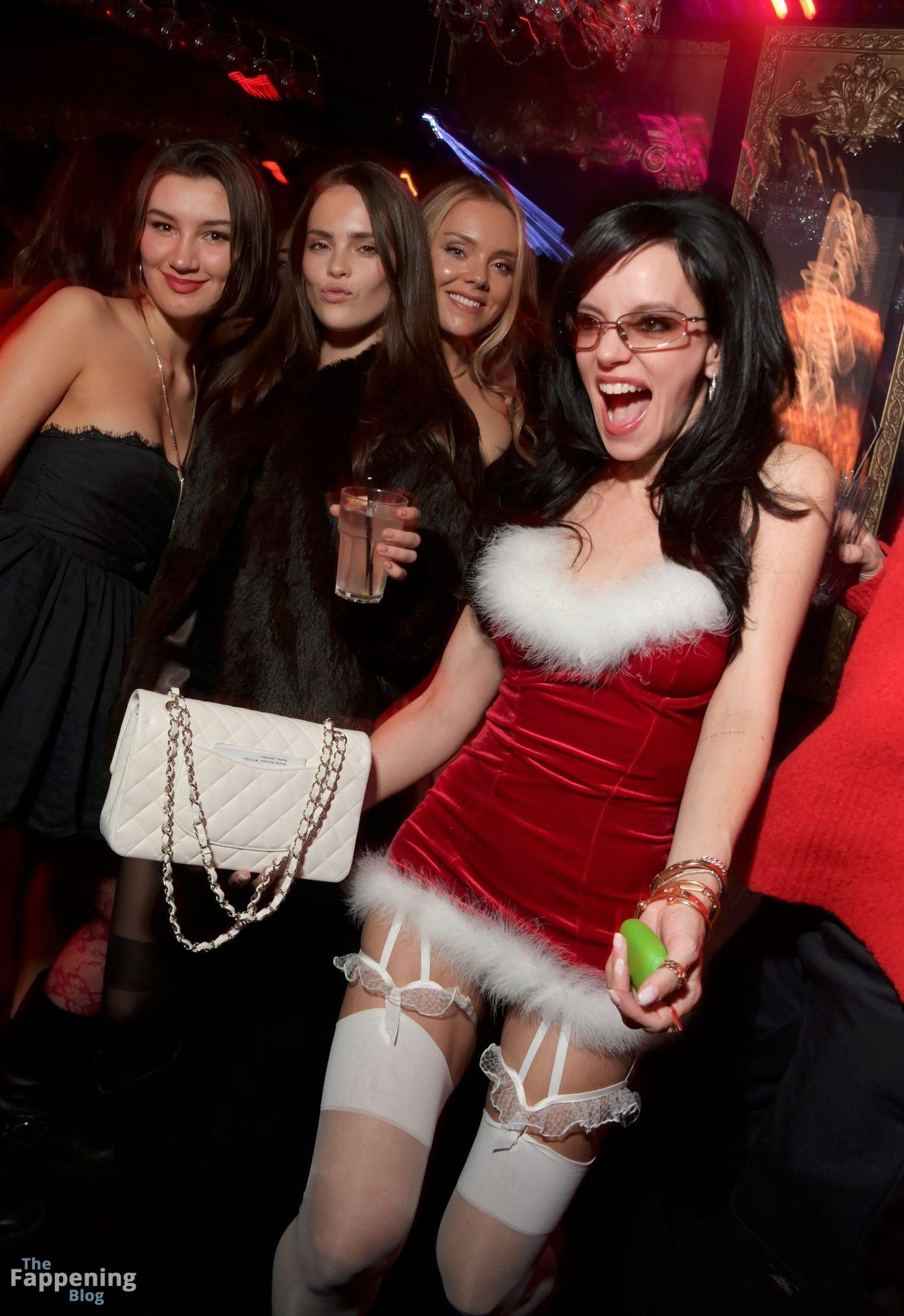 Die britische Singer-Songwriterin Lily Allen heizt die Weihnachtsstimmung bei Stringfellows in einem kaum vorhandenen Weihnachtsmann-Kleid an.