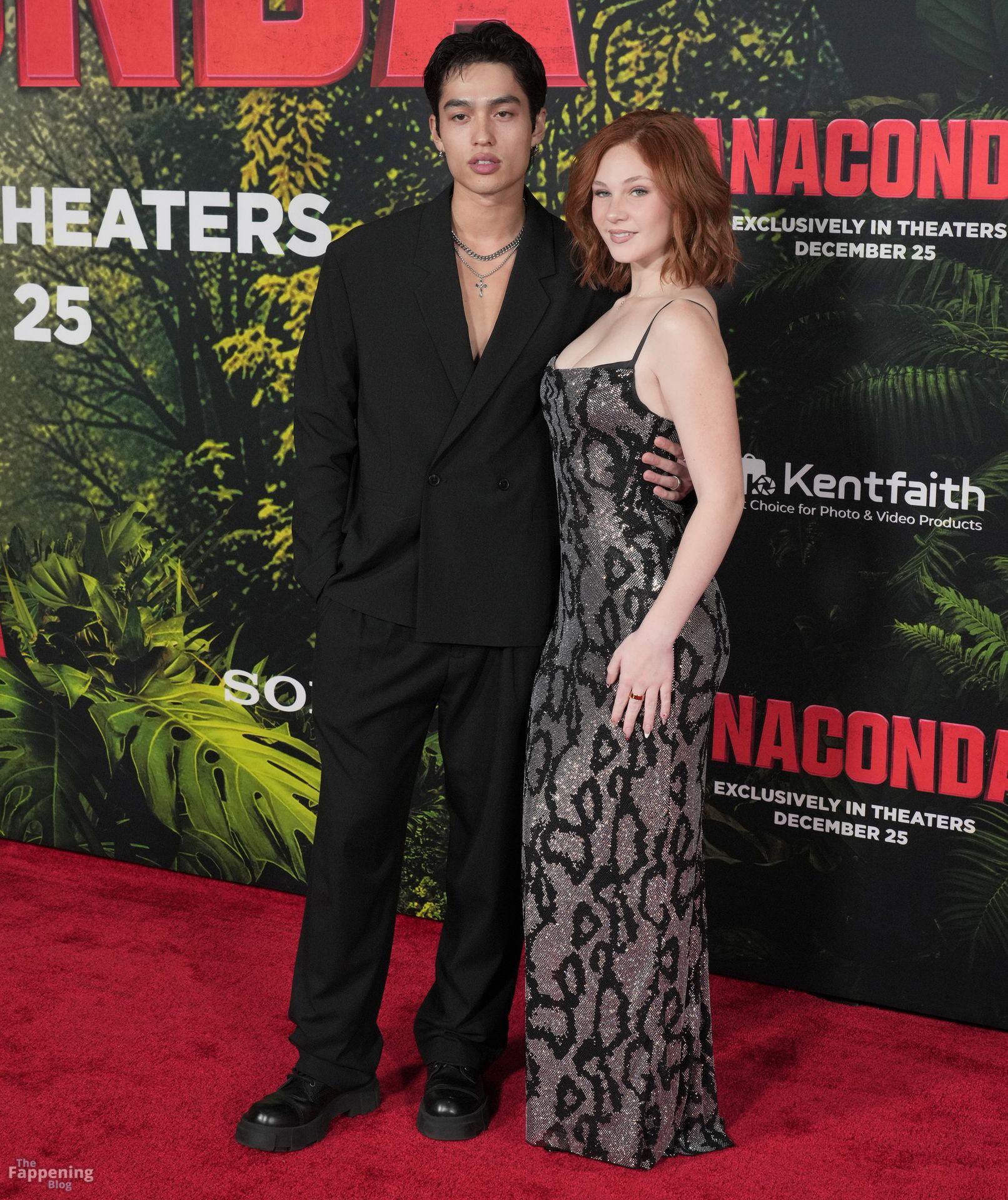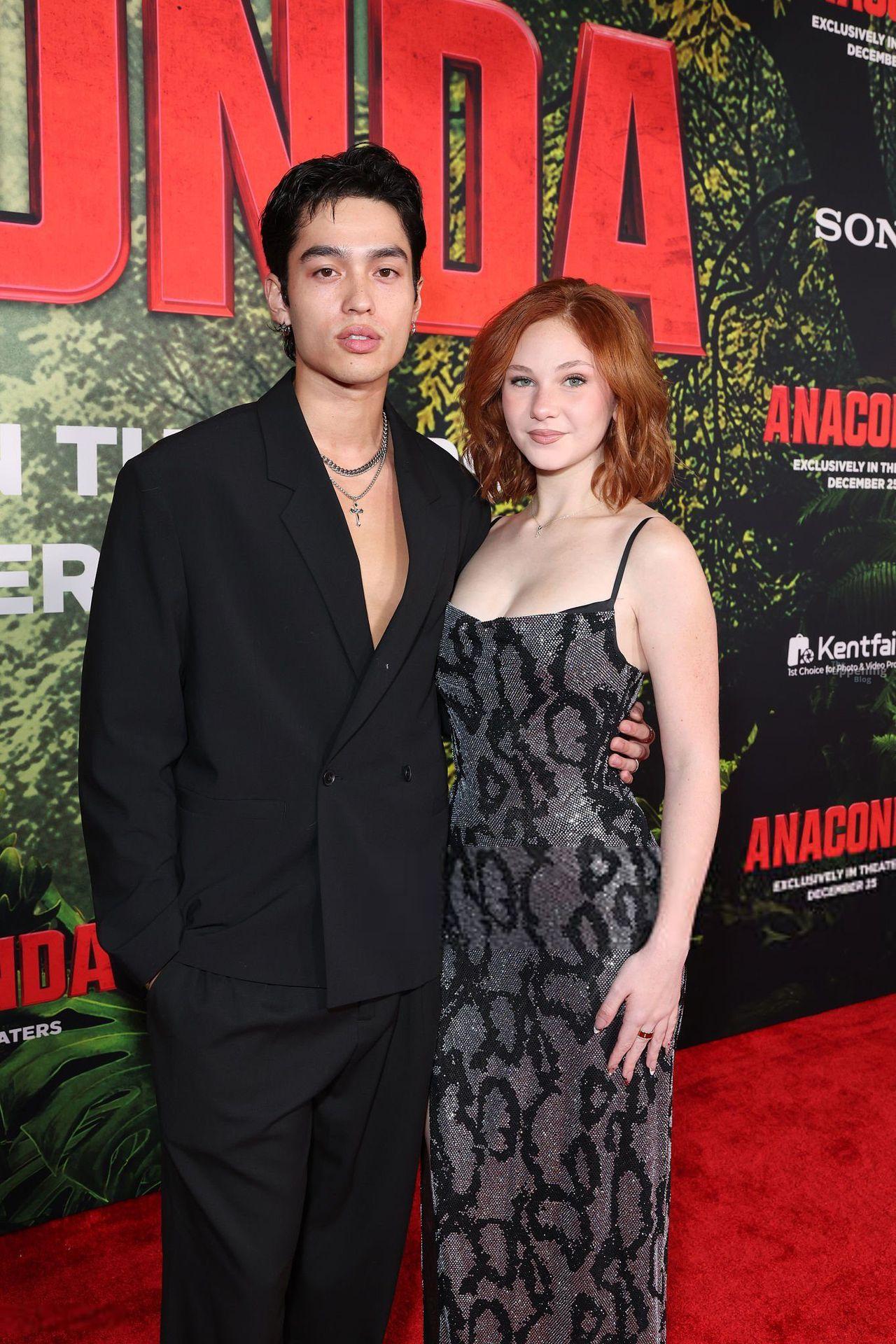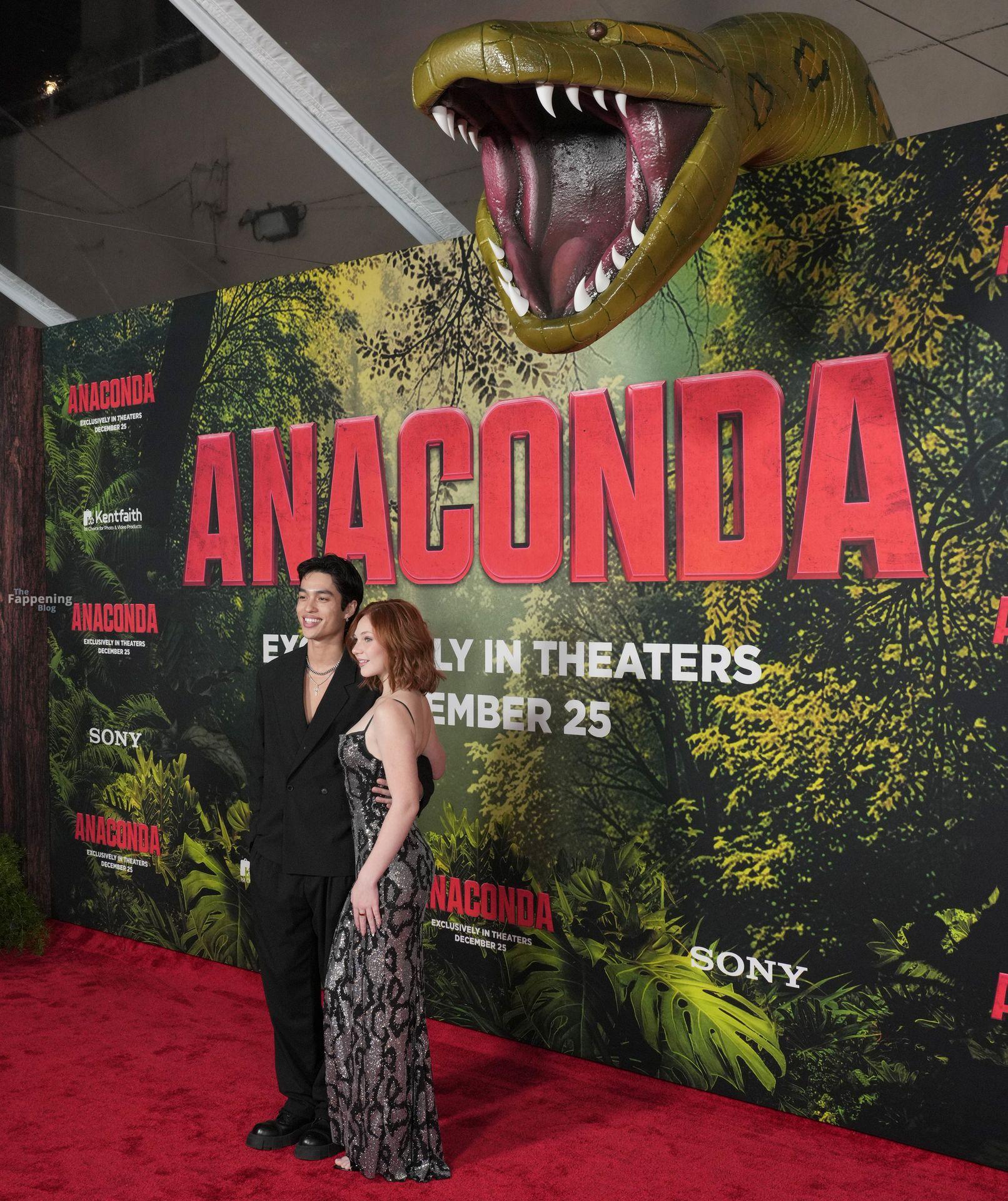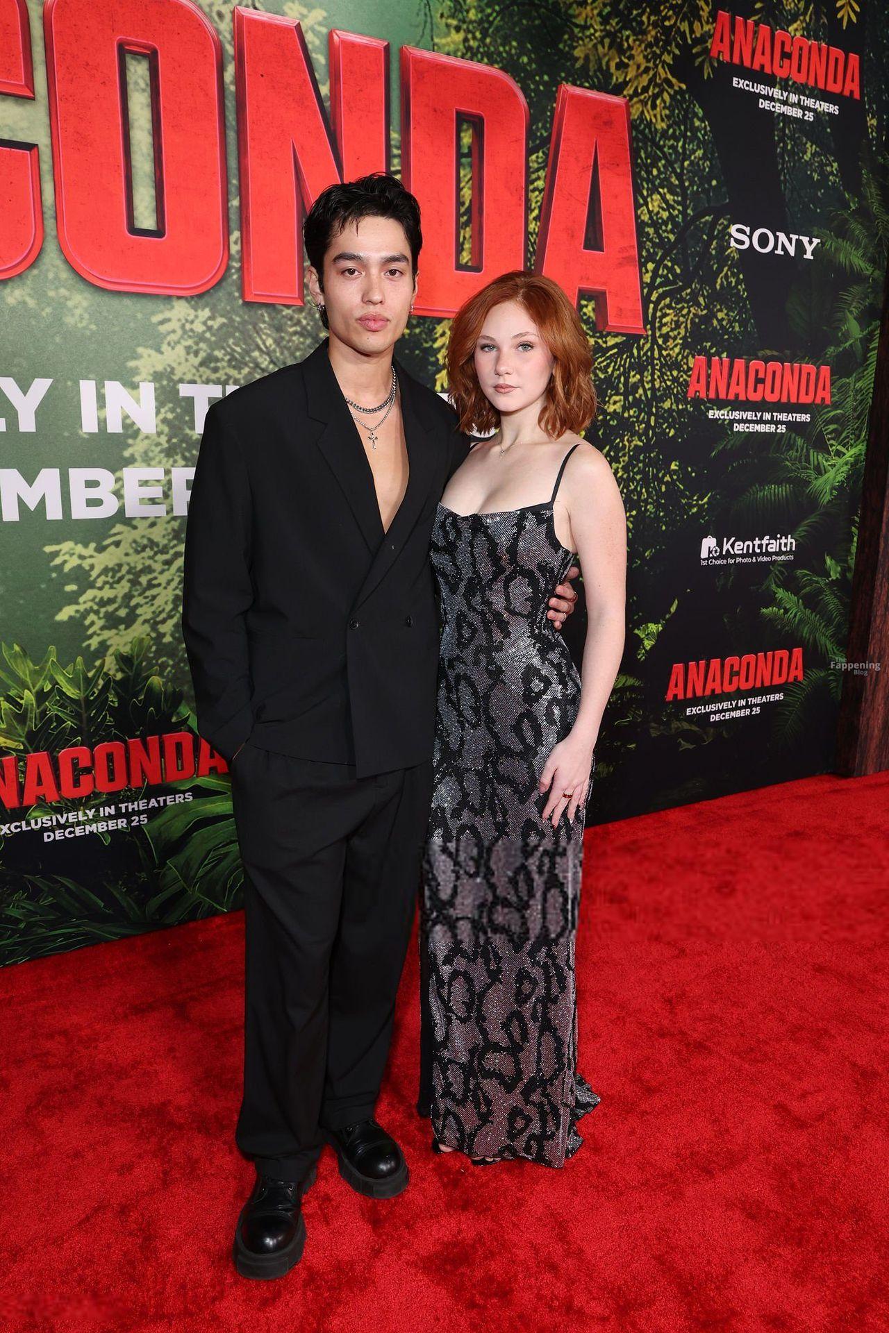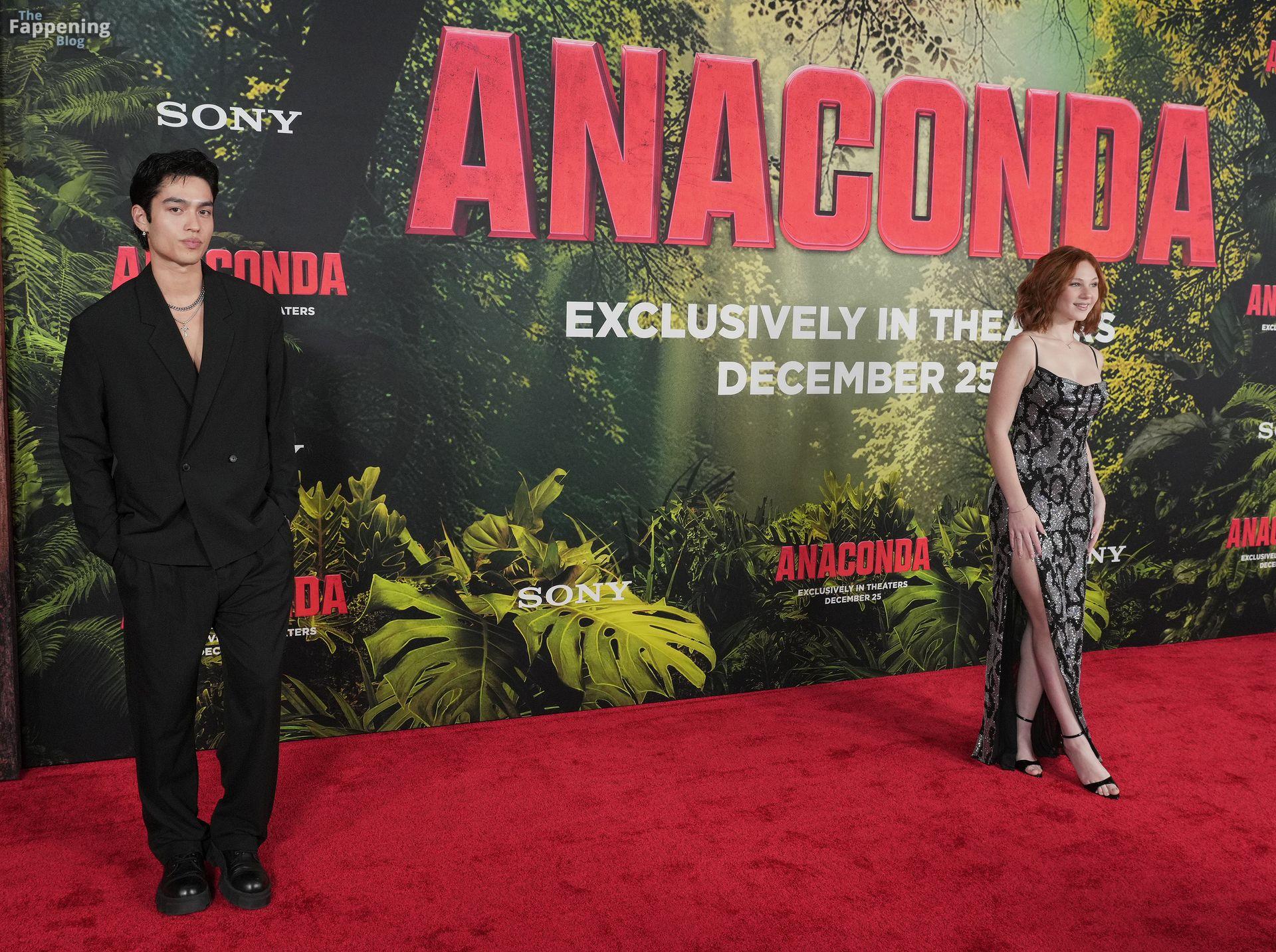 Lily Brooks O’Briant beeindruckt bei der Premiere von “Anaconda” und zeigt ihr Dekolleté in einem hautengen Kleid mit Tiermuster.