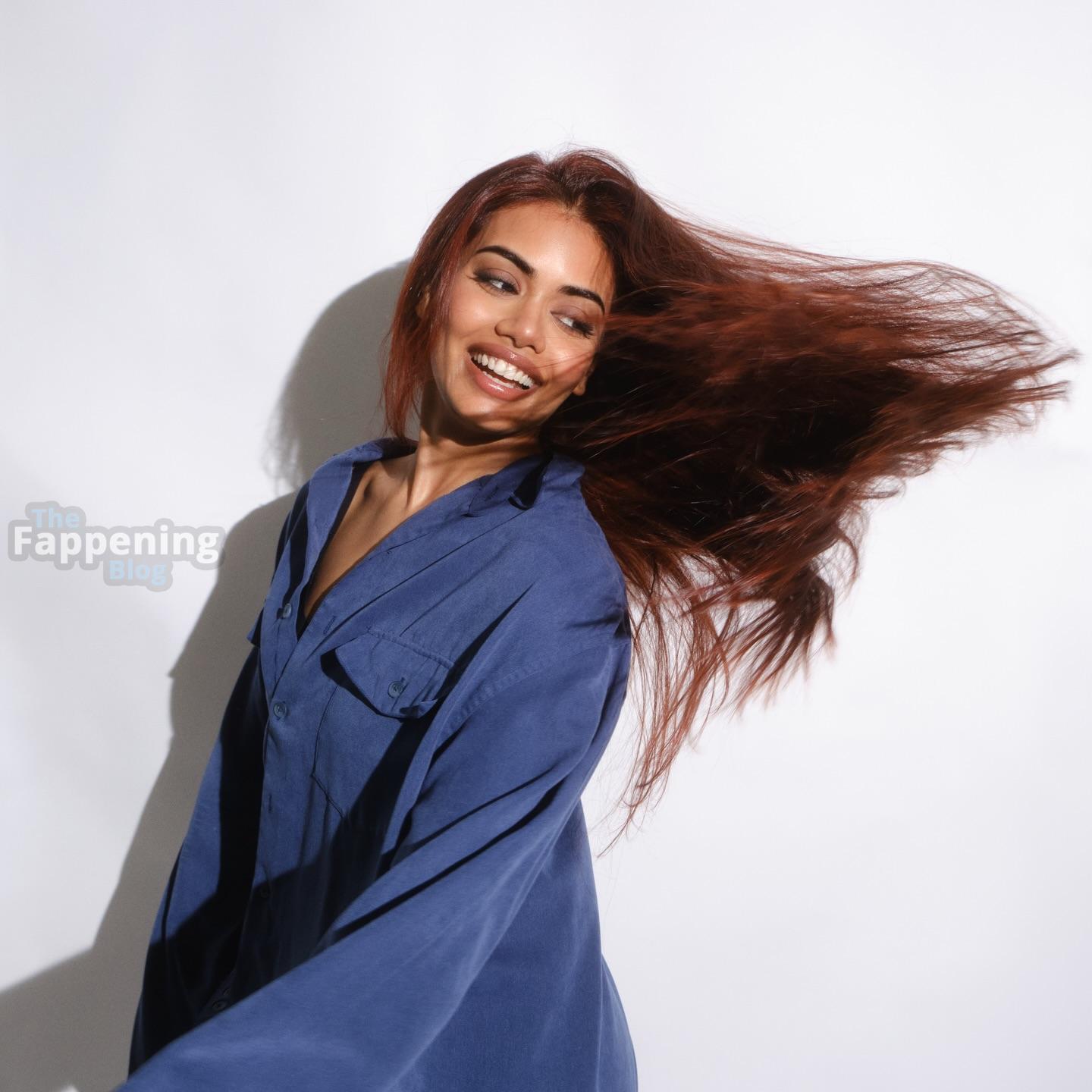 Du musst Megan Suris neue Studiofotos und Videos sehen. Die Schauspielerin sieht absolut mühelos aus in einem übergroßen blauen Jeanshemd und weißen Socken, während sie auf dem Boden liegt und ihr lebhaft rotes Haar herabfällt.