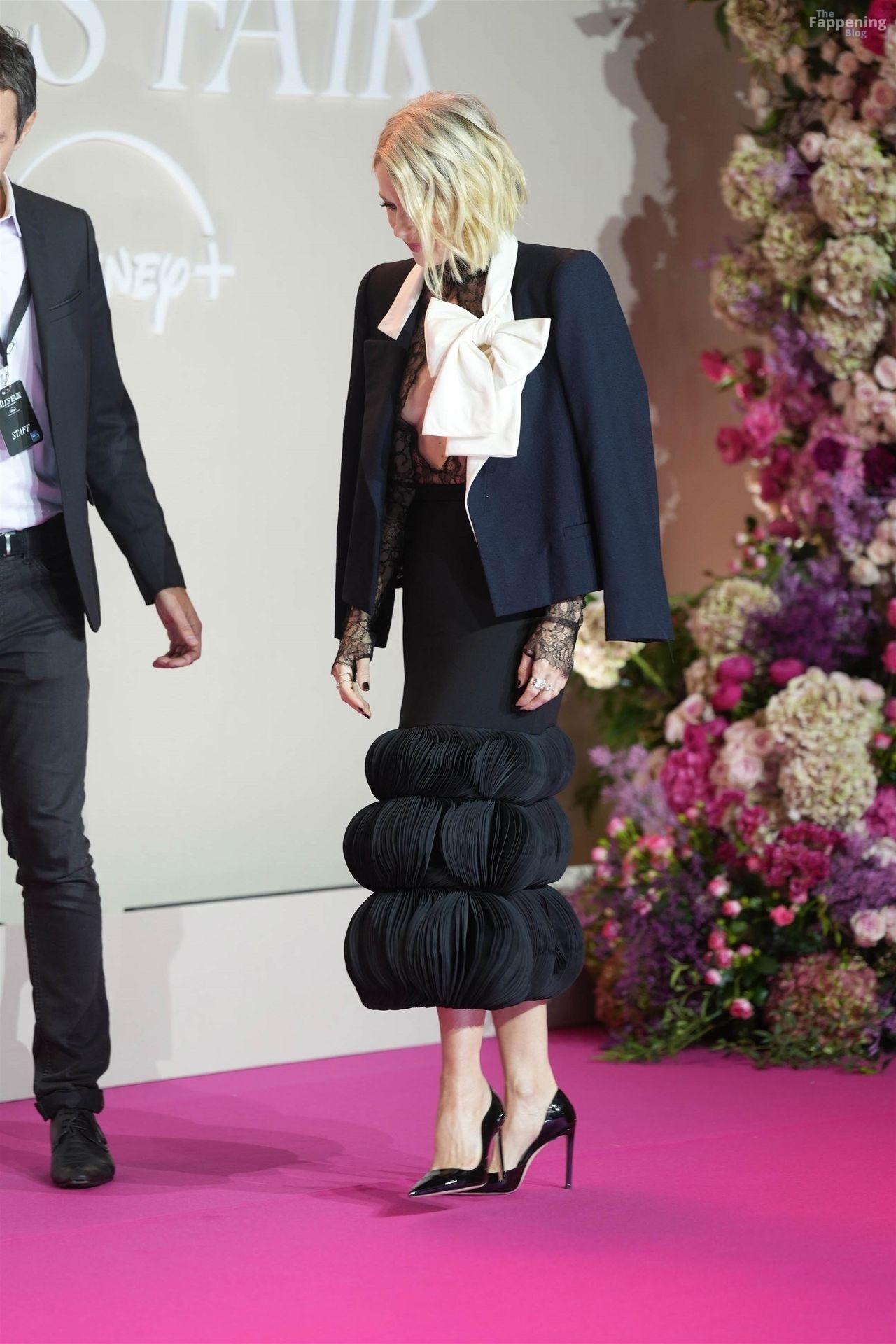 Die britische Schauspielerin Naomi Watts war bei der Premiere von “All’s Fair” in Paris und trug ein durchsichtiges schwarzes Spitzenoberteil mit tiefem Ausschnitt, das ihre Brüste zur Schau stellte. Sie kombinierte es mit einem großen, strukturierten Rock und einem strukturierten Blazer, der über ihre Schultern gelegt war. Sehr schön, sexy, und das Alter bremst sie kein bisschen.