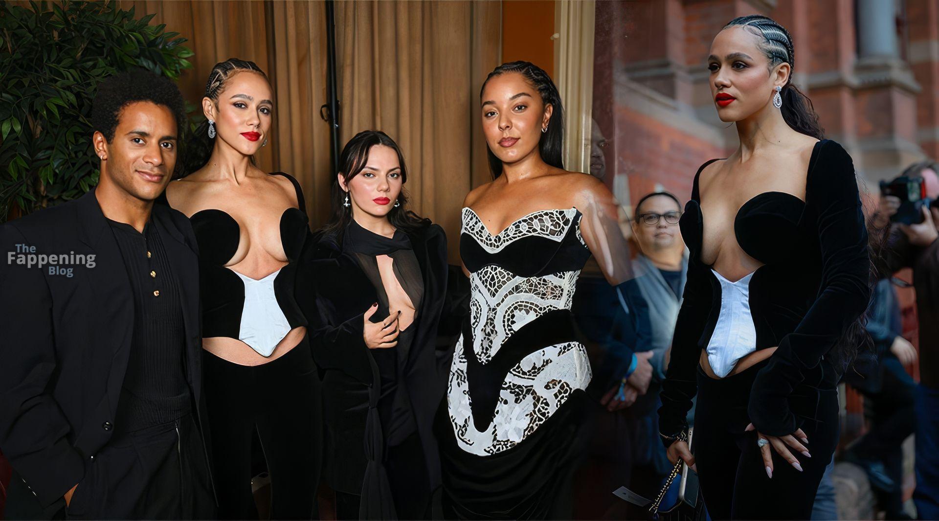 Nathalie Emmanuel zeigt ihre Brüste in einem samtigen Jumpsuit mit Ausschnitt und verwandelt die London Fashion Week in eine Dekolleté-Show