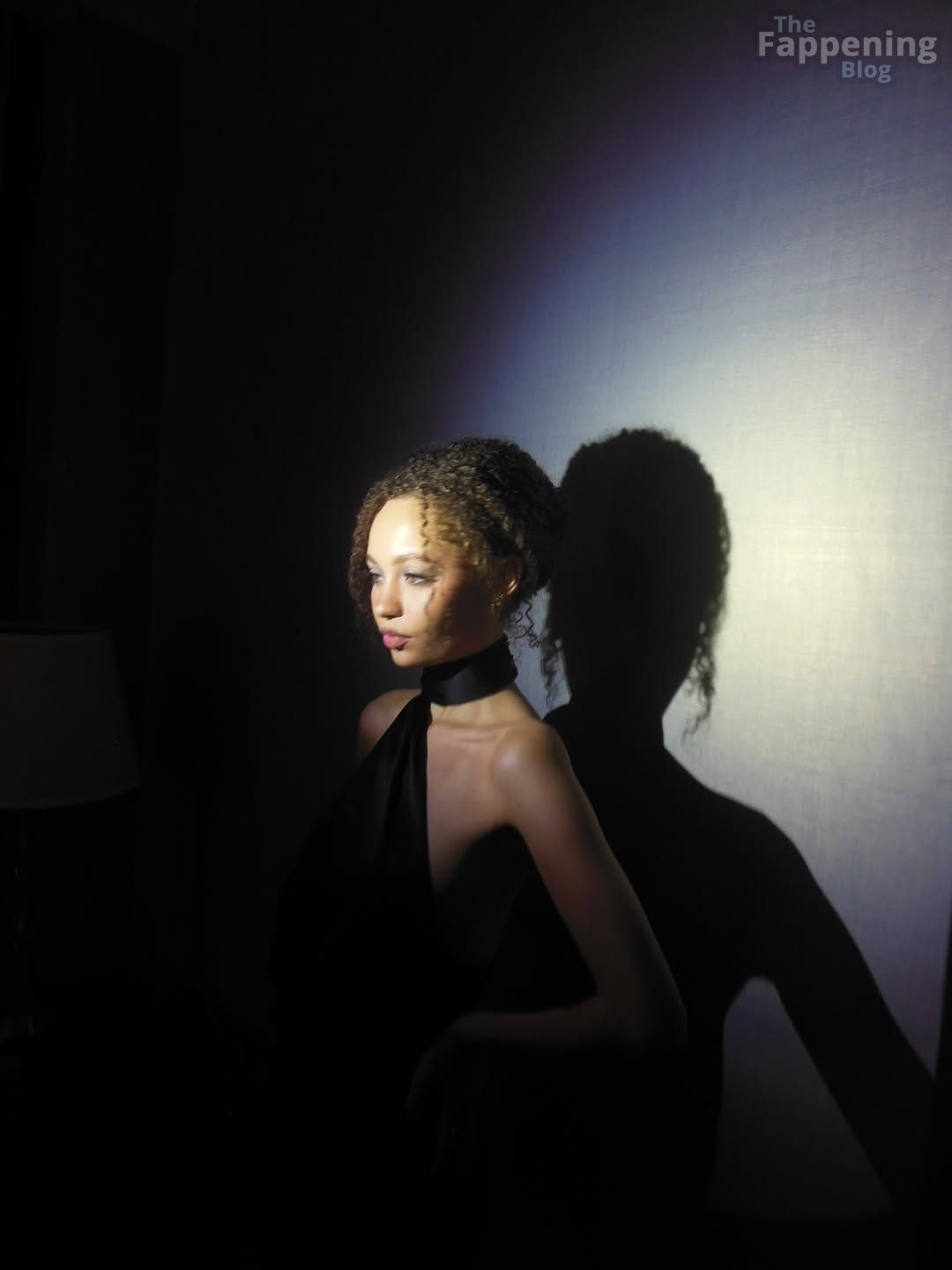 Nico Parker posiert ohne BH in einem schwarzen Kleid für das Social-Media-Shooting.