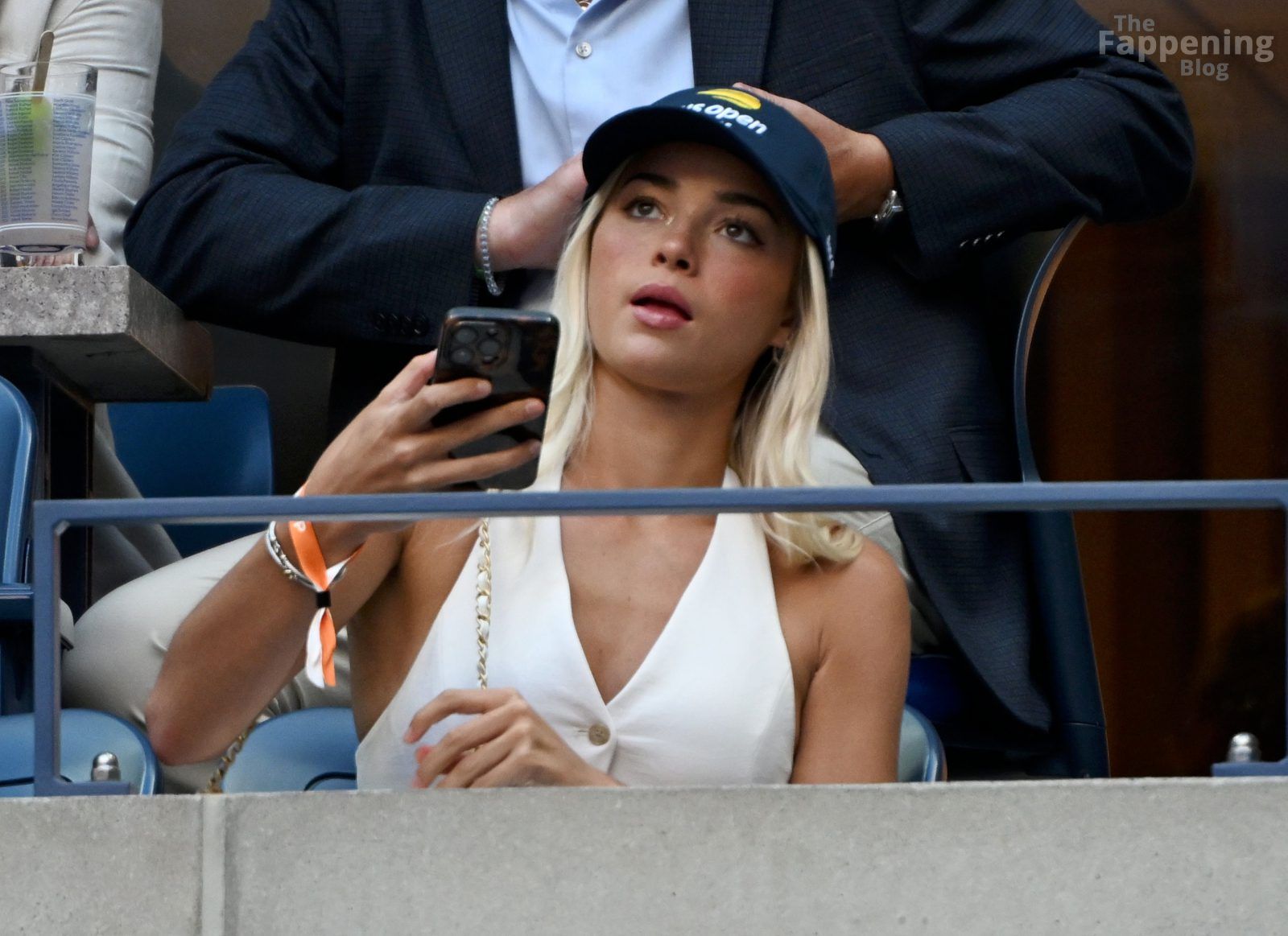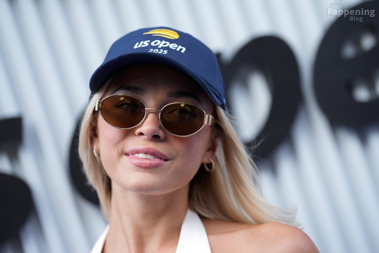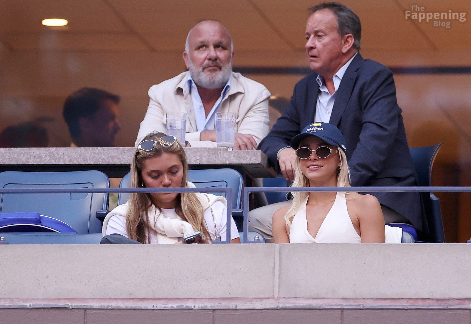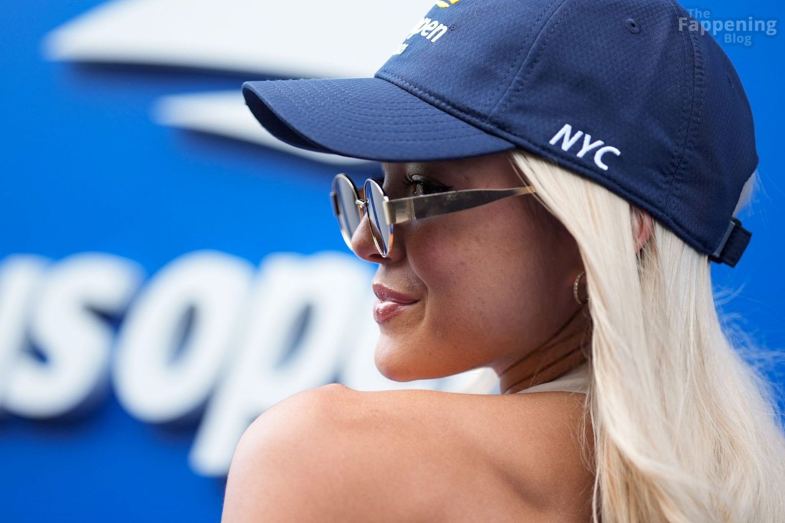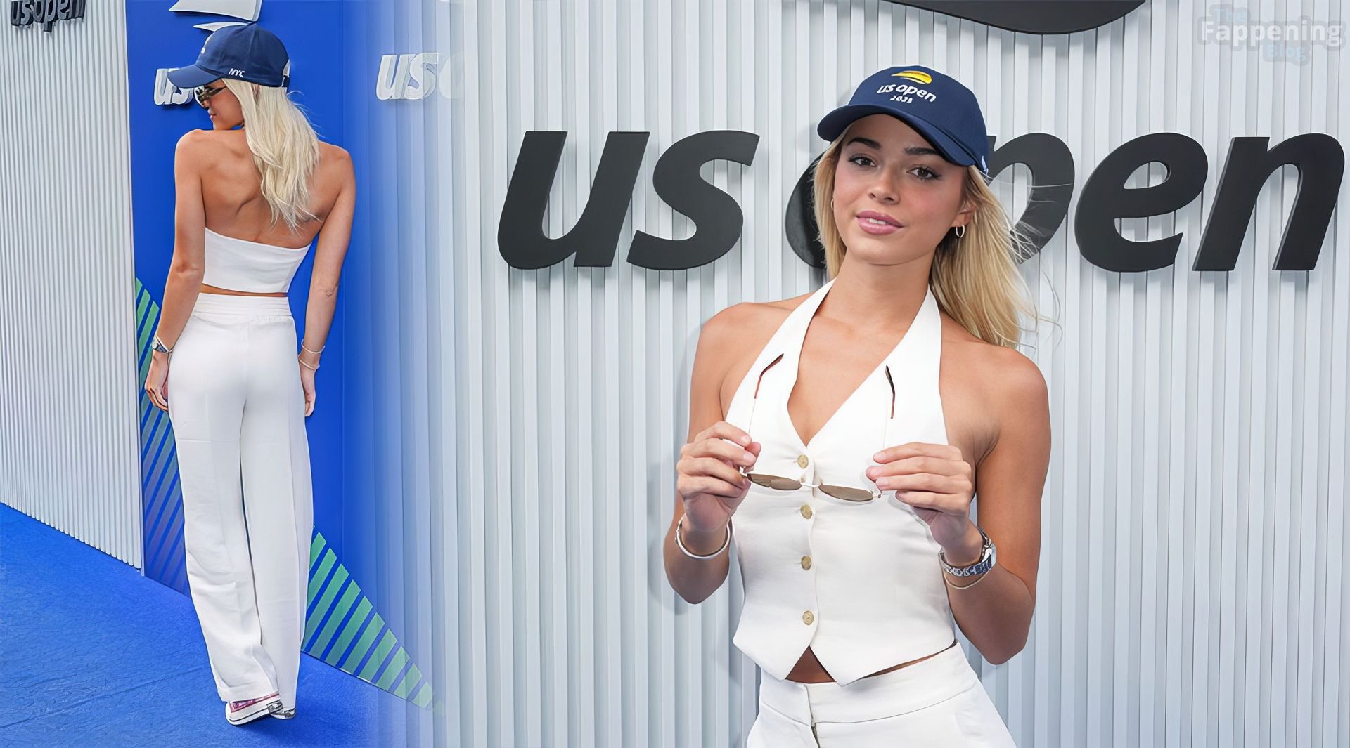 Die amerikanische Influencerin und ehemalige Kunstturnerin Olivia Dunne trug bei den US Open ein rückenfreies Neckholder-Top und enge Hosen.