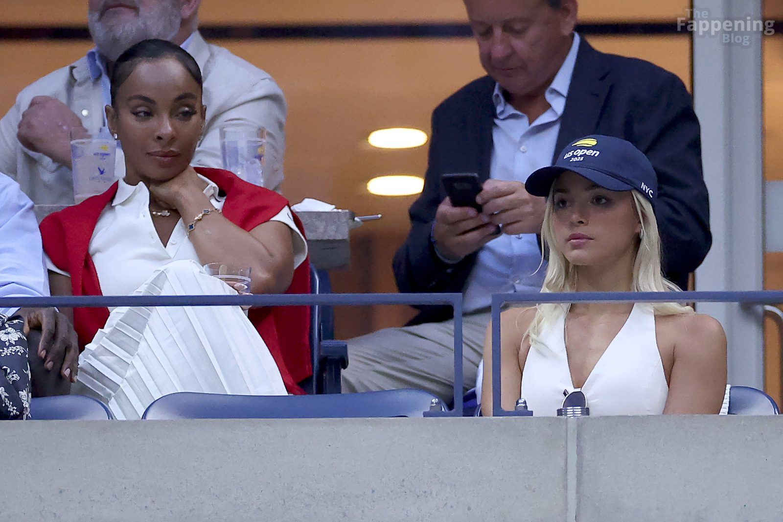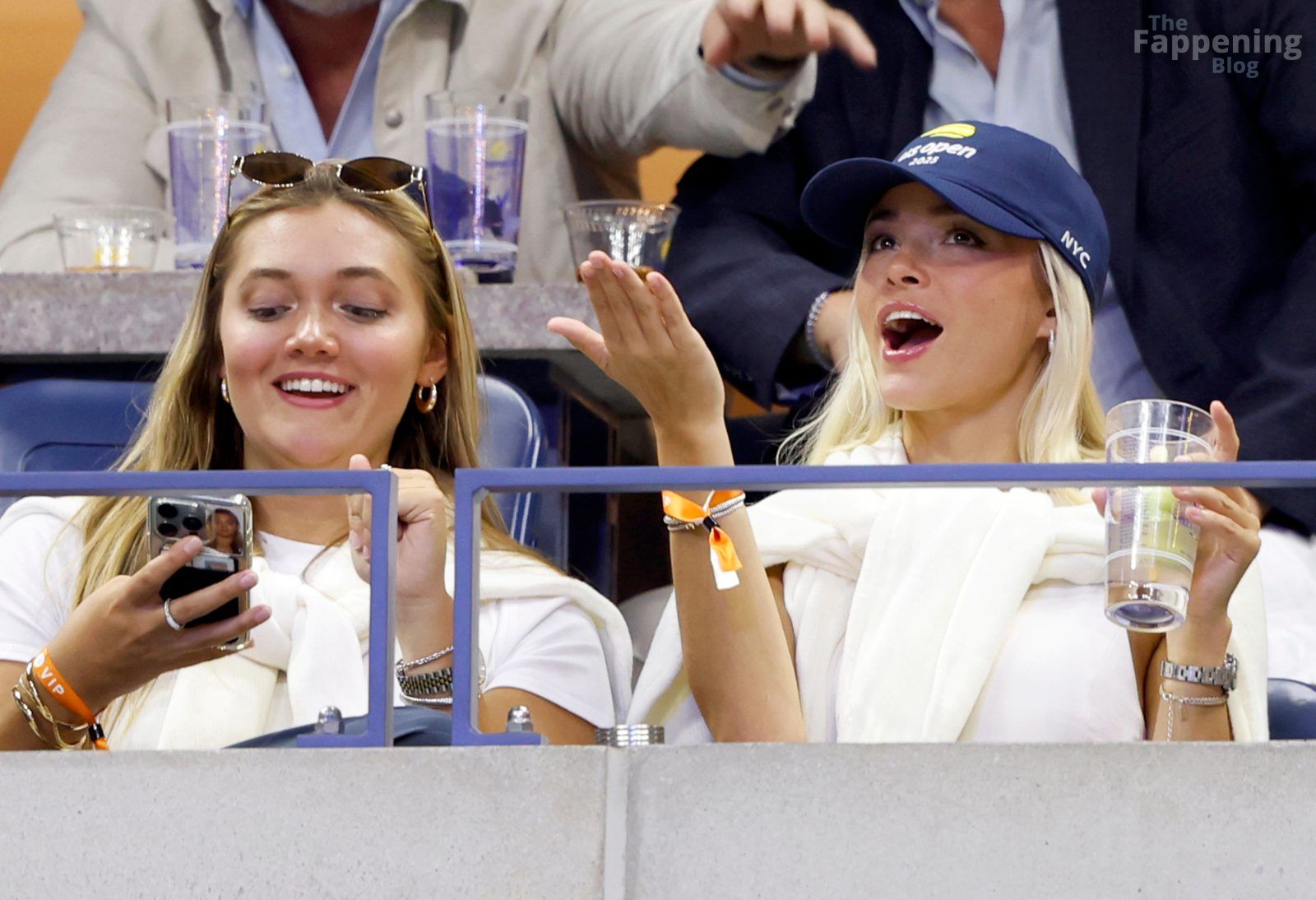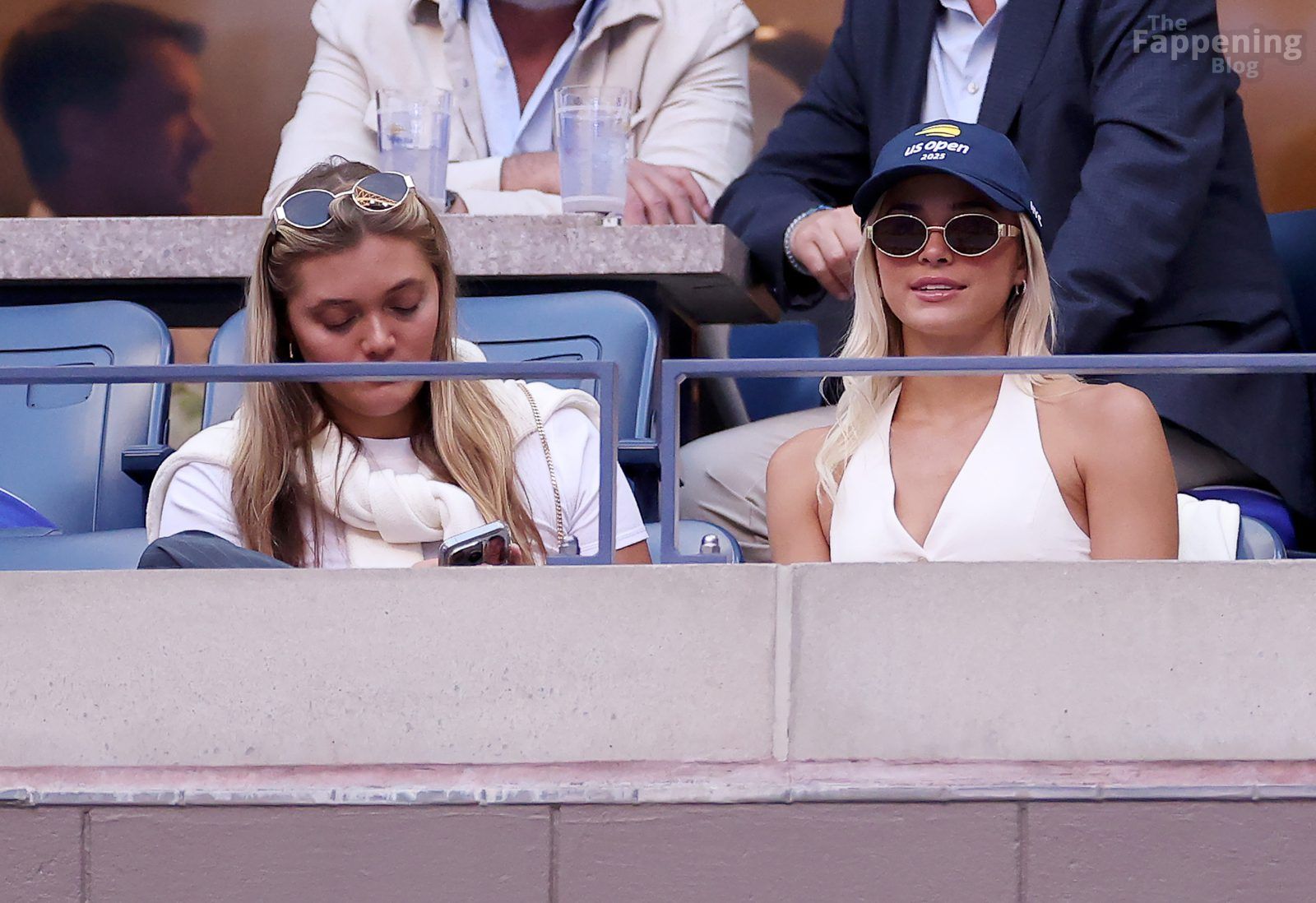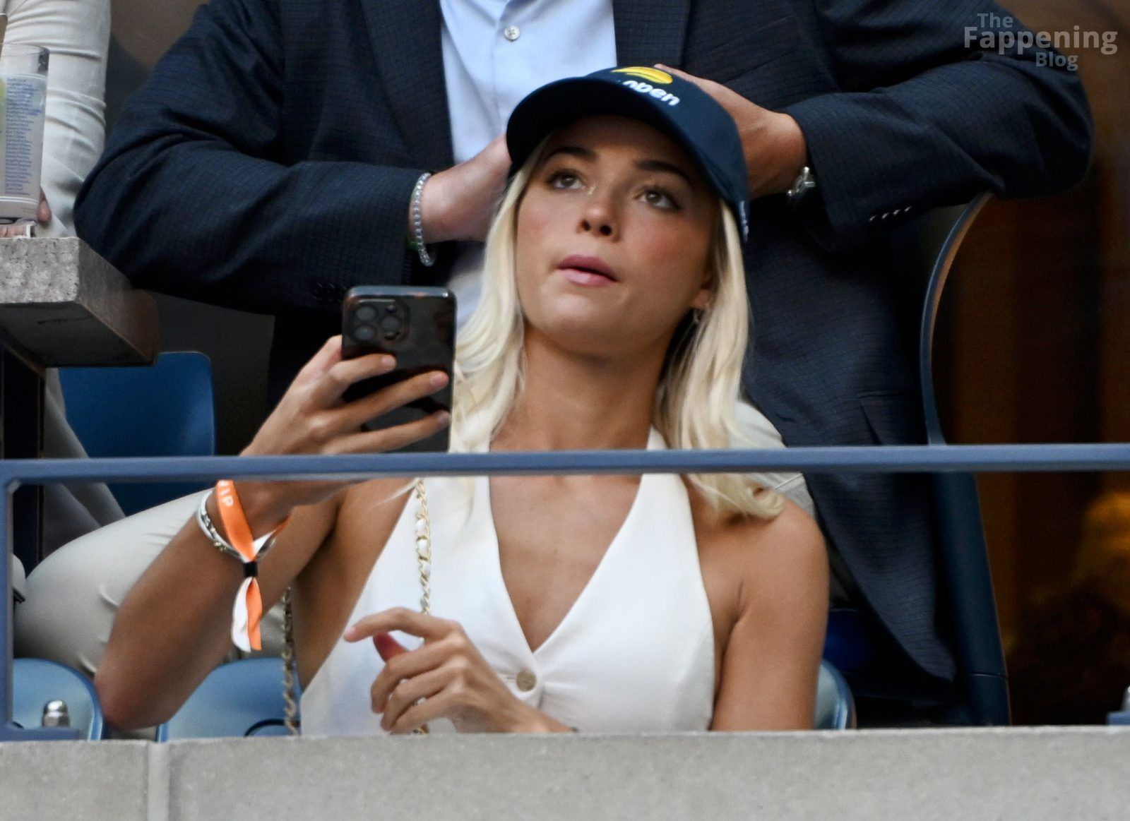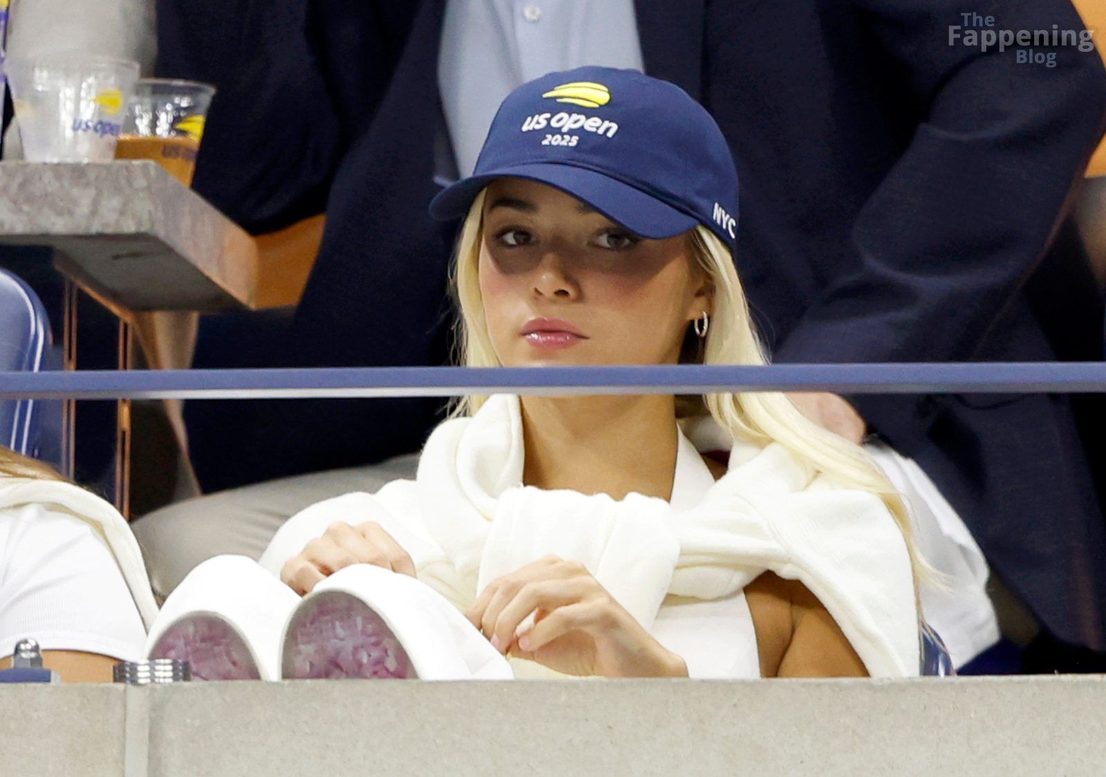 Die amerikanische Influencerin und ehemalige Kunstturnerin Olivia Dunne trug bei den US Open ein rückenfreies Neckholder-Top und enge Hosen.
