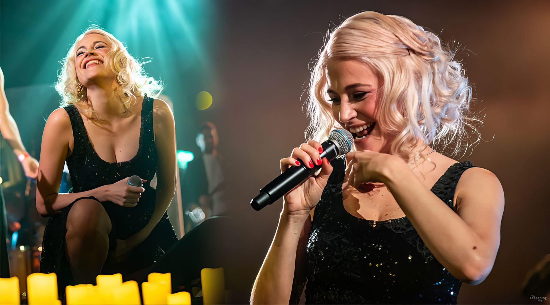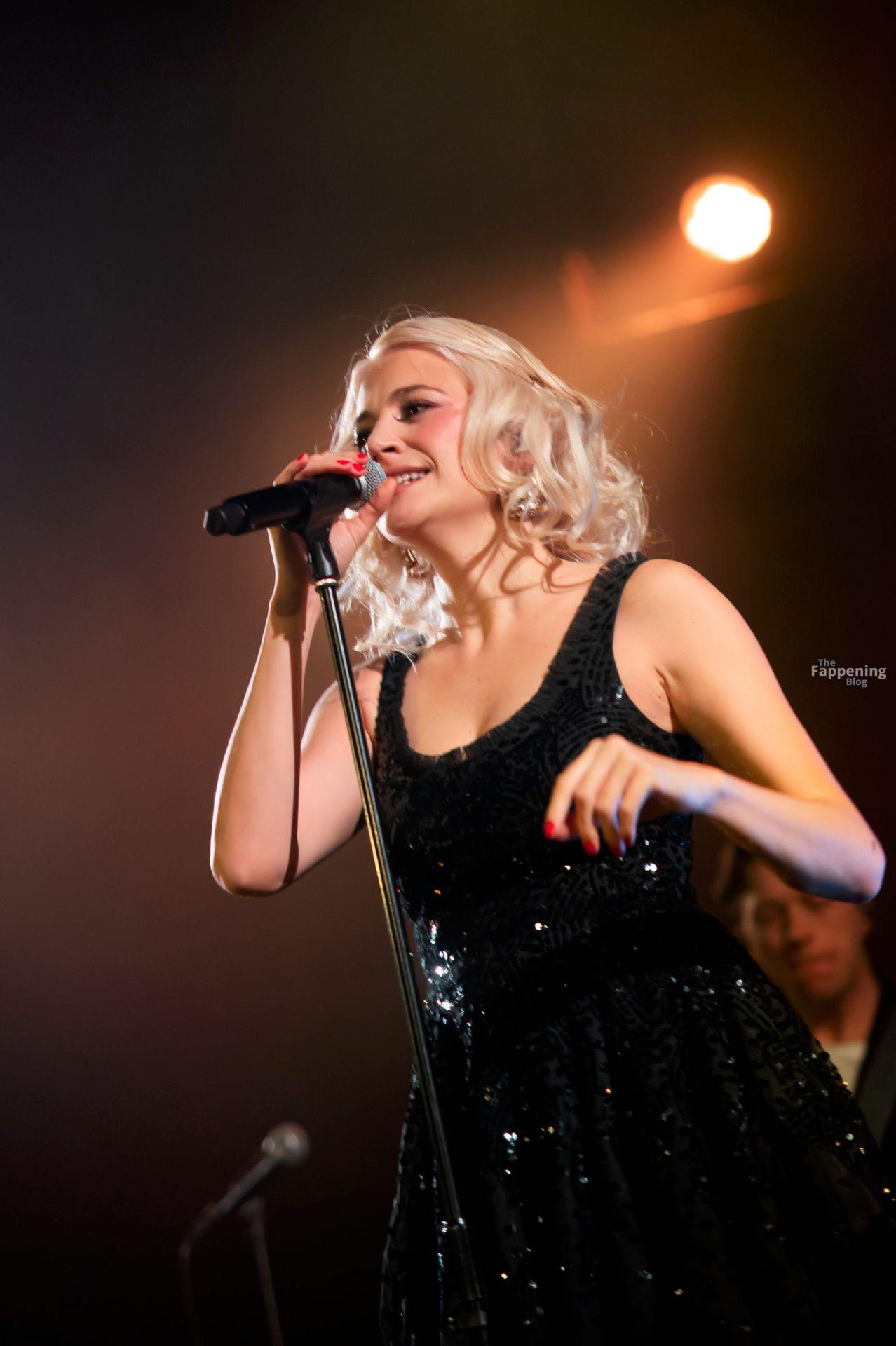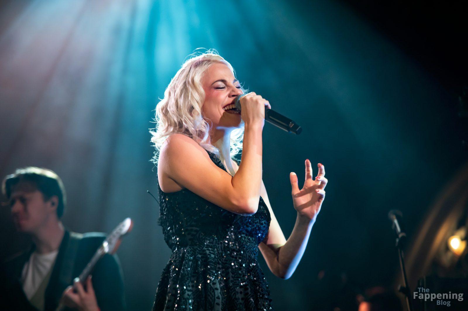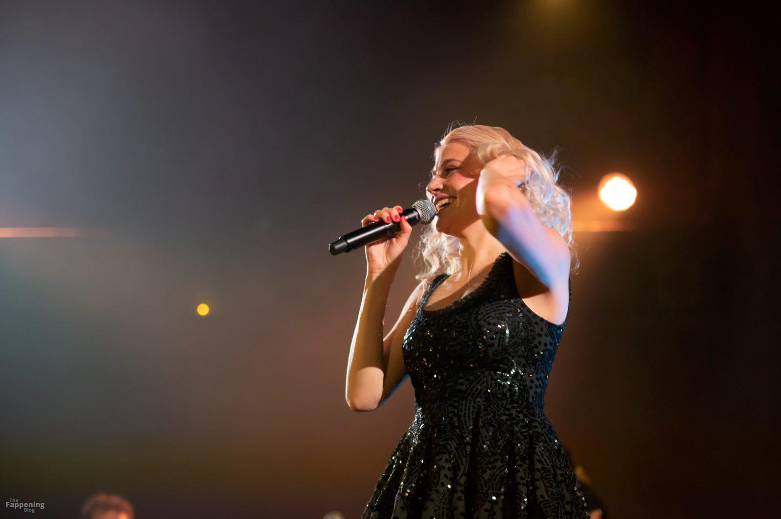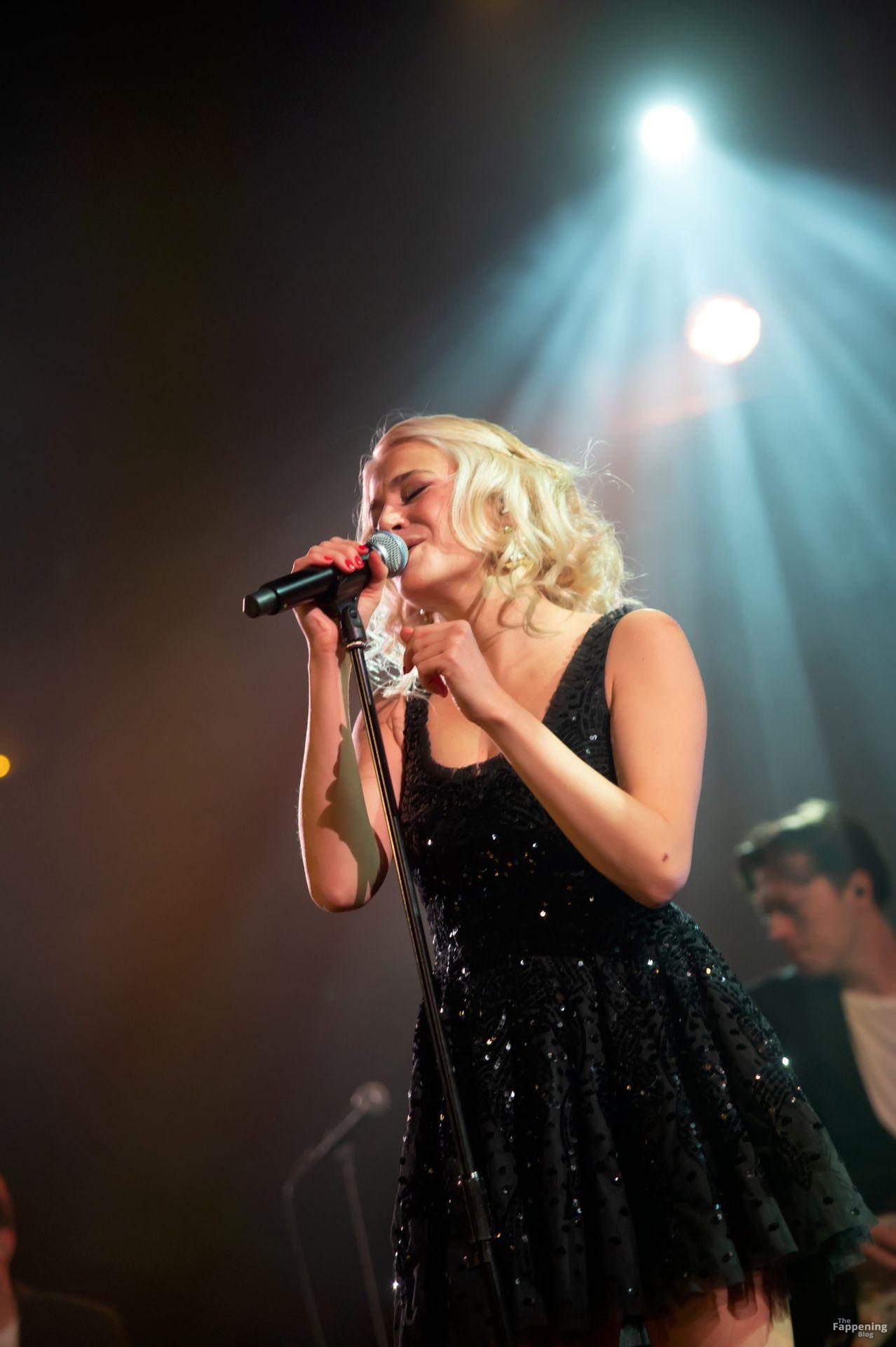 Pixie Lott wurde beim Konzert in London abgelichtet, wie sie ein schwarzes Pailletten-Minikleid trug und ihre Beine sowie ihr Dekolleté zur Schau stellte.