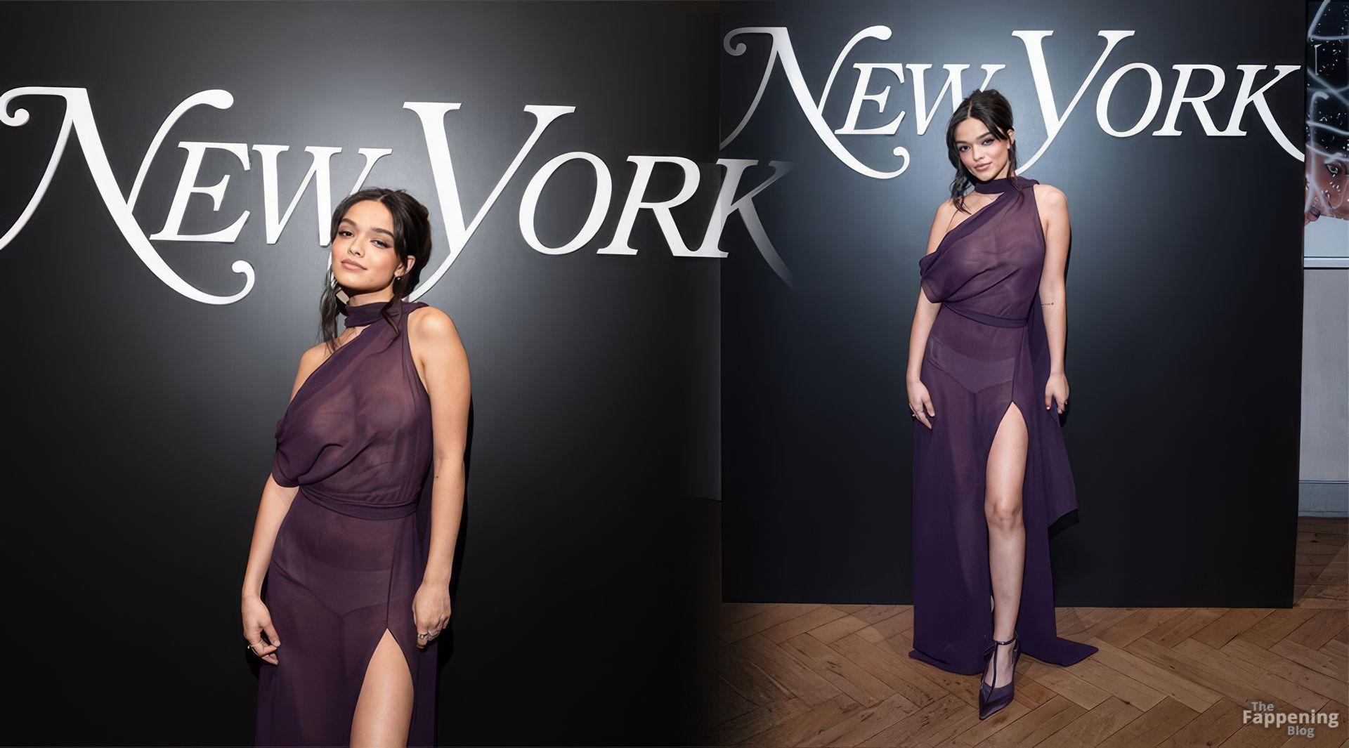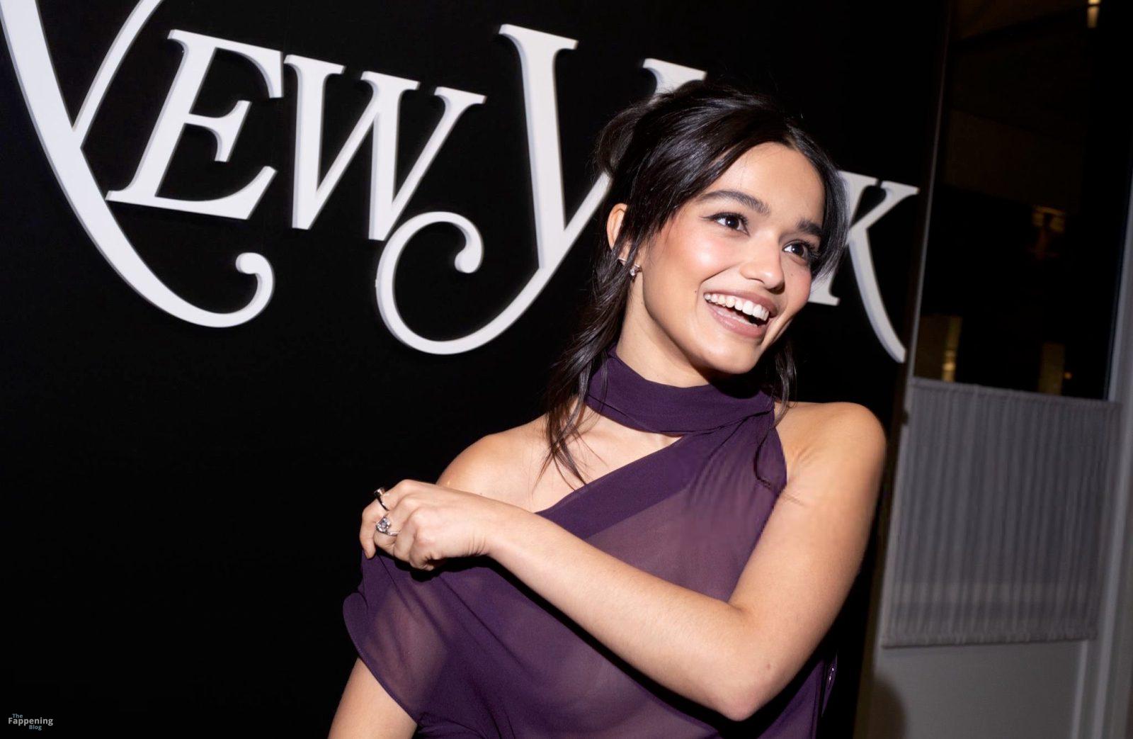 Rachel Zegler wird auf dem roten Teppich des NYMag Culturati Cocktails gesehen. Sie erschien ohne BH in einem durchsichtigen lila Kleid, das ihre sexy Brüste mit Pasties zeigte.