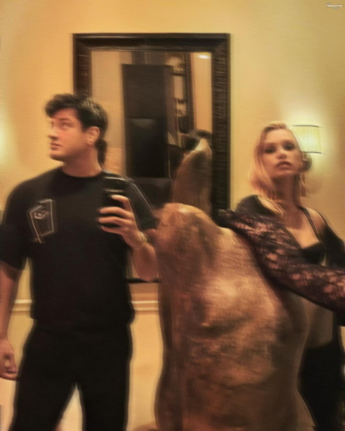Stella Maxwell wurde in Schwarz abgebildet, trug Nylons und High Heels. Sie präsentierte ihre Beine, ihren Hintern und ihr Dekolleté.