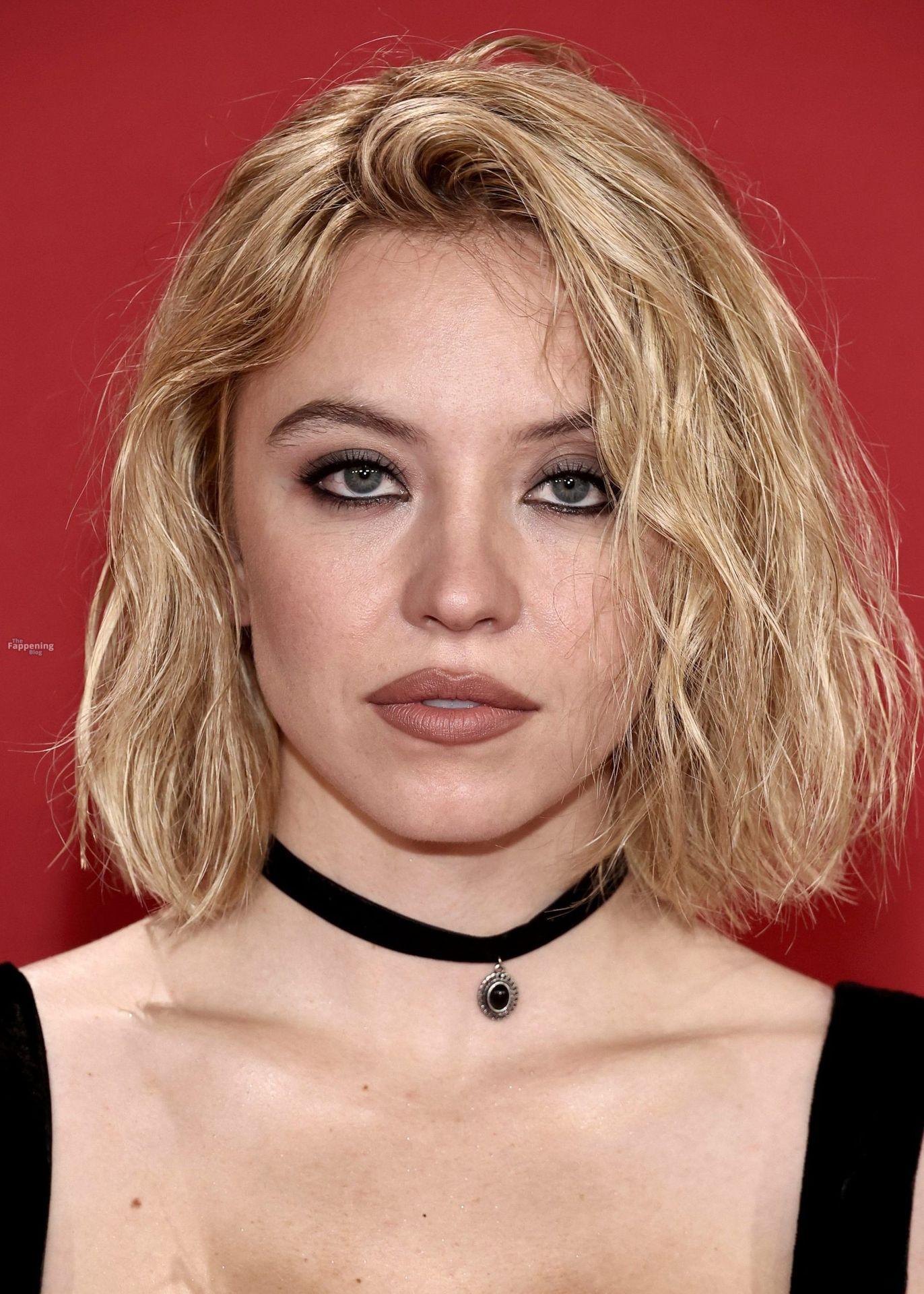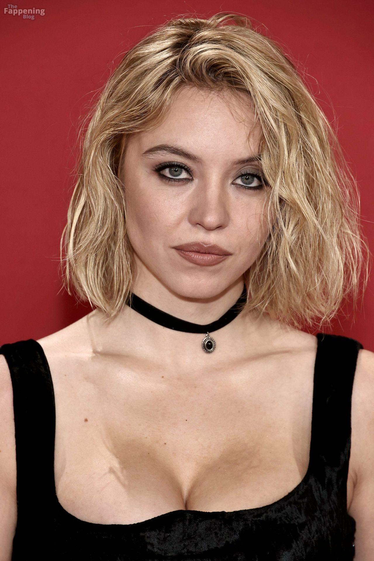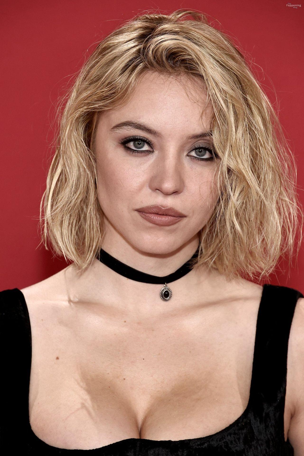 Peep Sydney Sweeneys Brüste bei der GQ Men of the Year Veranstaltung, die aus einem engen schwarzen Kleid hervorquellen.