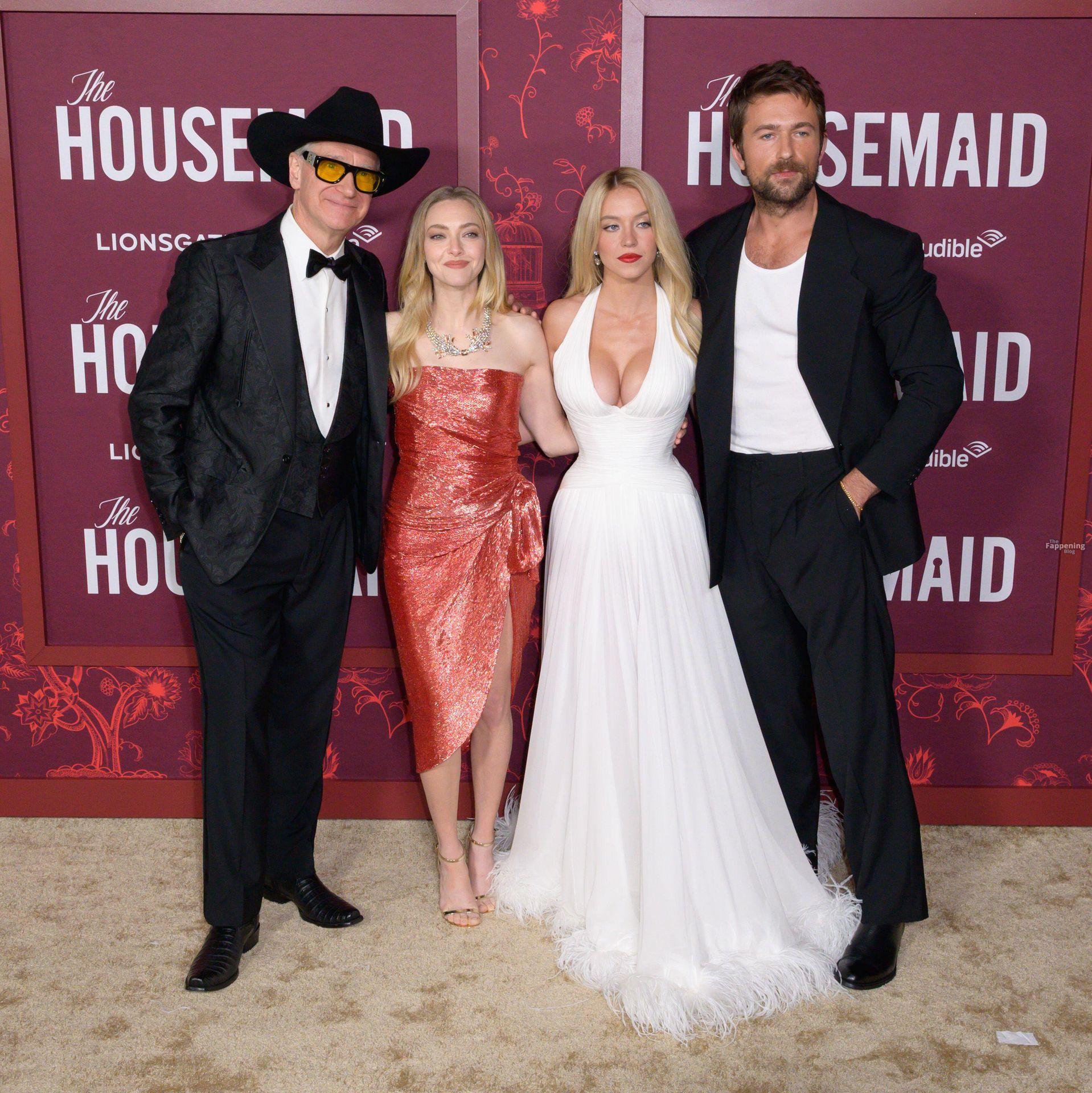Die amerikanische The Fappening-Star, Schauspielerin und Produzentin Sydney Sweeney trägt ein komplett maßgeschneidertes Kleid von Galia Lahav mit hochkarätigem Schmuck von Jacob & Co. und kommt zur Los Angeles Premiere von Lionsgates ‘The Housemaid’, die im TCL Chinese Theatre IMAX stattfindet.