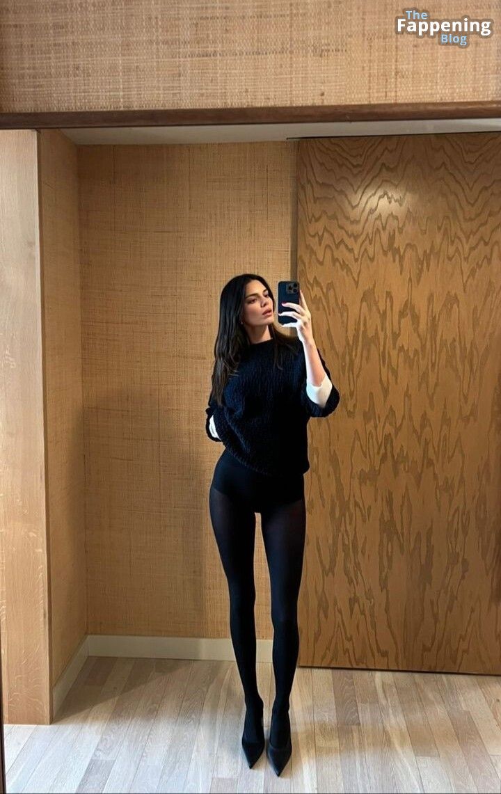 Kendall Jenner wählte ein Outfit aus der neuen Bottega Veneta Frühling-Sommer Kollektion – schwarze Strumpfhosen, einen Pullover und klassische Pumps, aber Kendall trug keinen Rock!