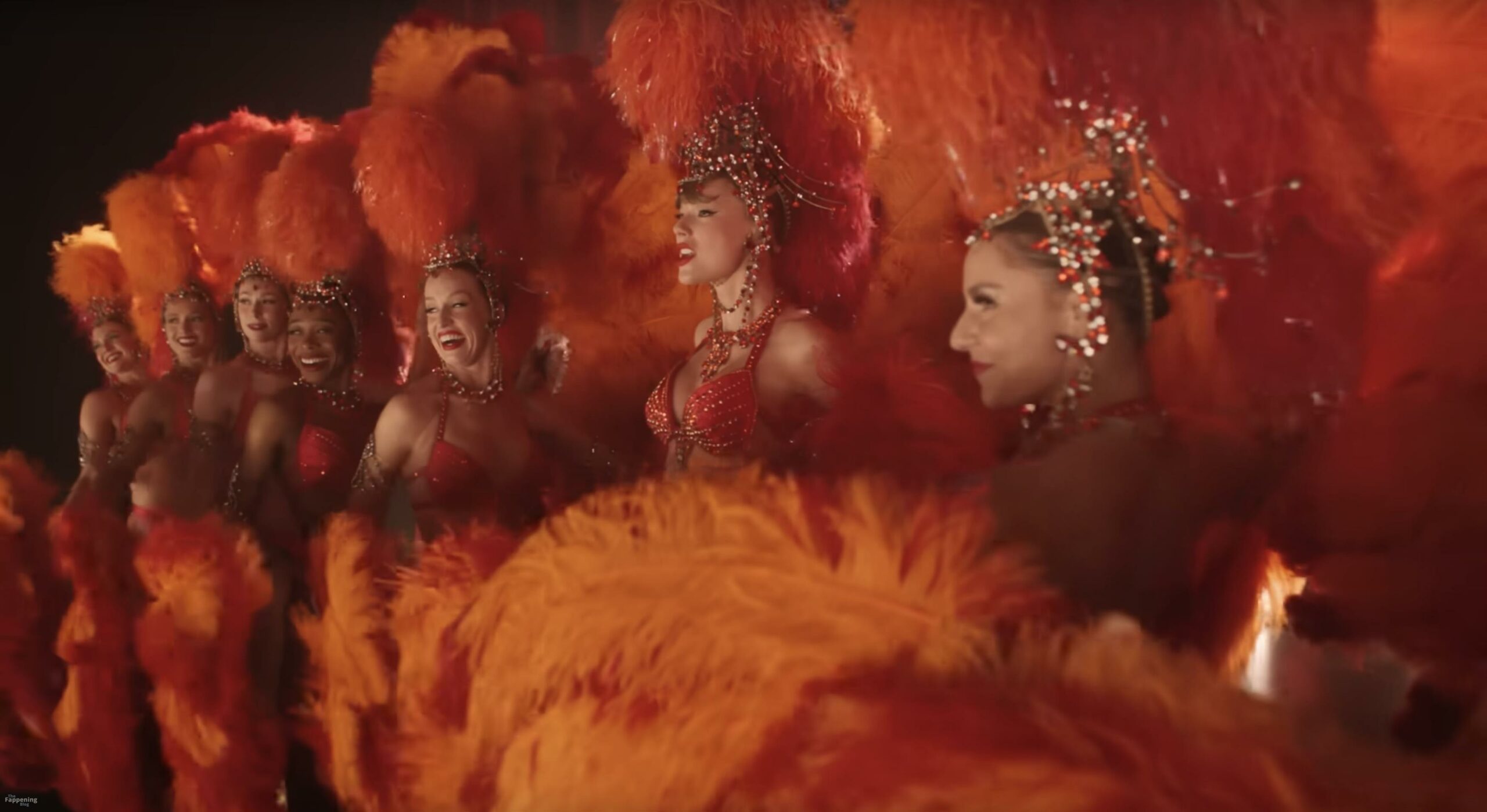 Ich warte immer noch auf eine schöne Aufnahme des vollen Hinterns im Showgirl-Tanga-Kostüm.
