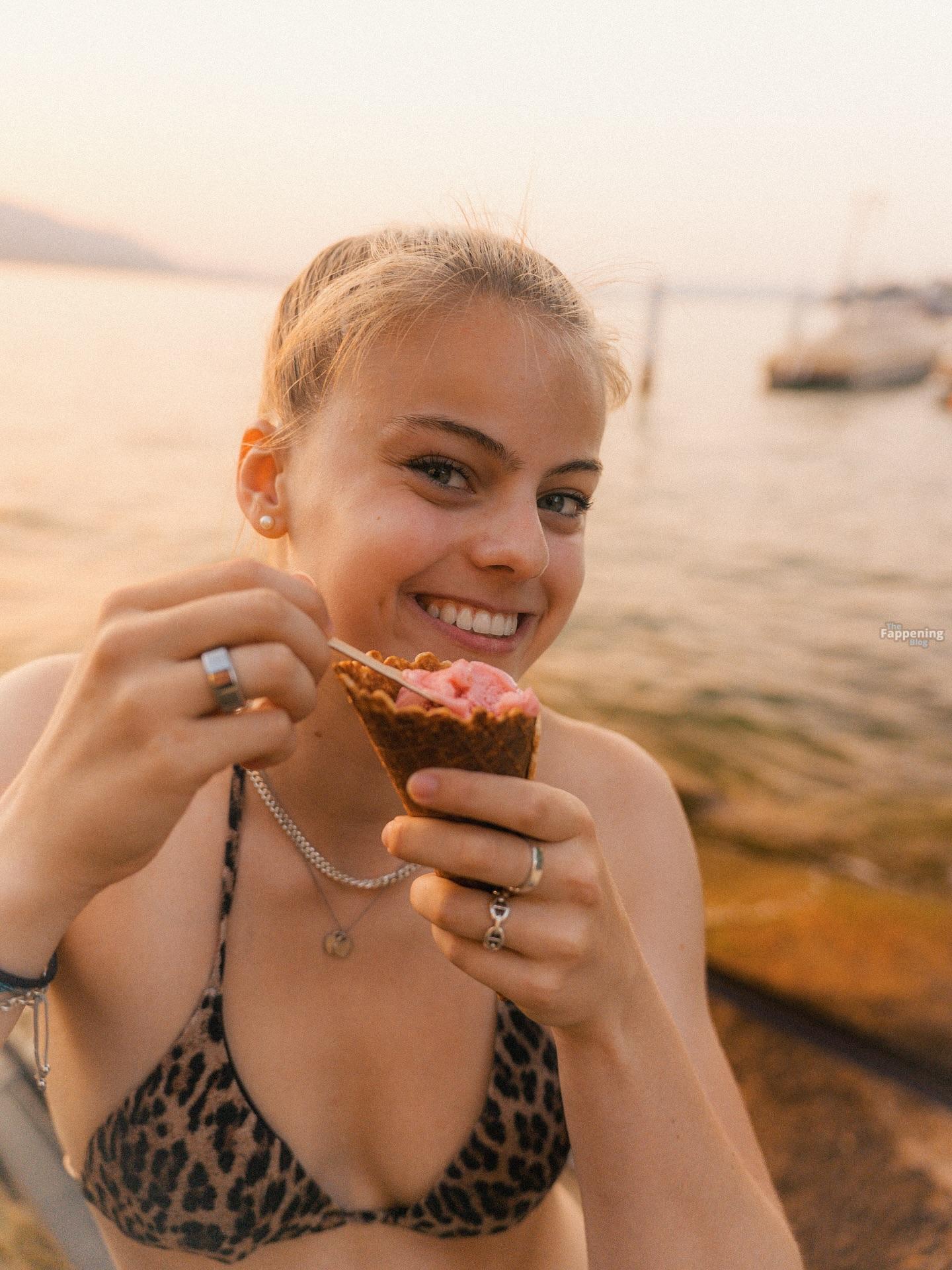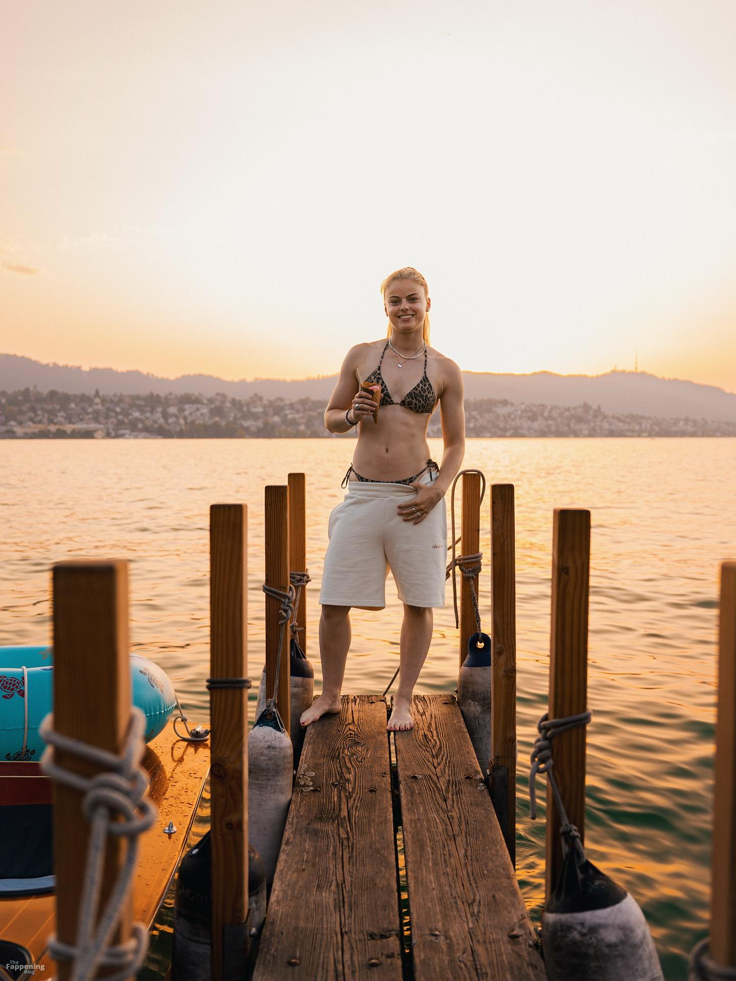 Die Shorts anzubehalten, während sie einen zweiteiligen Anzug trägt, schreit förmlich: ‚Ich bin überhaupt nicht zufrieden mit meinem Hintern‘.