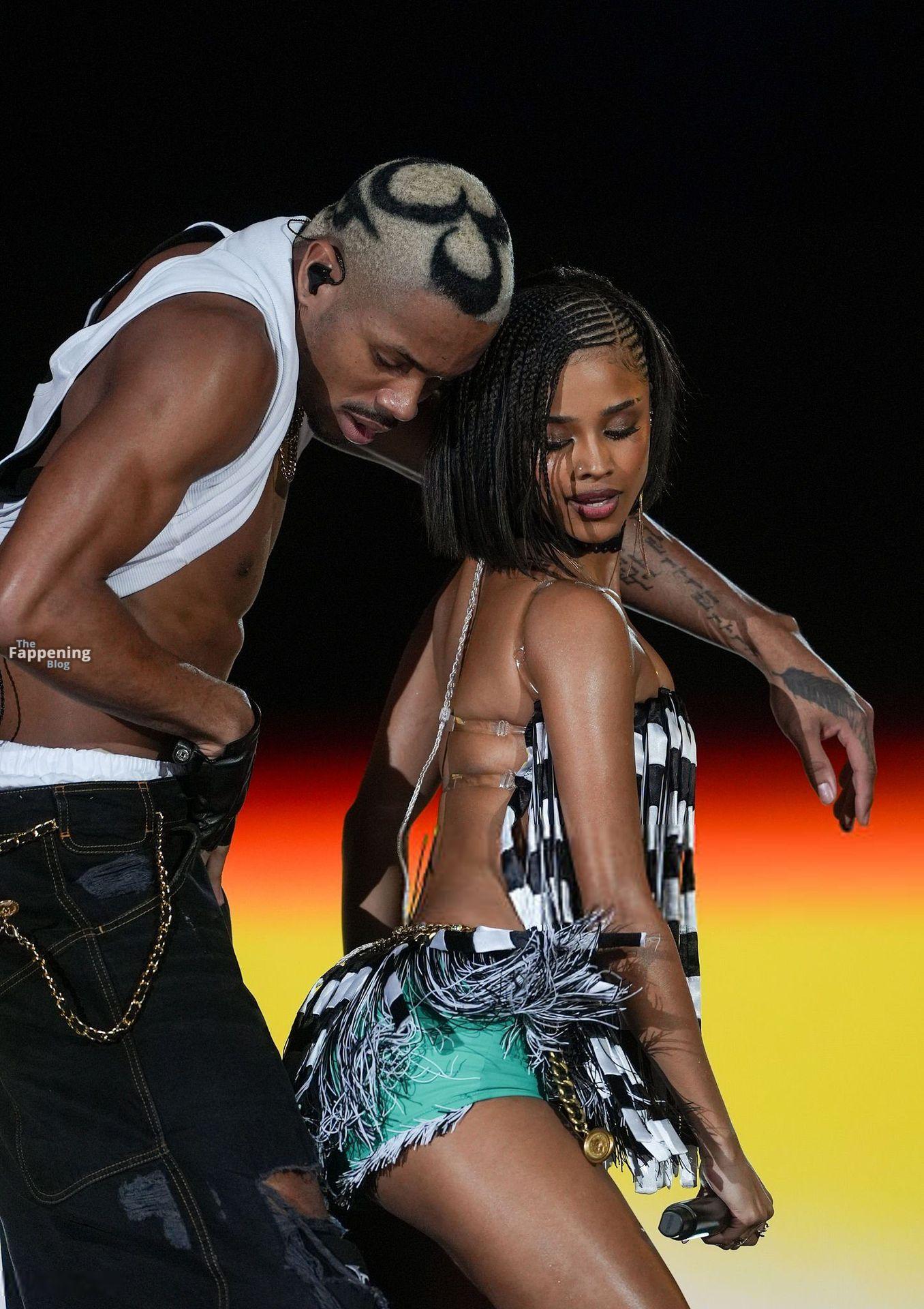 Tyla sah heiß aus beim Global Citizen Festival in NYC und trug ein Fransen-Kleid über türkisfarbenen Hotpants. Sie zeigte ihre Beine und ihren Hintern bei einem Auftritt.