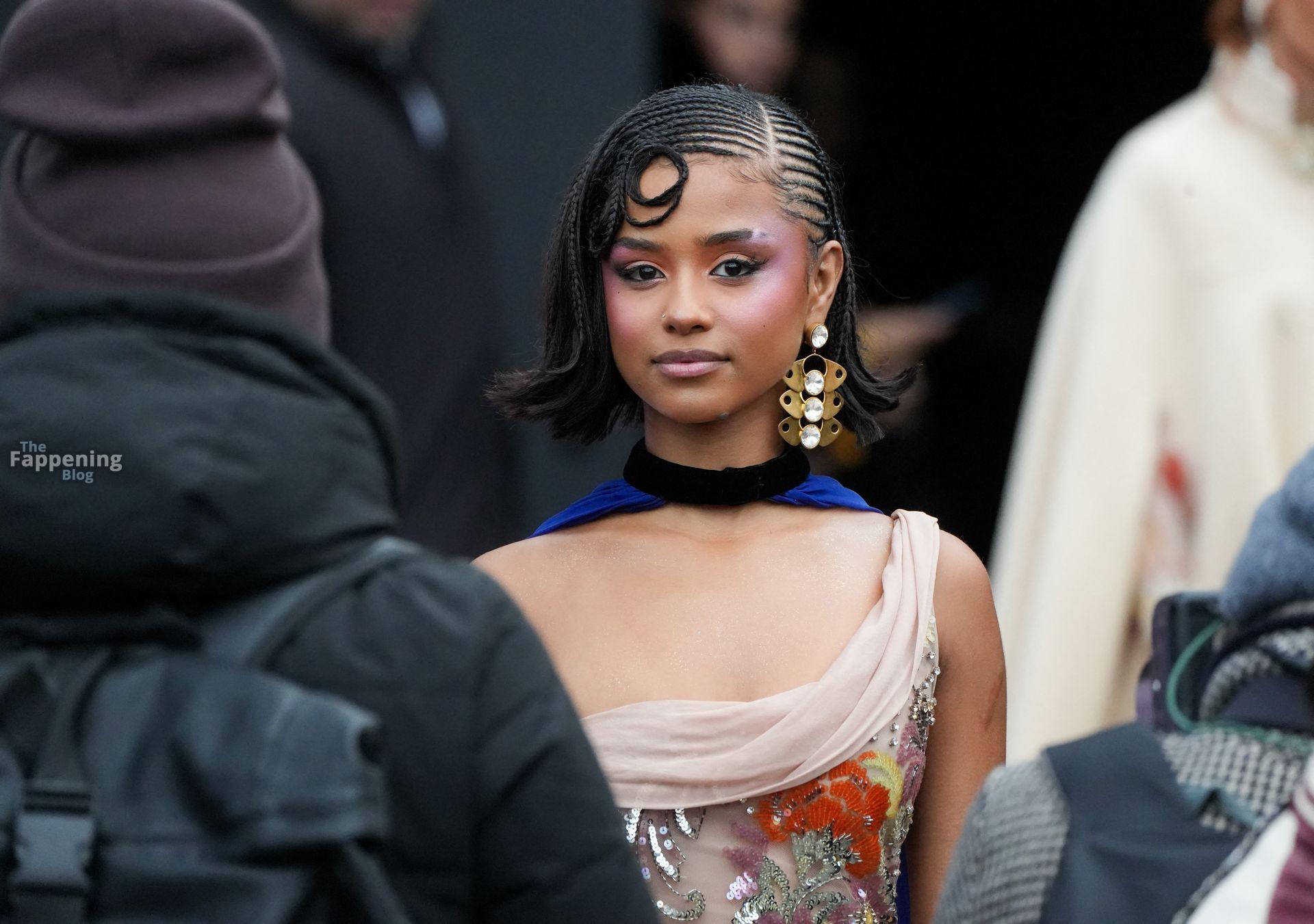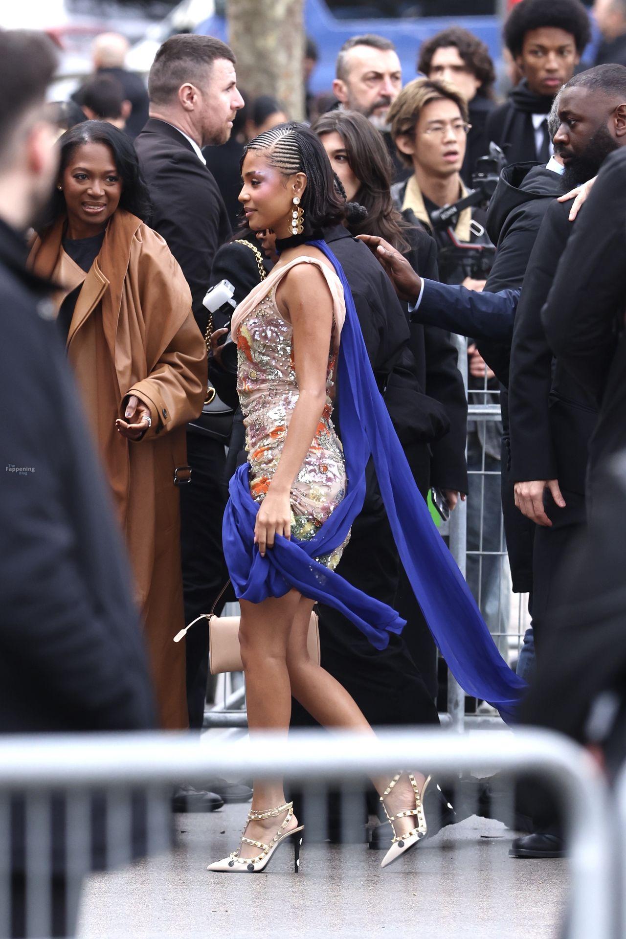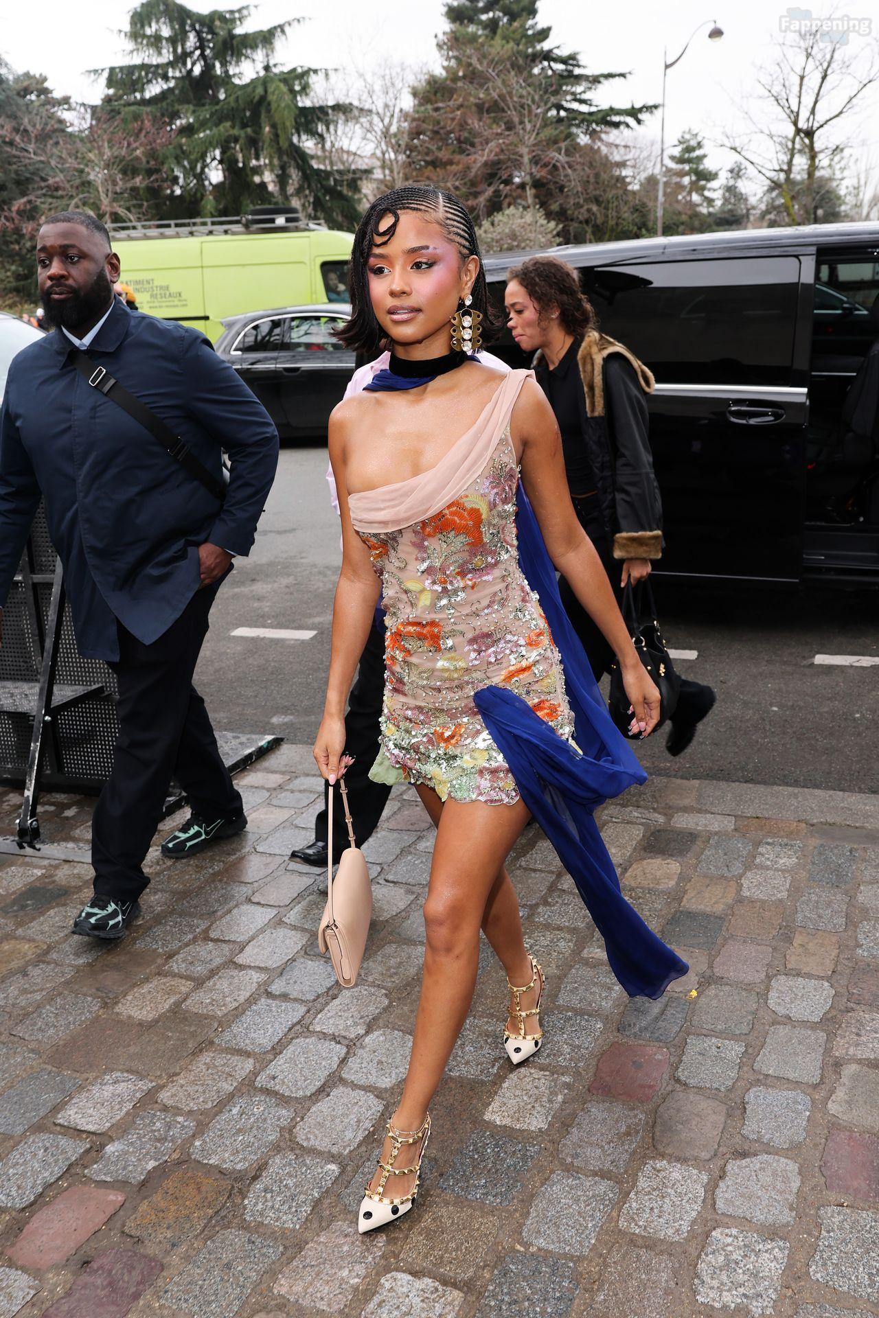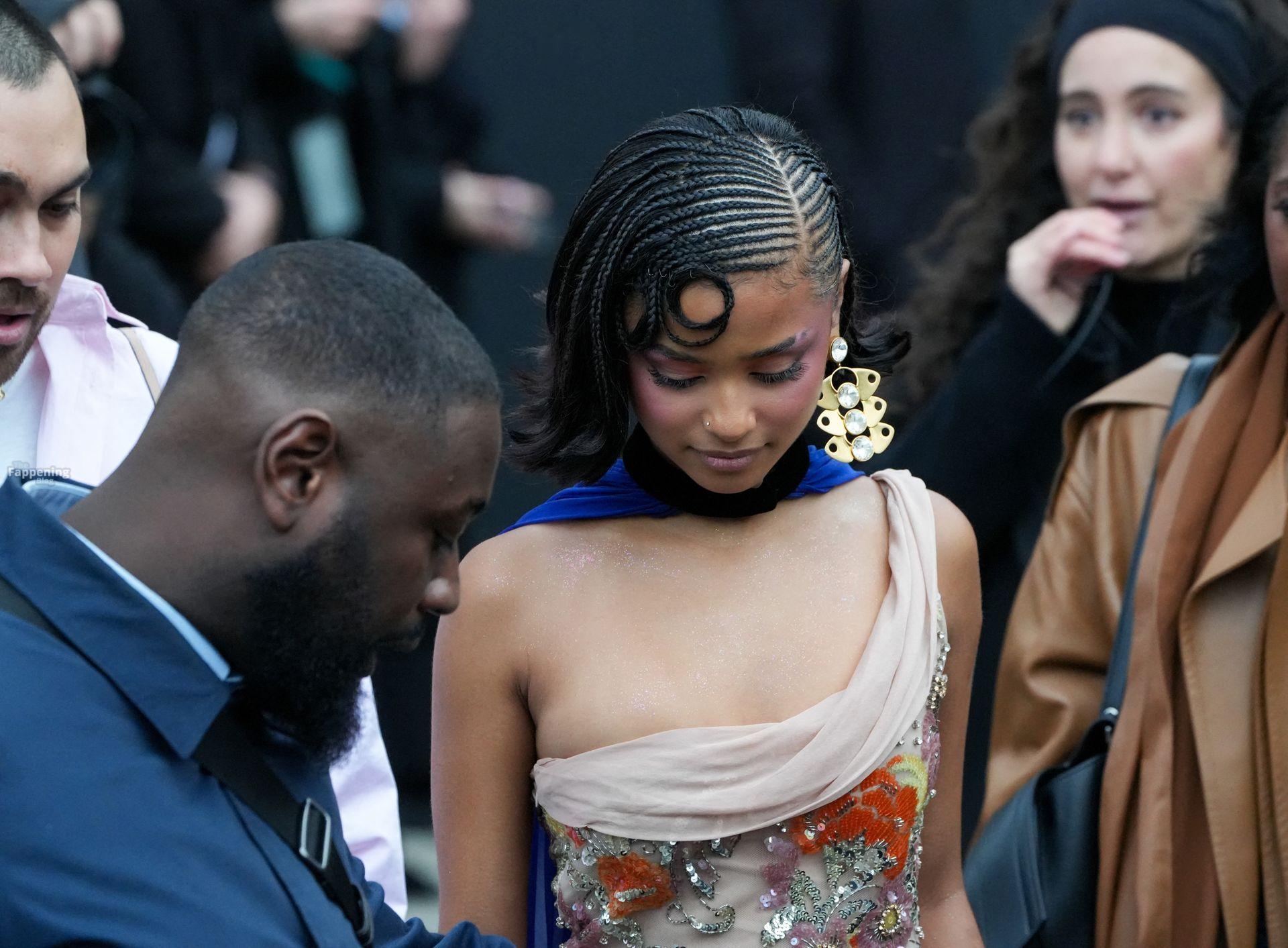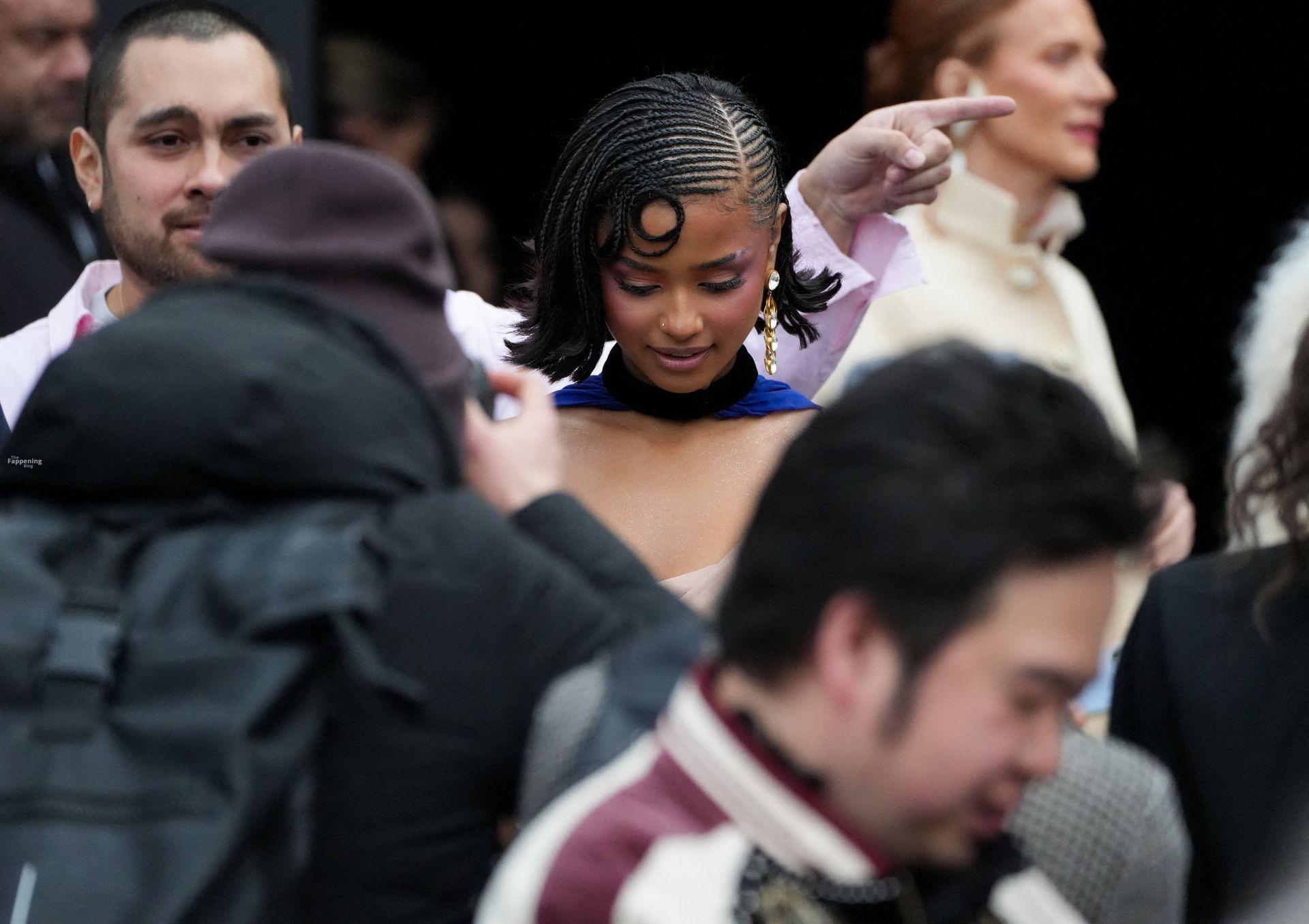 Sängerin Tyla wird gesehen, wie sie die Valentino Haute Couture Frühling/Sommer 2026 Modenschau während der Pariser Modewoche verlässt.