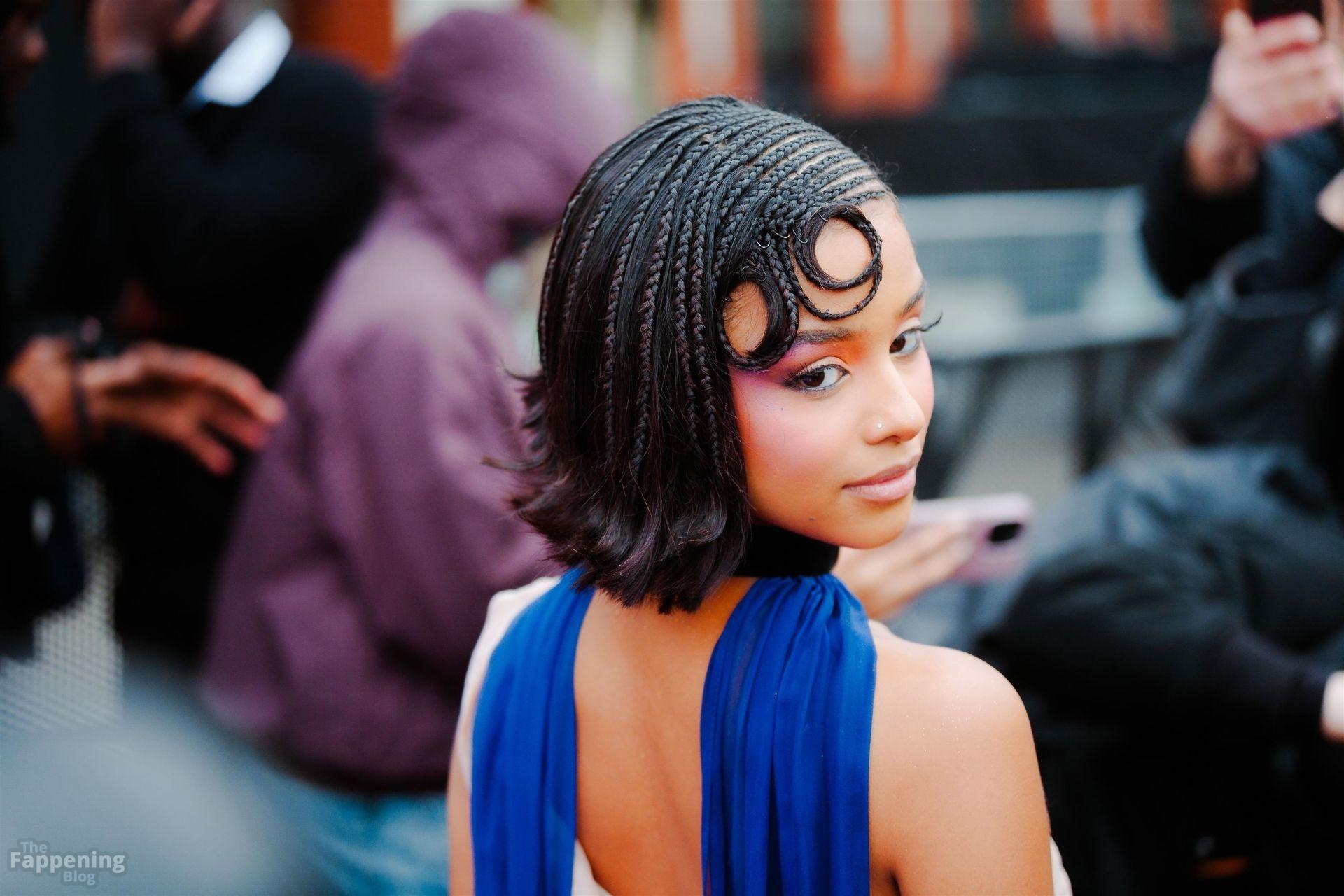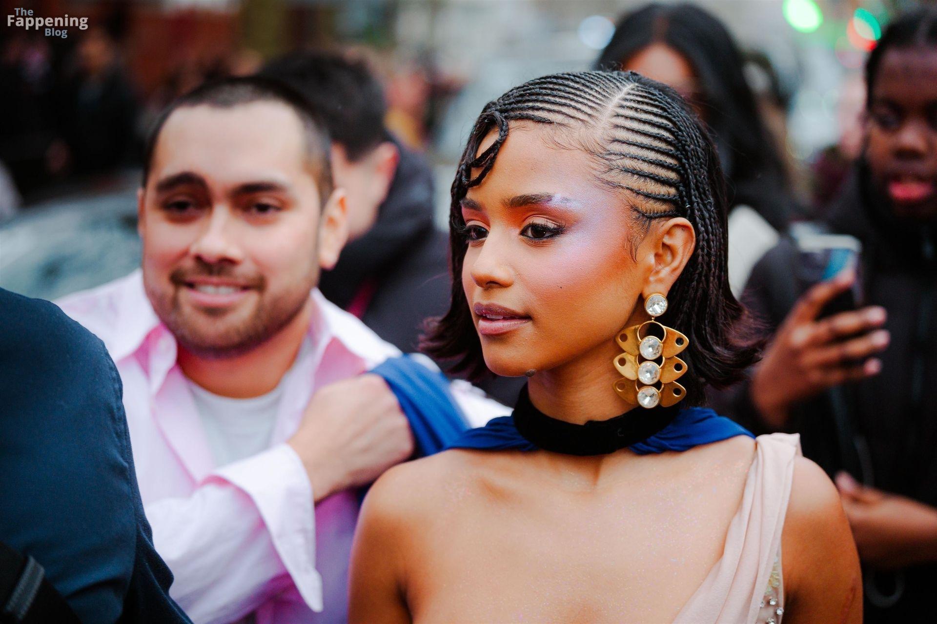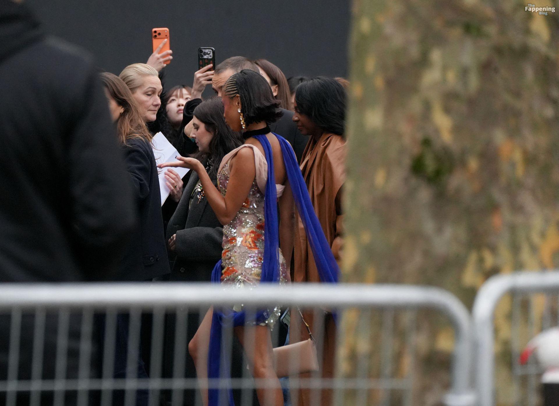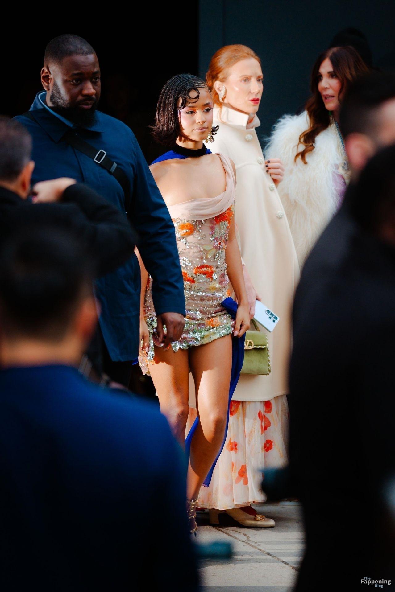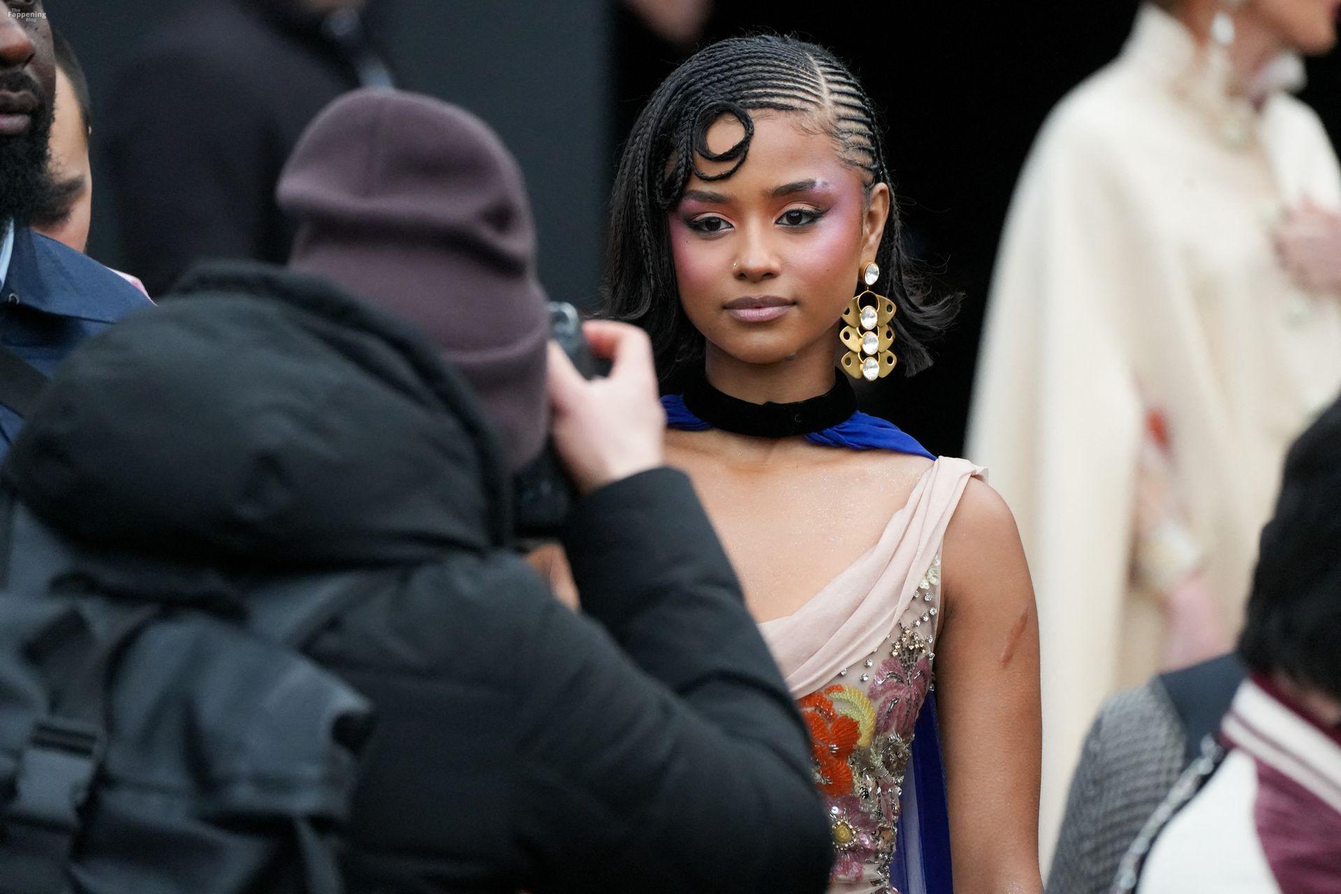 Sängerin Tyla wird gesehen, wie sie die Valentino Haute Couture Frühling/Sommer 2026 Modenschau während der Pariser Modewoche verlässt.