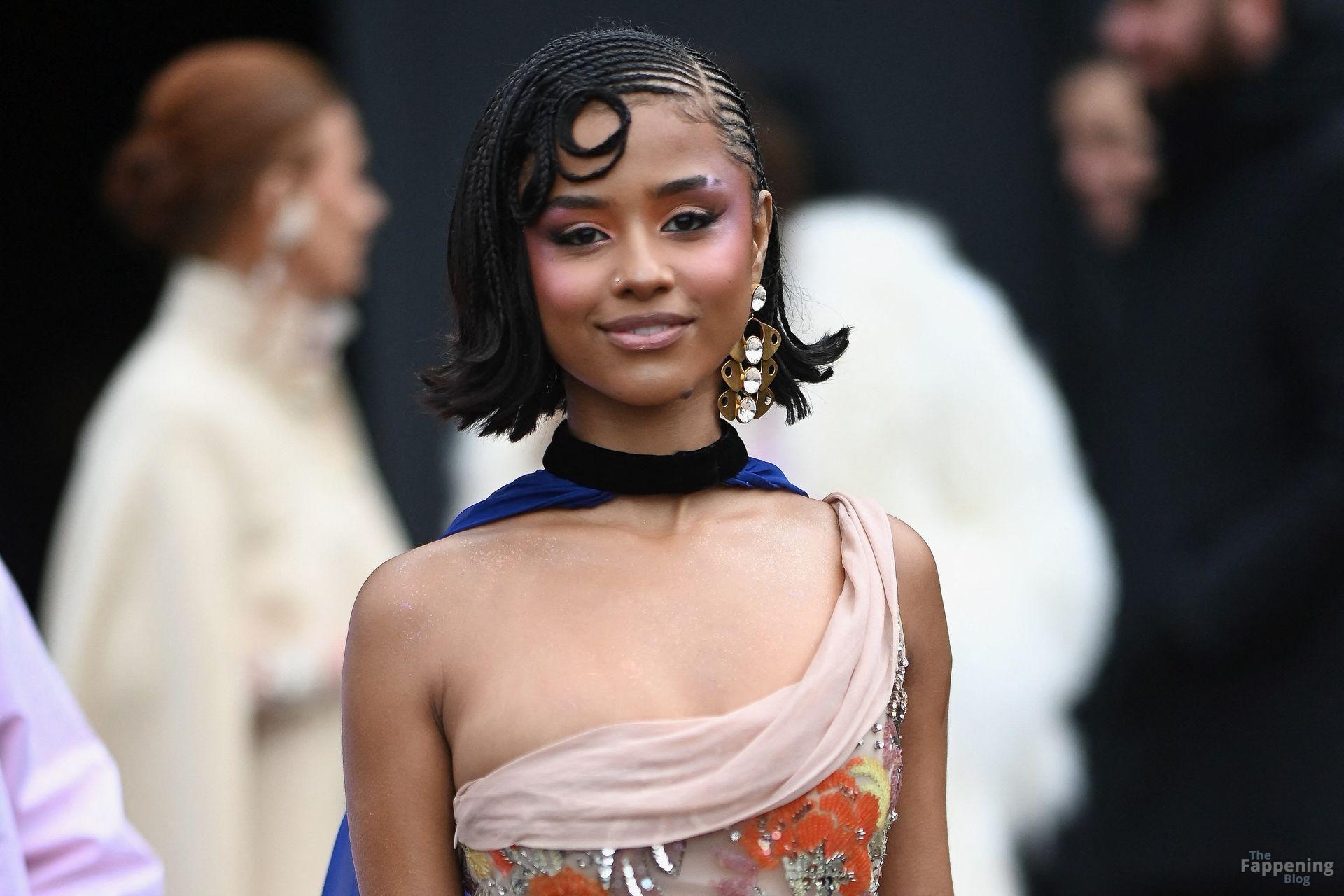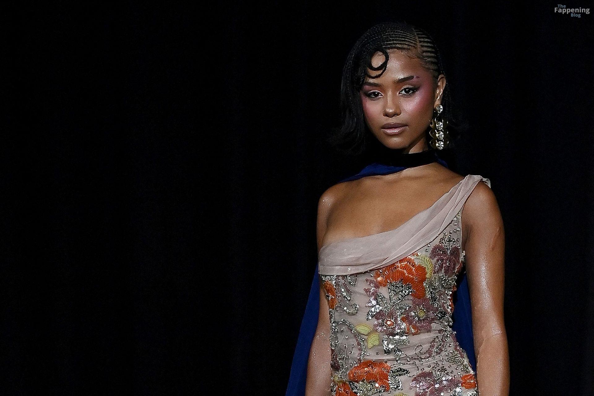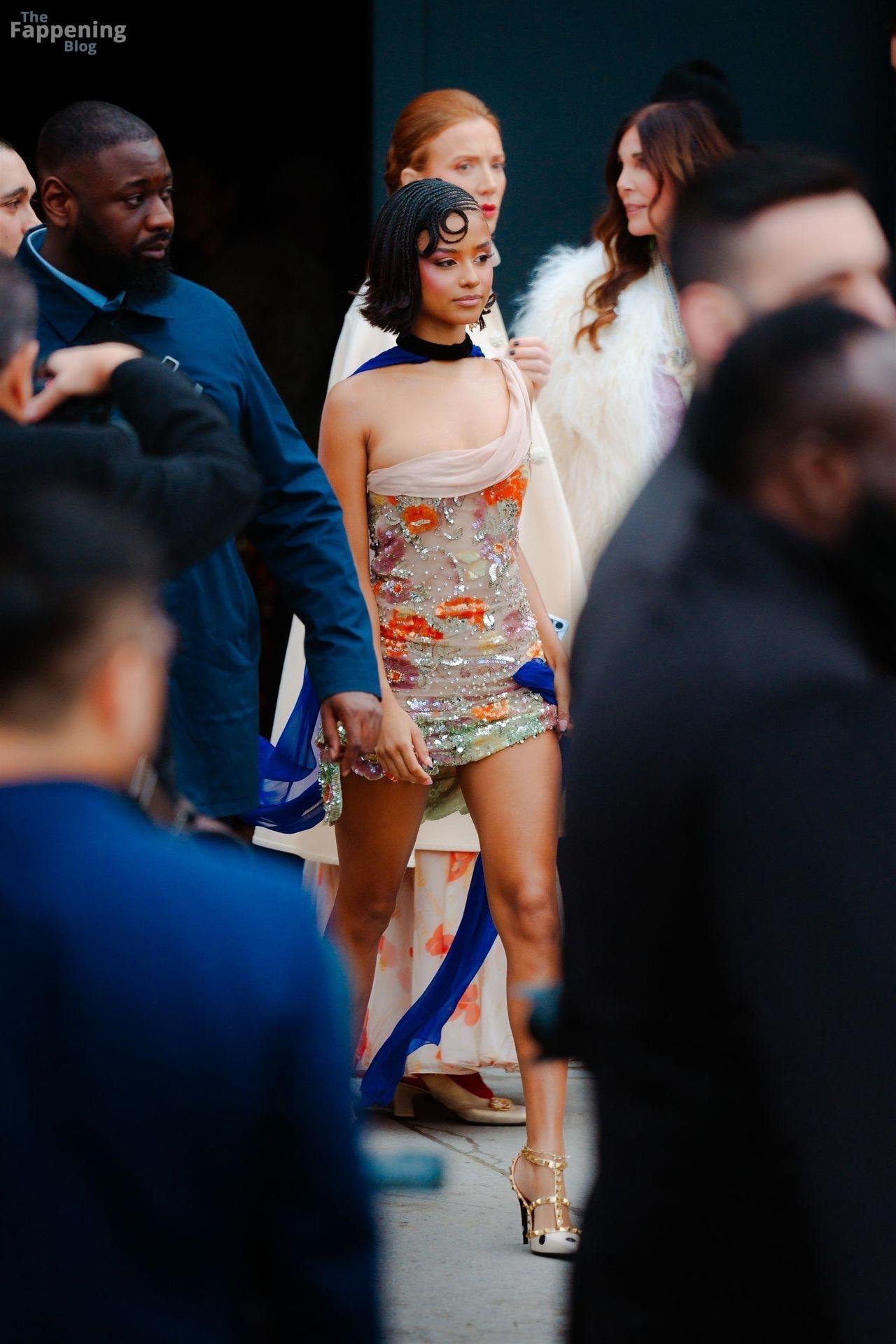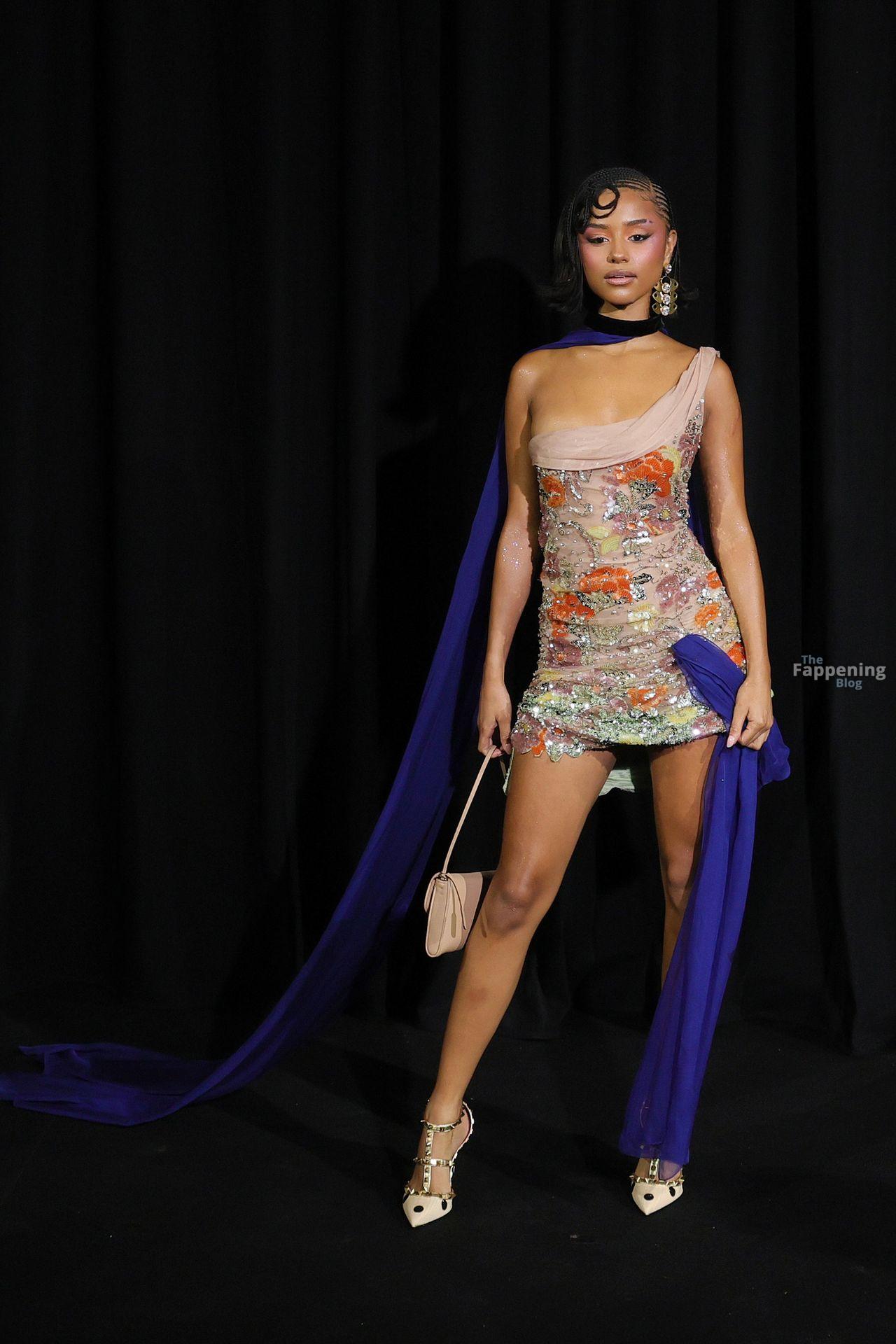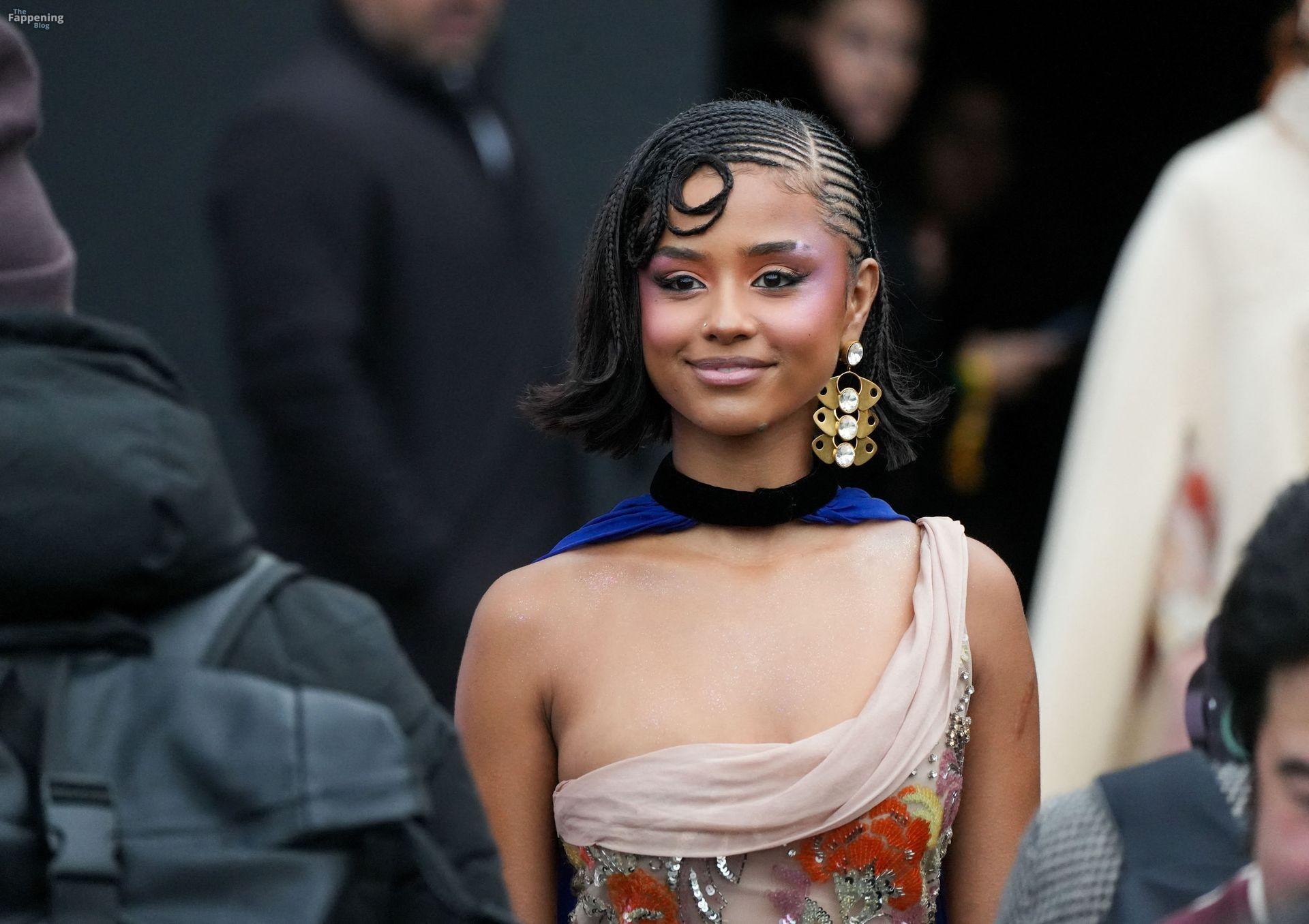 Sängerin Tyla wird gesehen, wie sie die Valentino Haute Couture Frühling/Sommer 2026 Modenschau während der Pariser Modewoche verlässt.