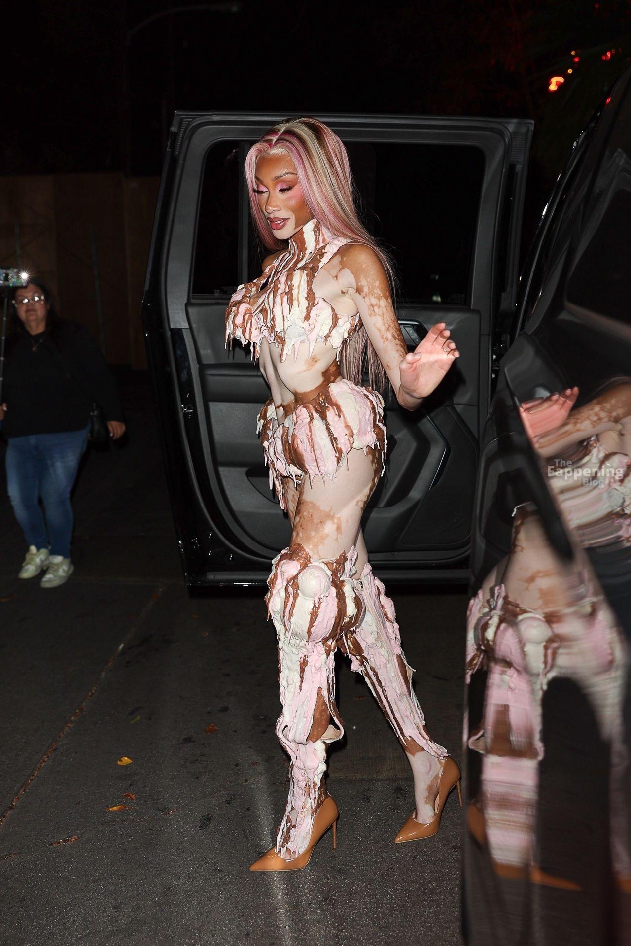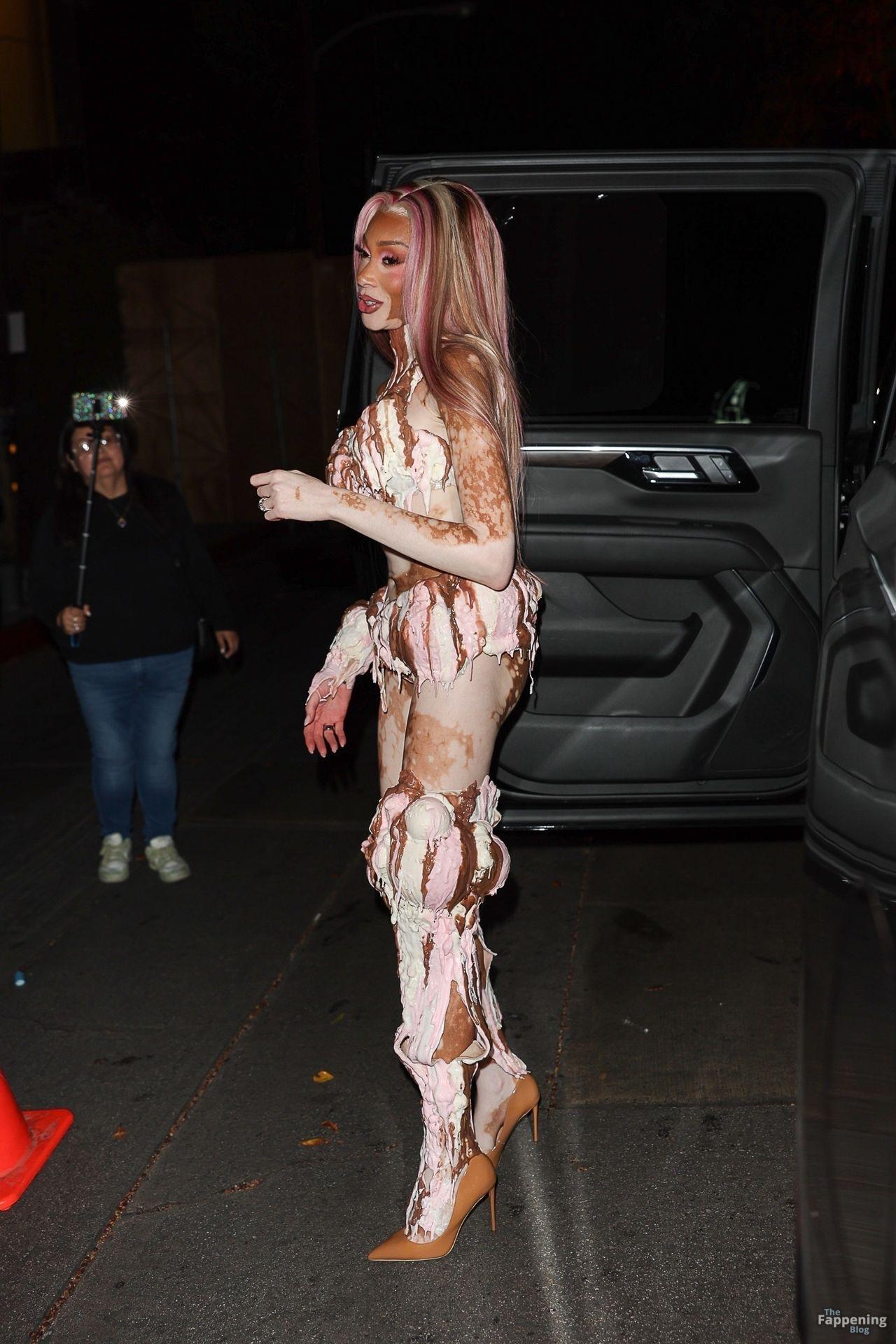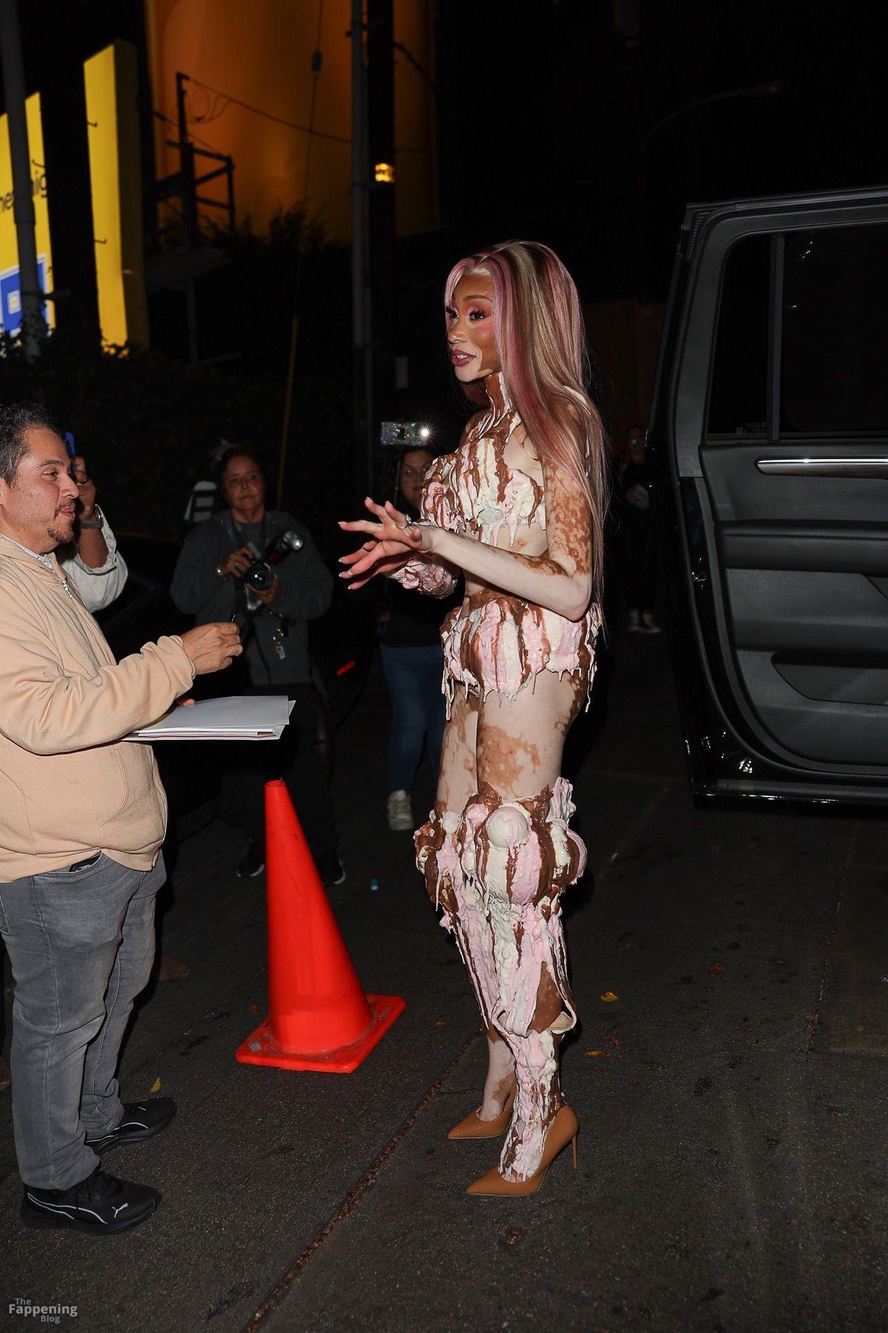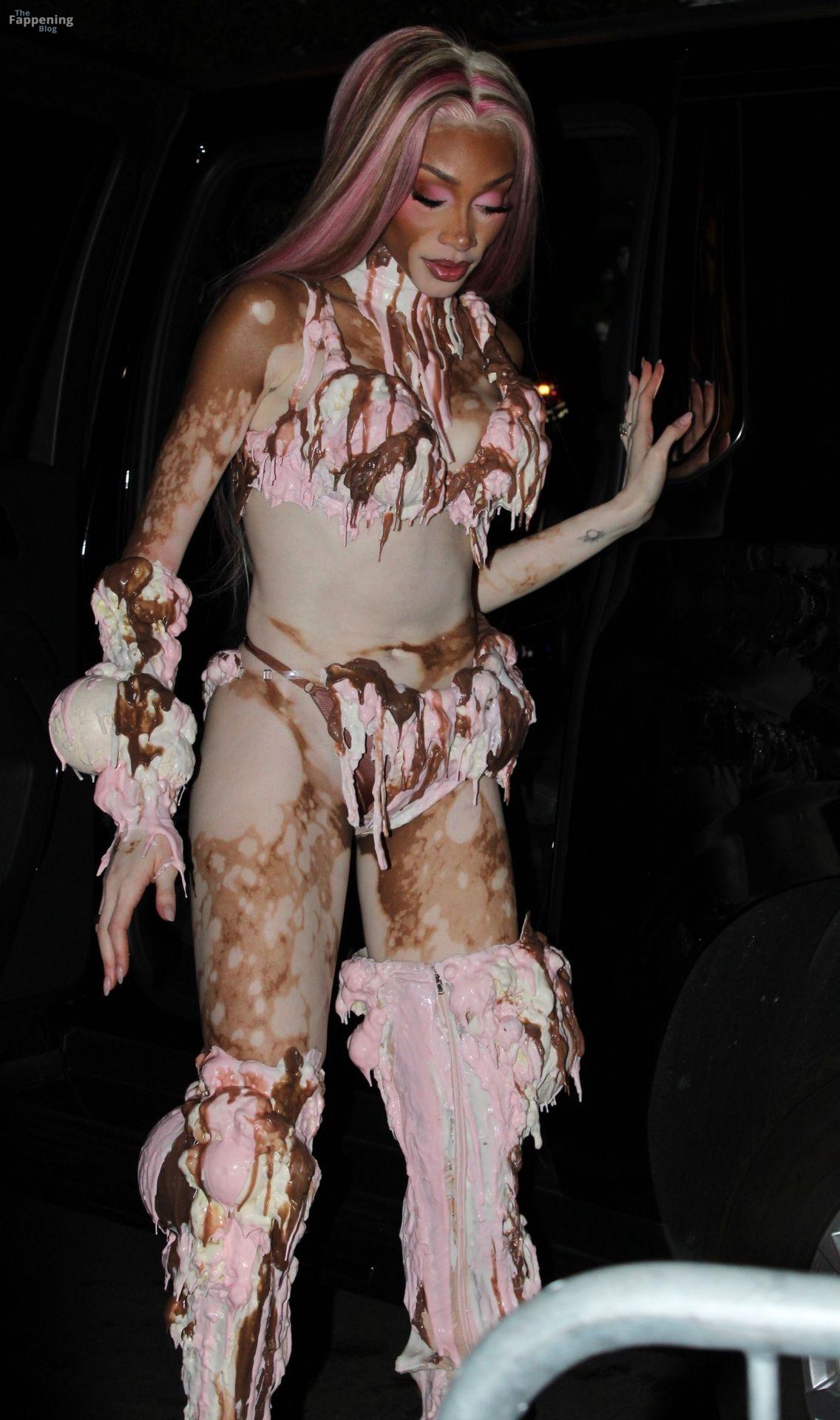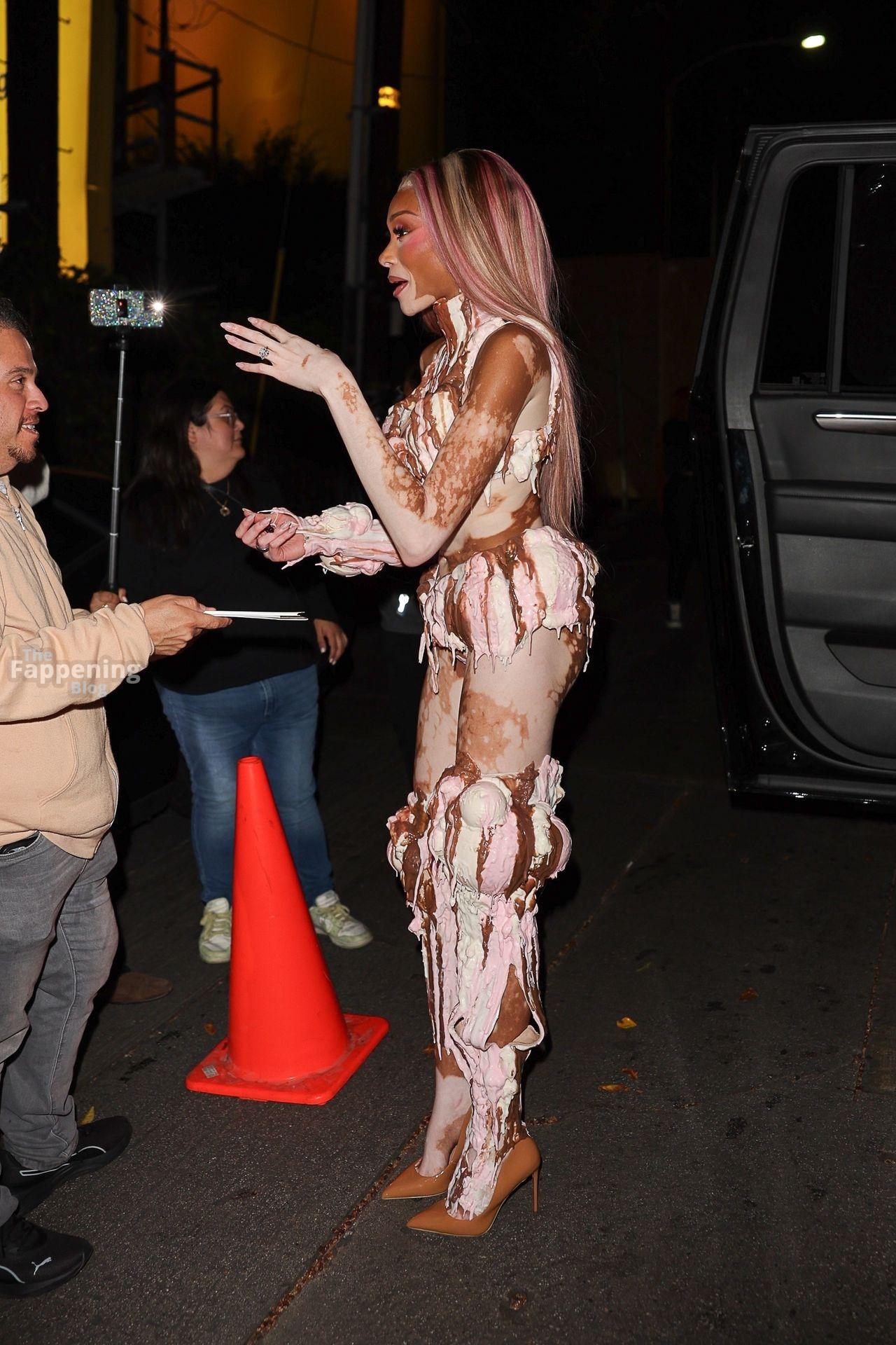 Model Winnie Harlow erschien auf Vas J Morgans großer Halloween-Party in LA. Schaut euch ihr Eiscreme-Outfit in den Paparazzi-Bildern unten an.